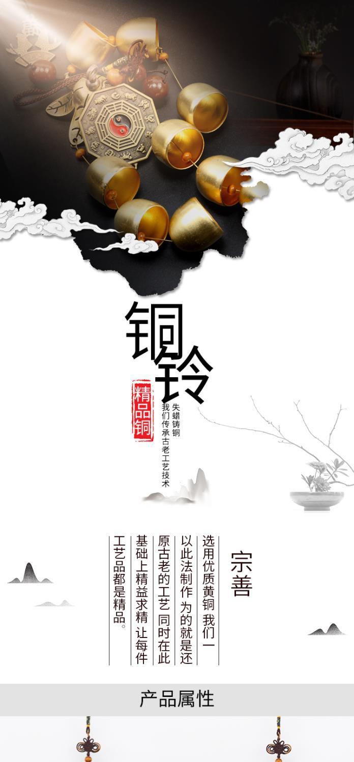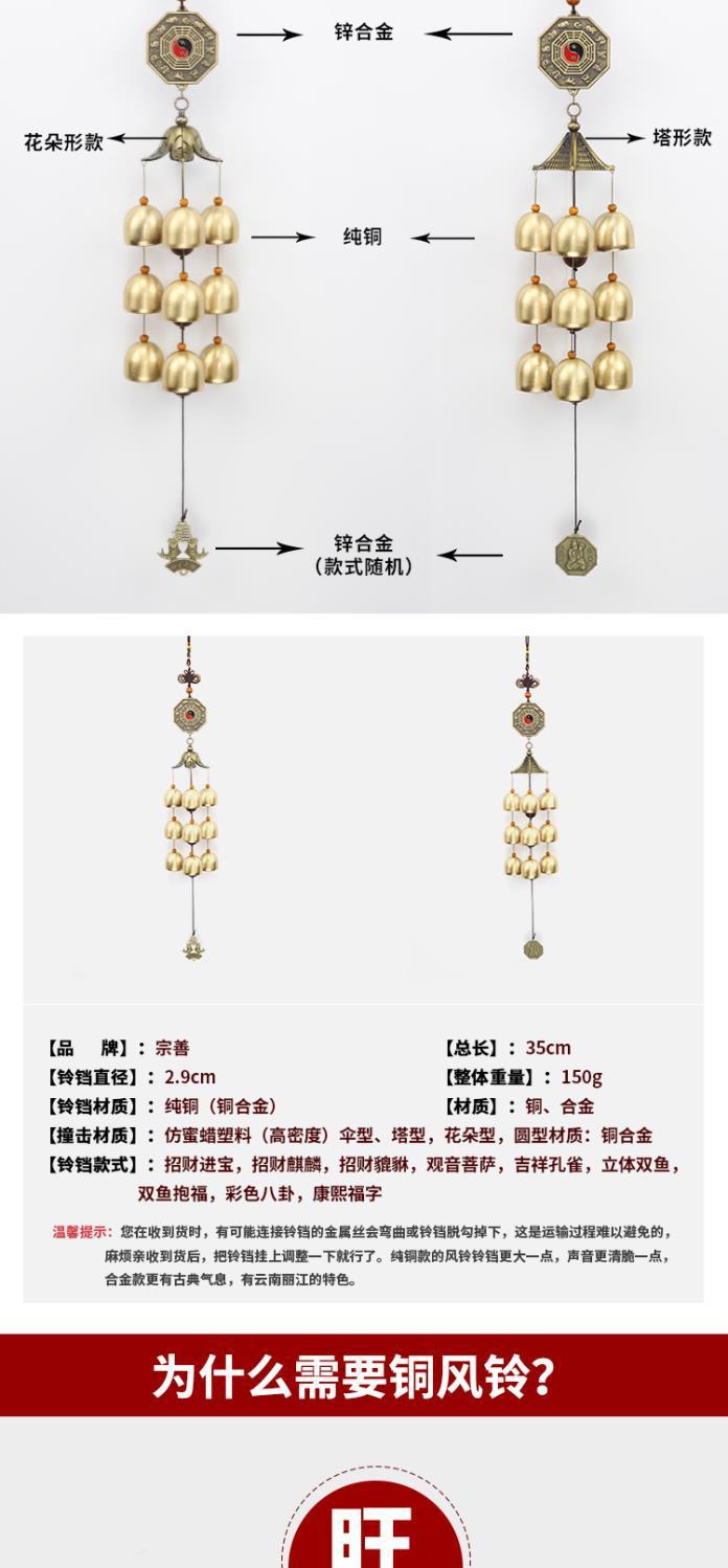 • 태극권 팔괘 타워 모양 모델 순수 구리 9 벨 프리 후크