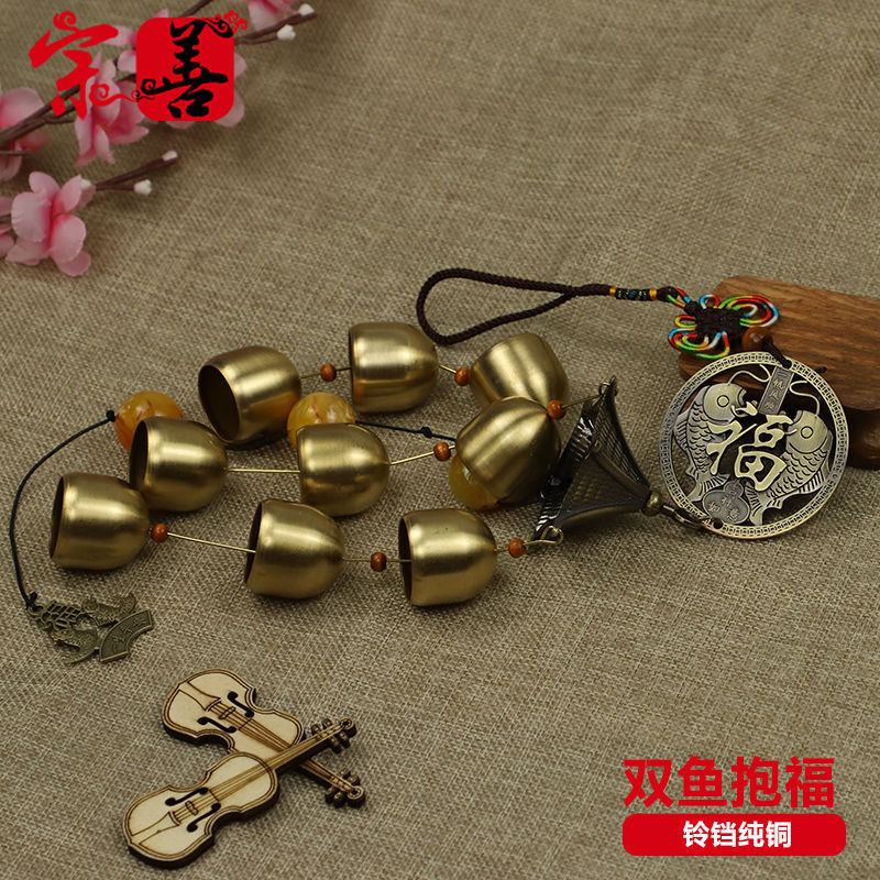 레트로 순수 구리 벨 벨 풍경 펜던트 크리 에이 티브 금속 홈 인테리어 도어 벨 행운의 펜던트