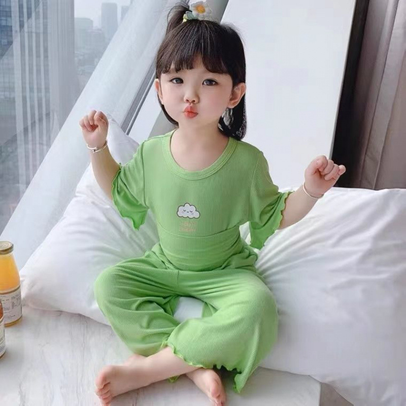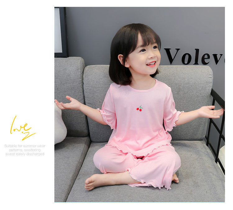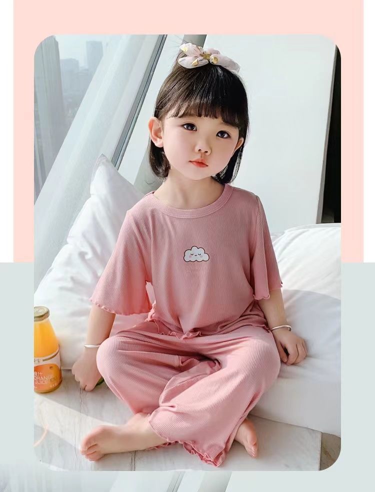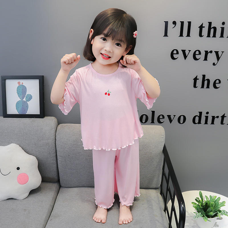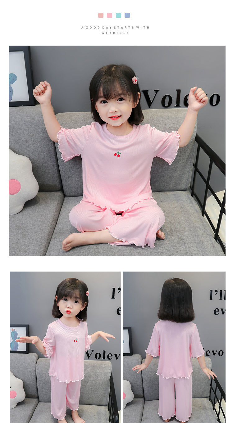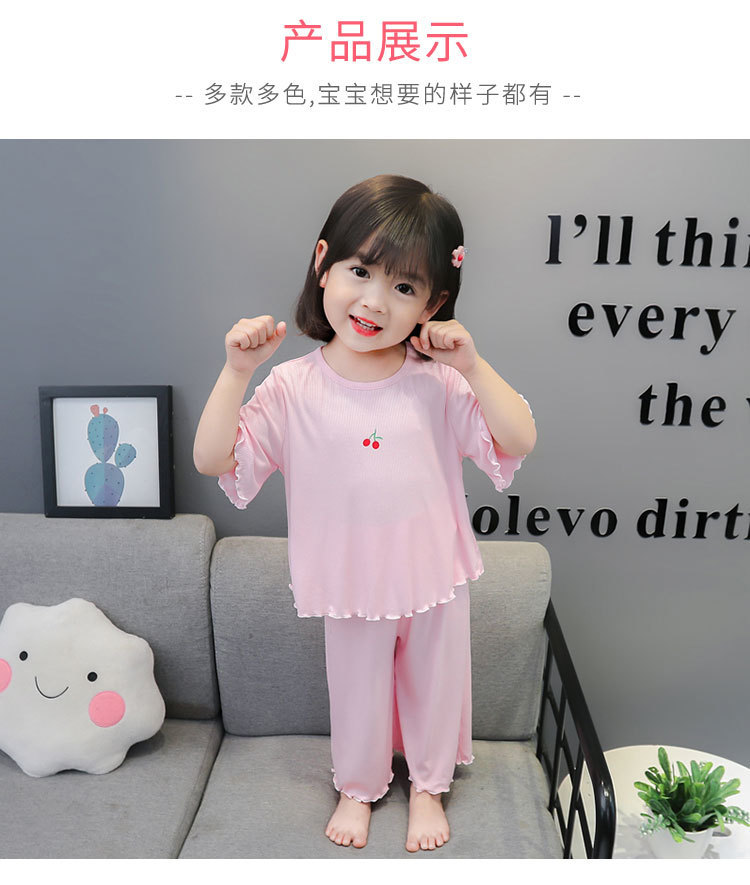 여아 모달 잠옷 여름 정장 아기 소녀 귀여운 슈퍼 귀여운 어린이 얼음 실크 에어컨 옷 얇은 가정 옷스토어 가기