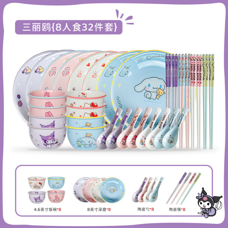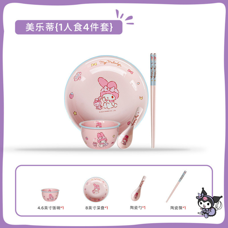 정품 멜로디 가정용 밥 그릇 만화 인기 그릇과 접시 생일 귀여운 그릇과 접시 세트 세라믹 식기스토어 가기