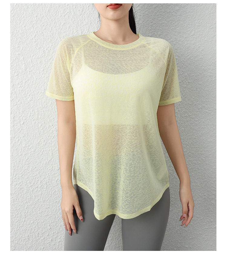 Tencel 눈송이 요가 착용 티셔츠 여성의 느슨한 슬리밍 스포츠 블라우스 필라테스 전문 훈련 착용 피트니스 반팔스토어 가기