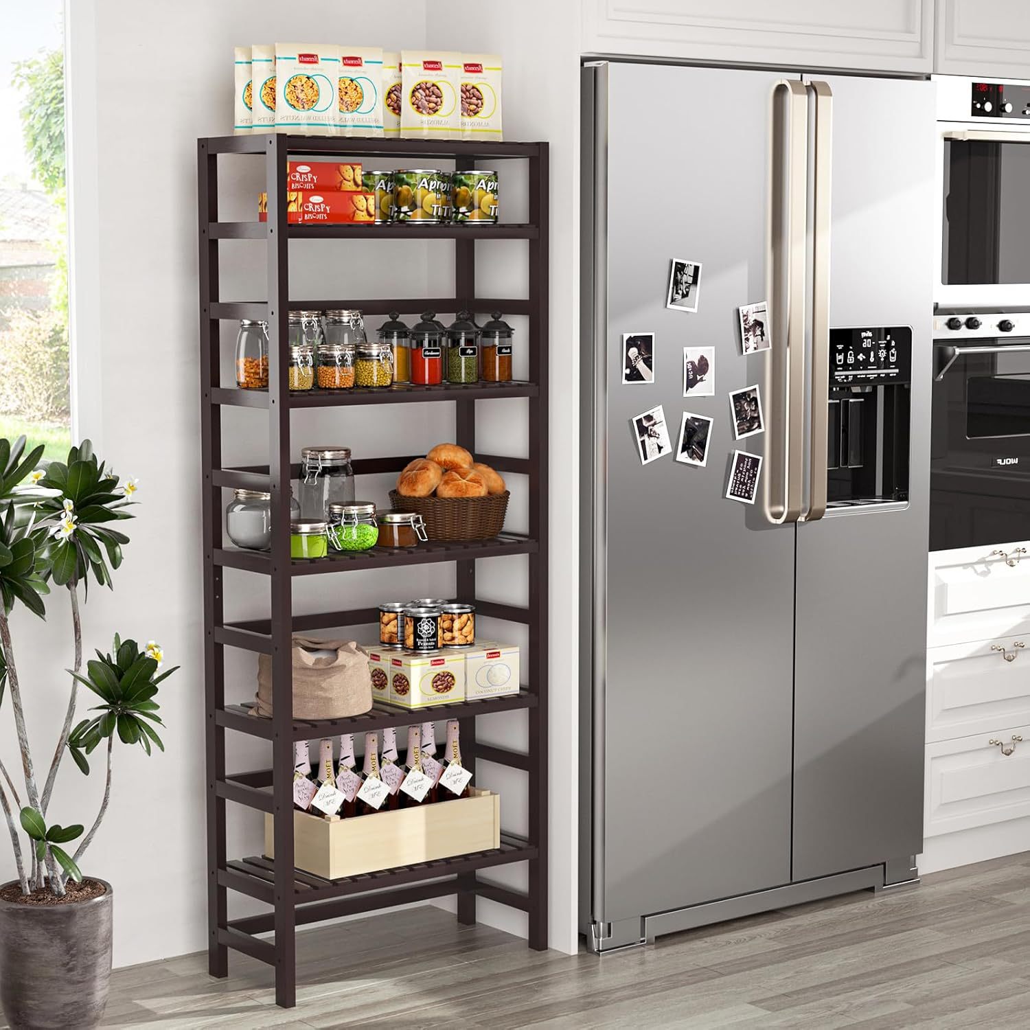 6층 대나무 수납 선반, 대나무 다층 책장, 거실 정리 수납 선반, 서재 칸막이 선반, 발코니 수납 꽃 선반