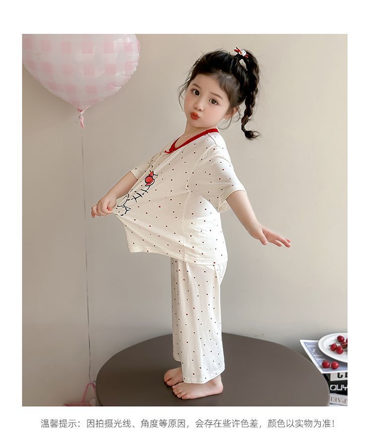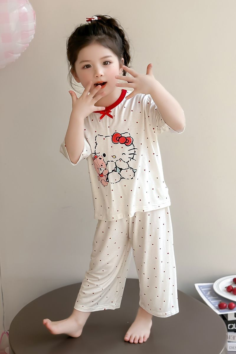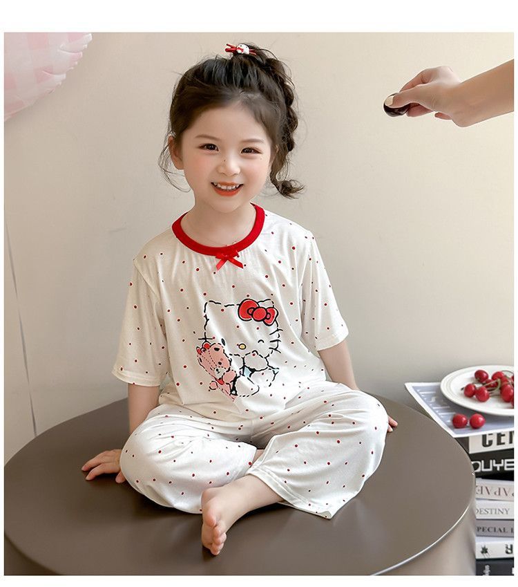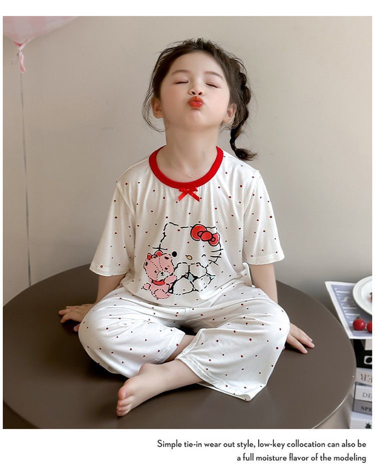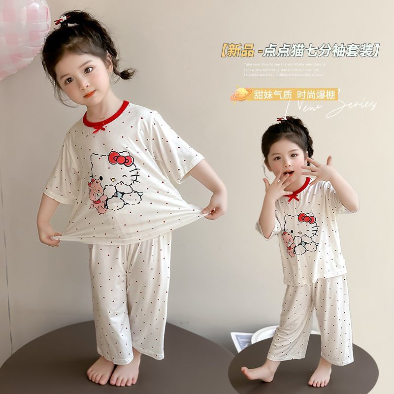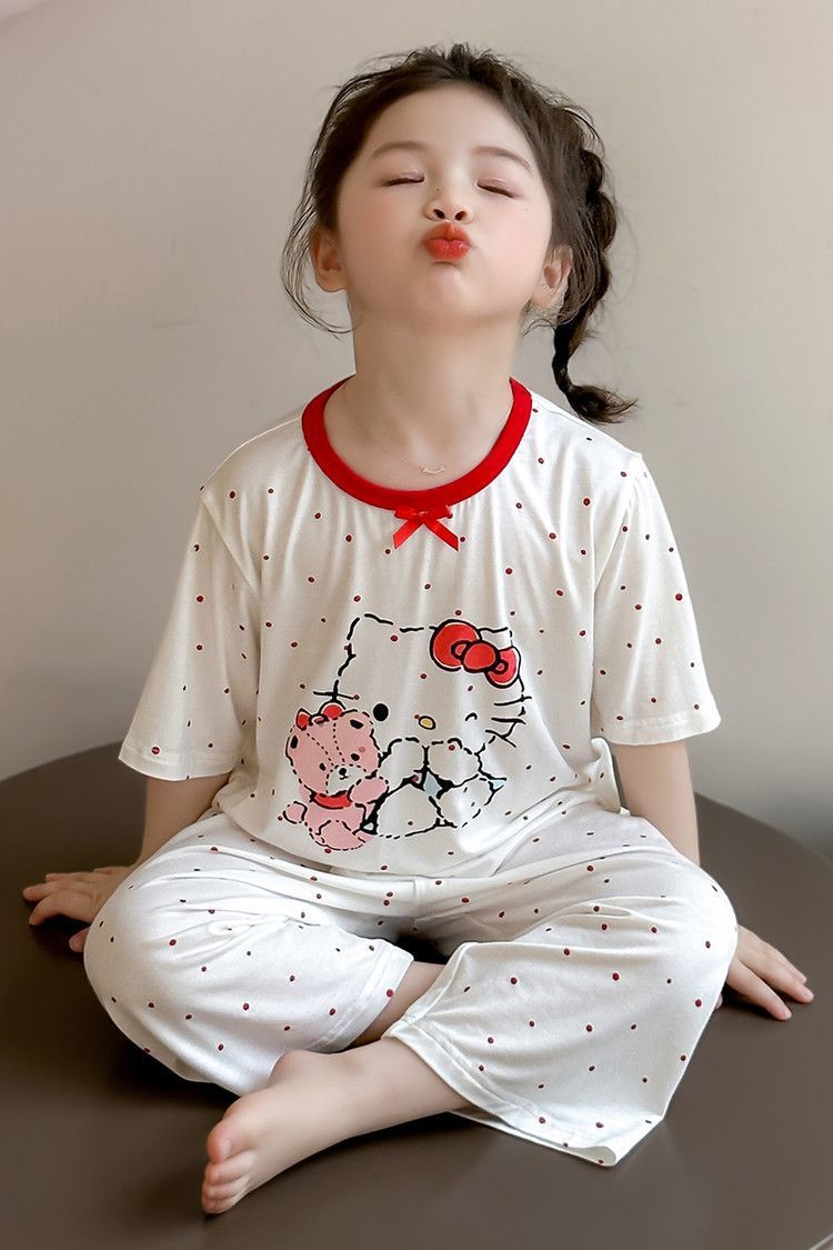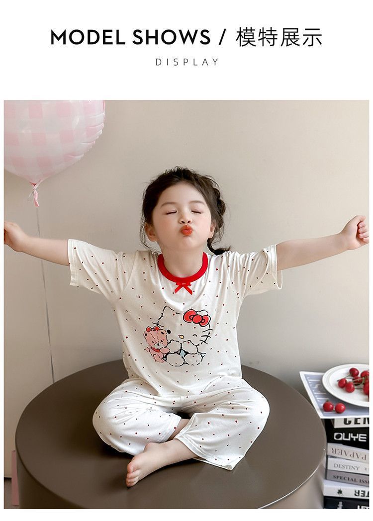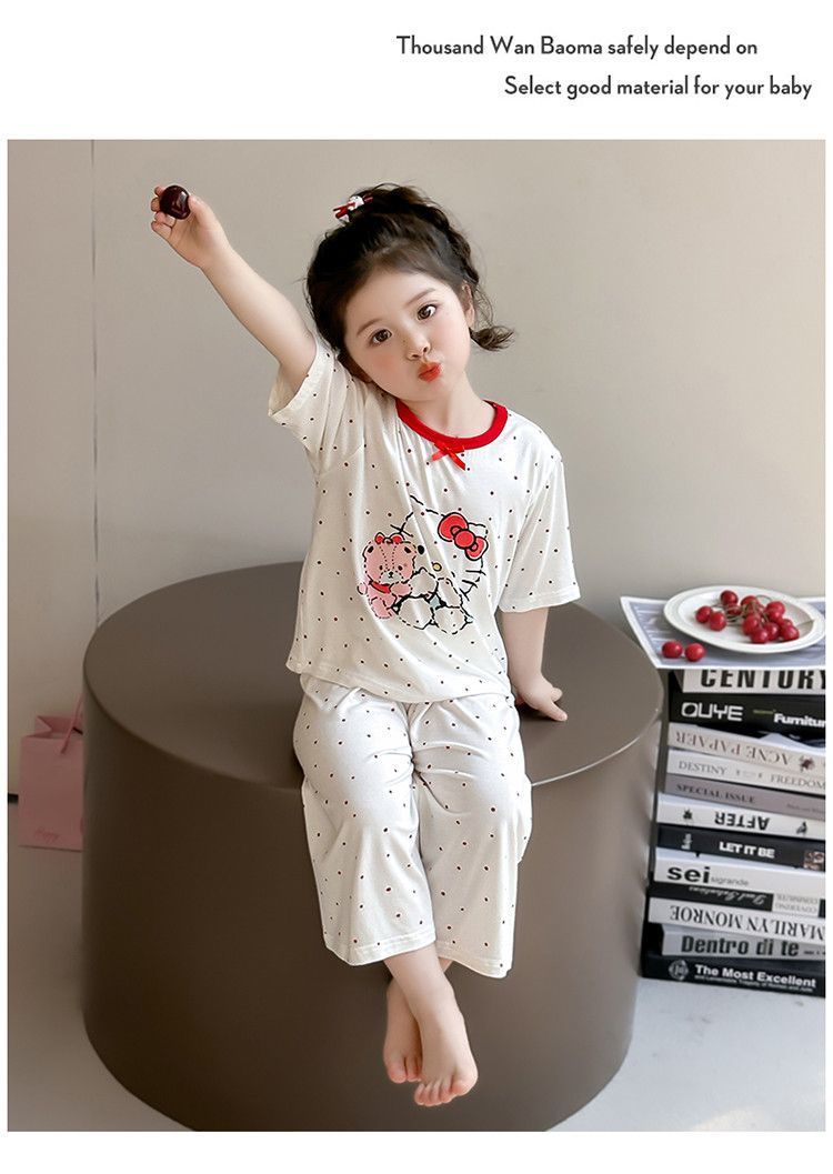 여자 모달 잠옷 세트 여름 새로운 에어컨 어린이 만화 귀여운 아기 반팔 얇은 가정 의류스토어 가기