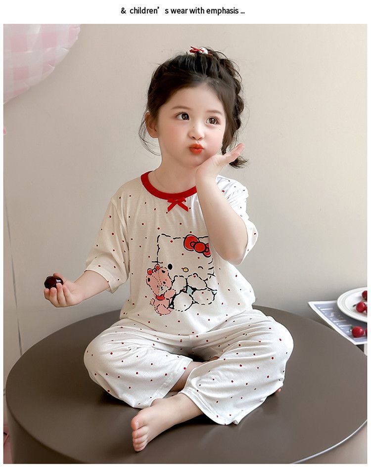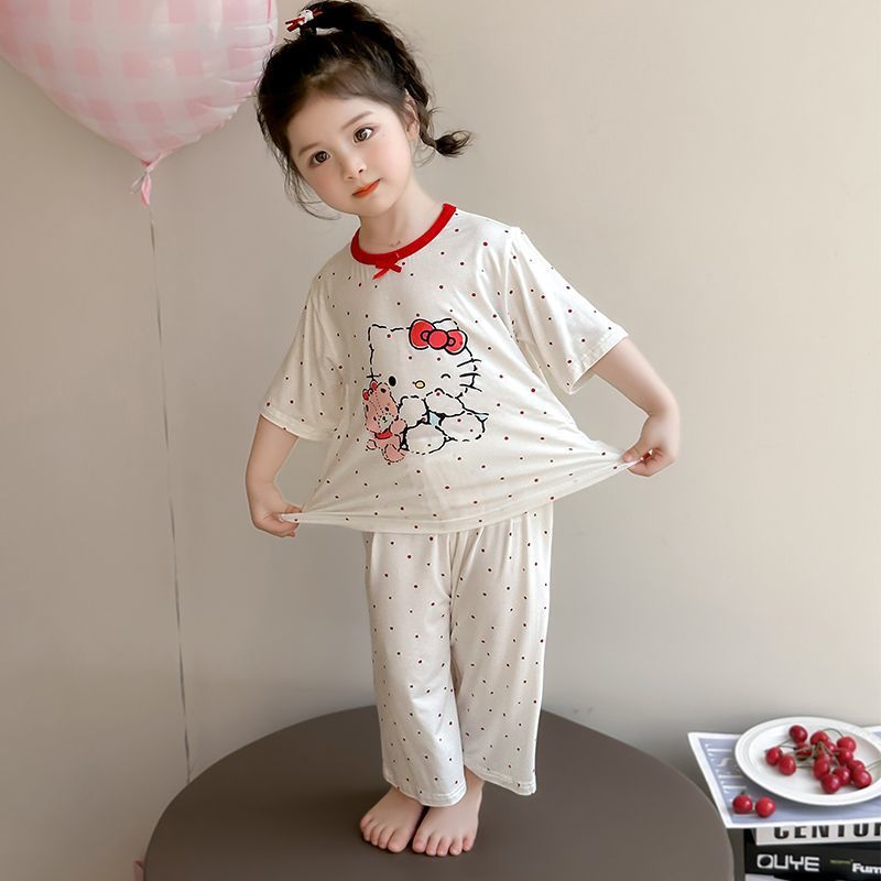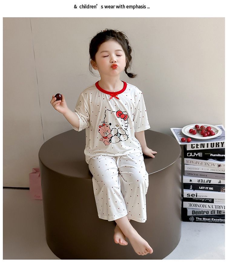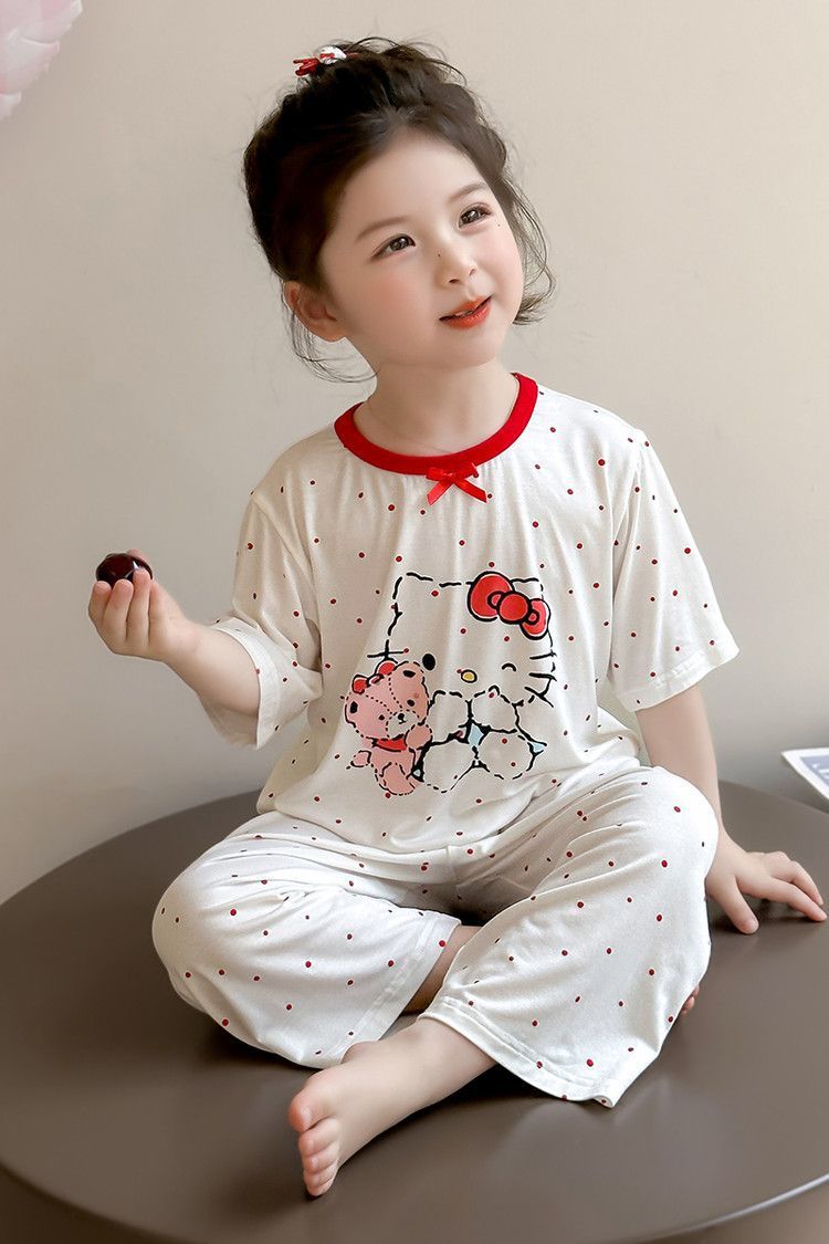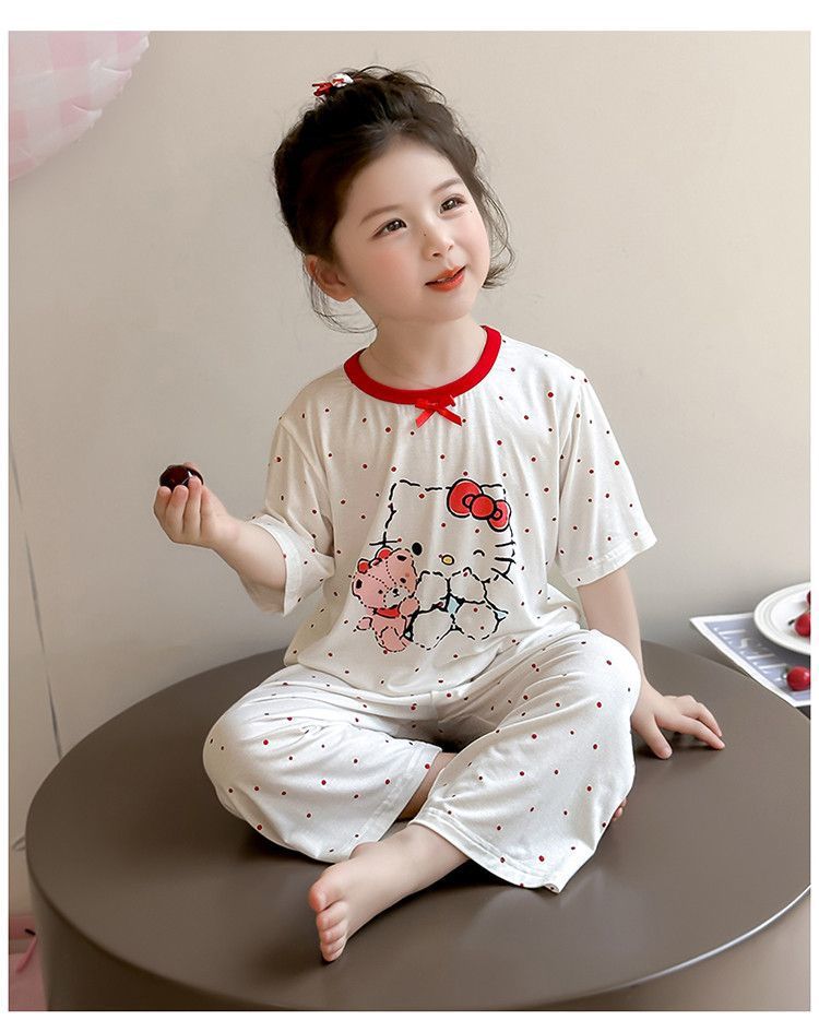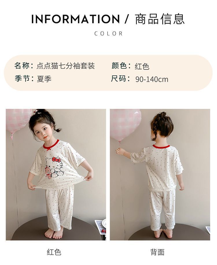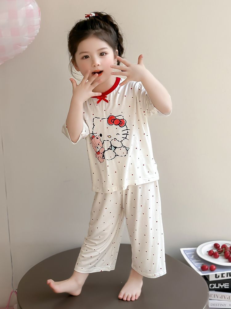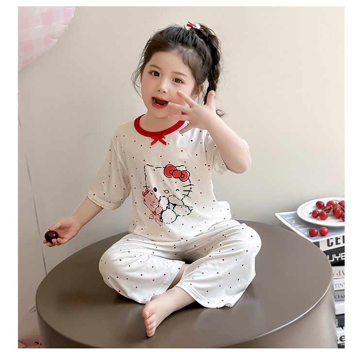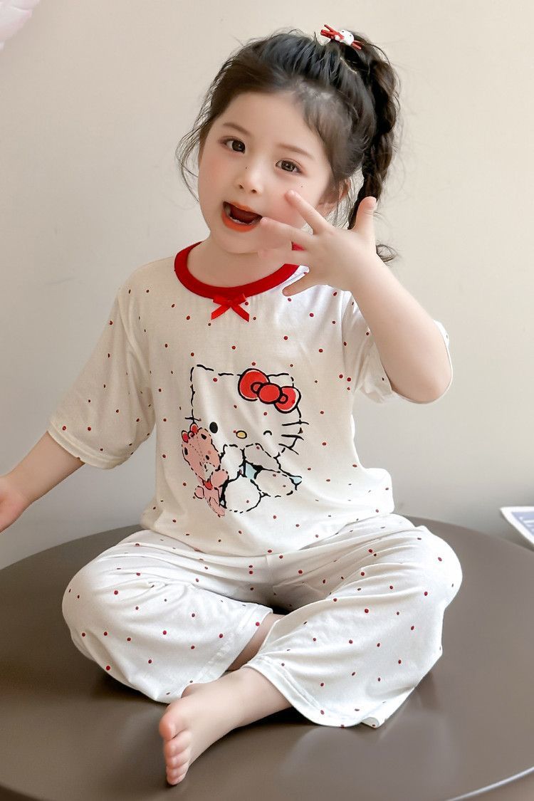 여자 모달 잠옷 세트 여름 새로운 에어컨 어린이 만화 귀여운 아기 반팔 얇은 가정 의류스토어 가기