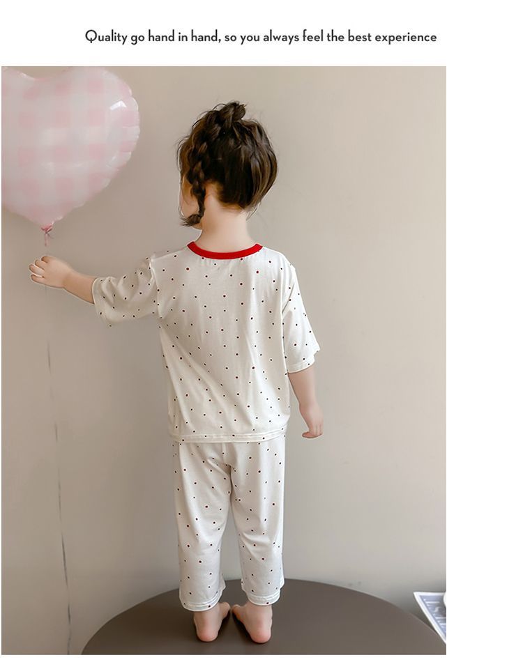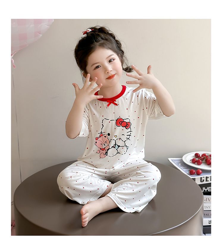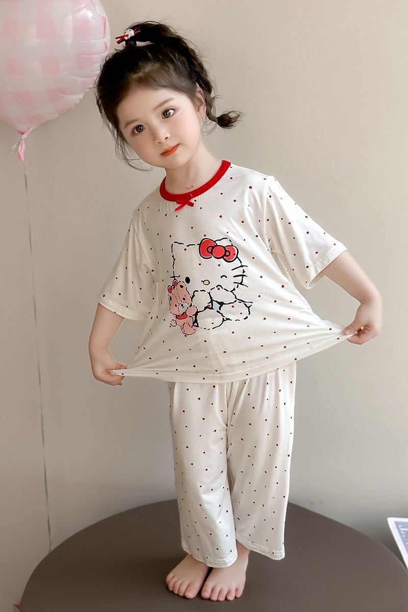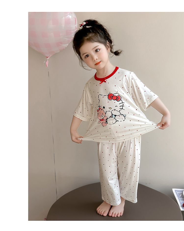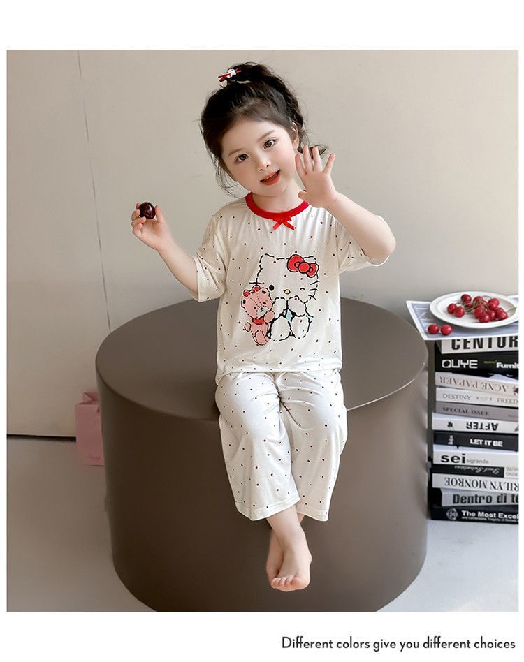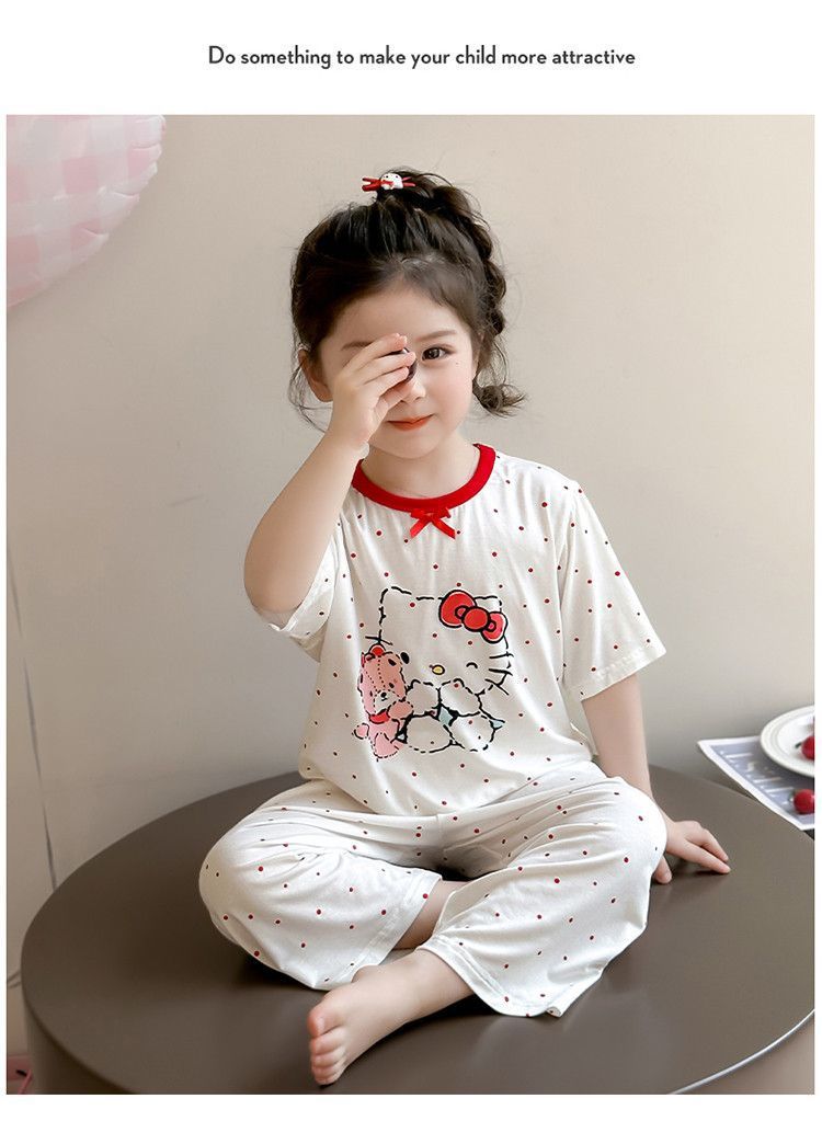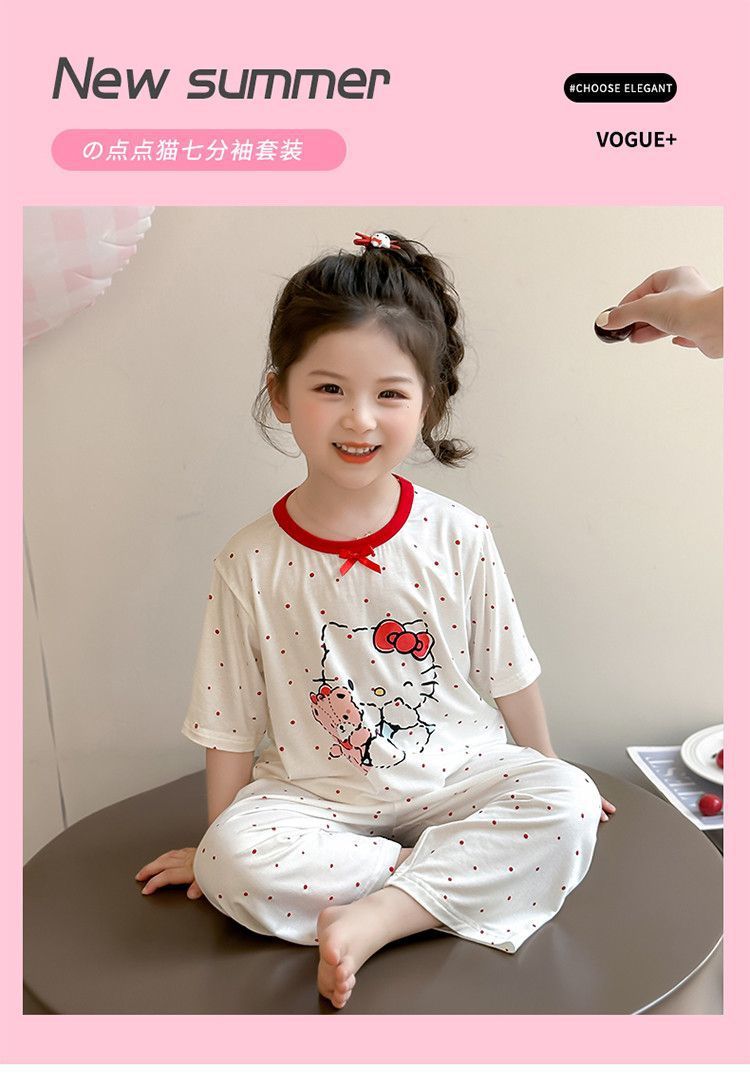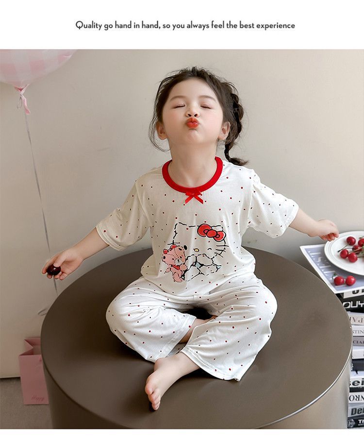 여자 모달 잠옷 세트 여름 새로운 에어컨 어린이 만화 귀여운 아기 반팔 얇은 가정 의류스토어 가기