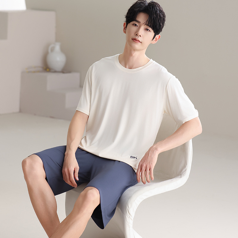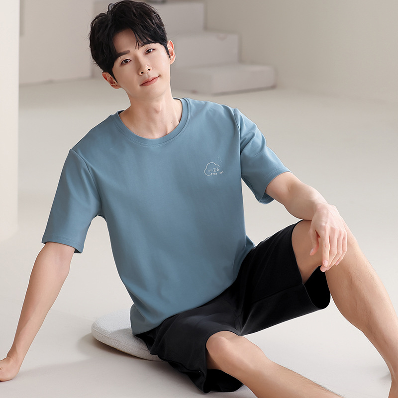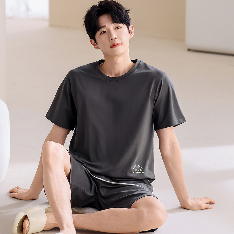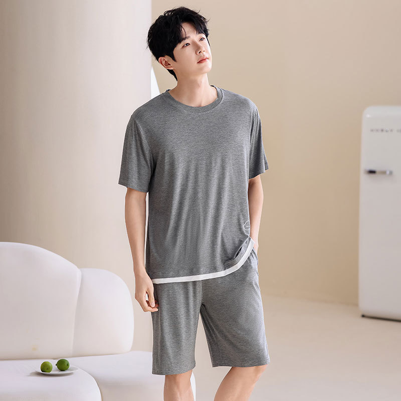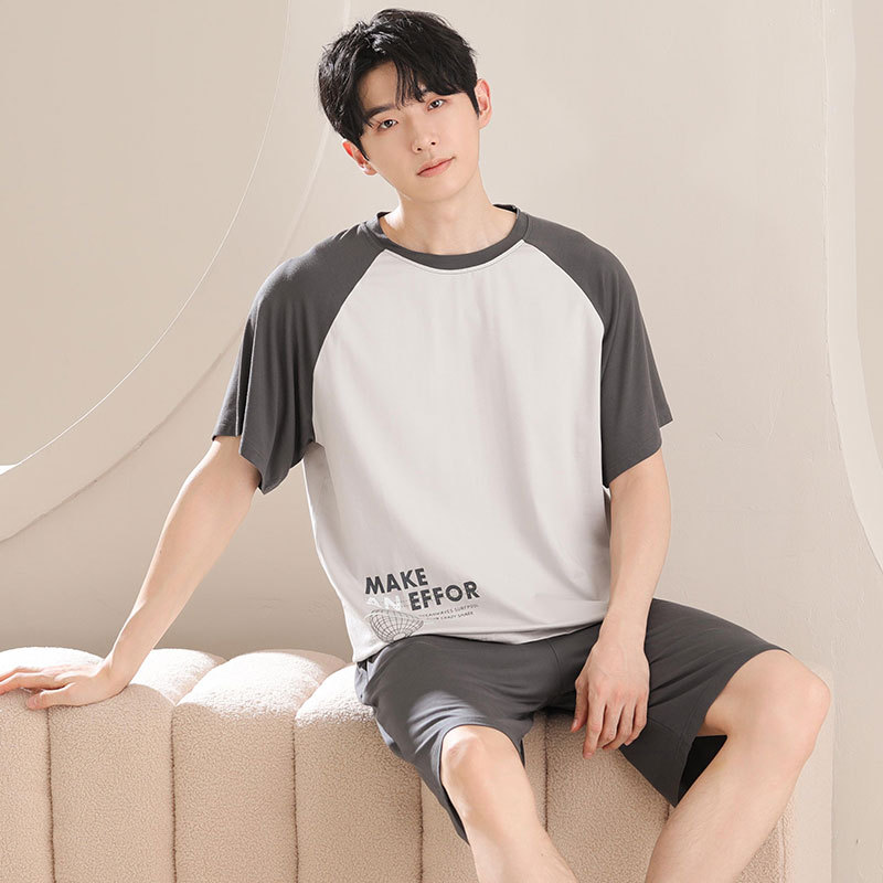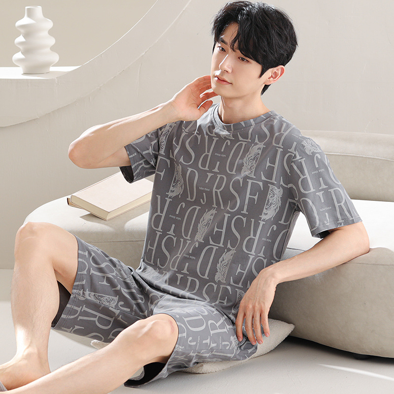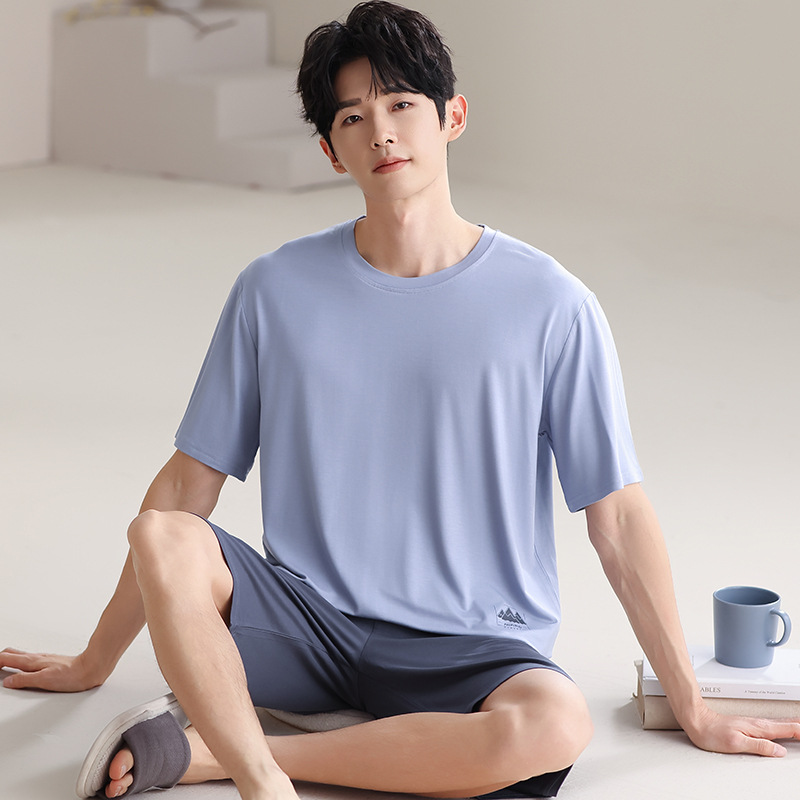 파자마 남성 모달 남성 여름 반팔 2025 새로운 청소년 대형 루즈 홈웨어 세트스토어 가기
