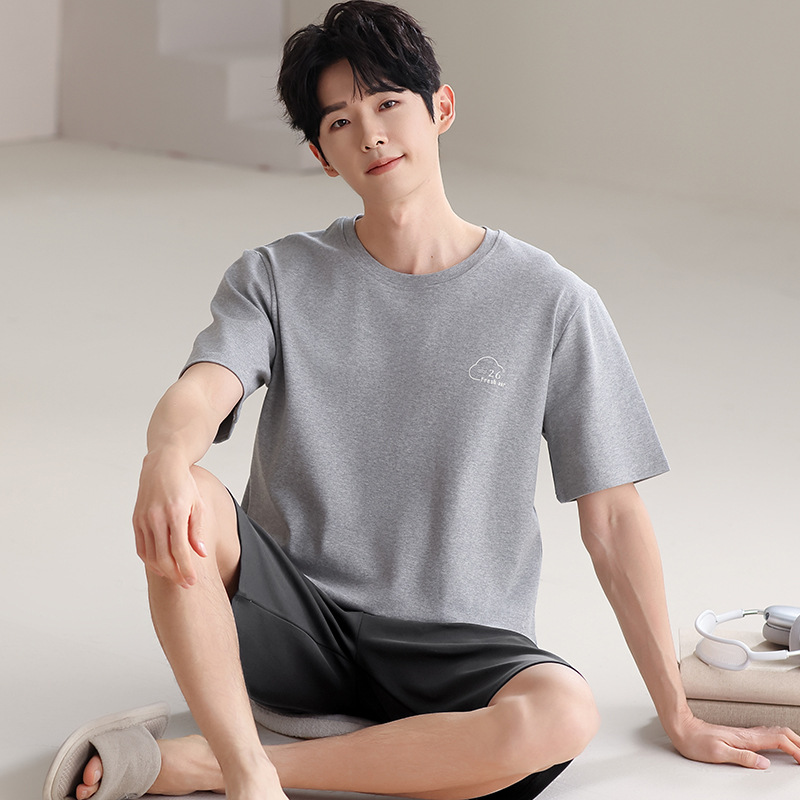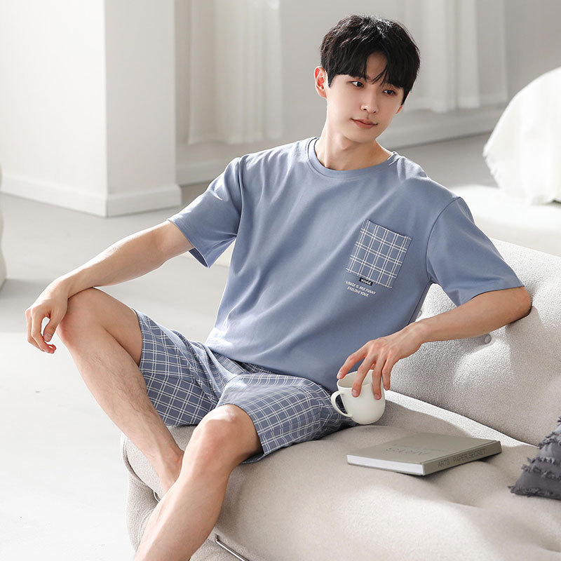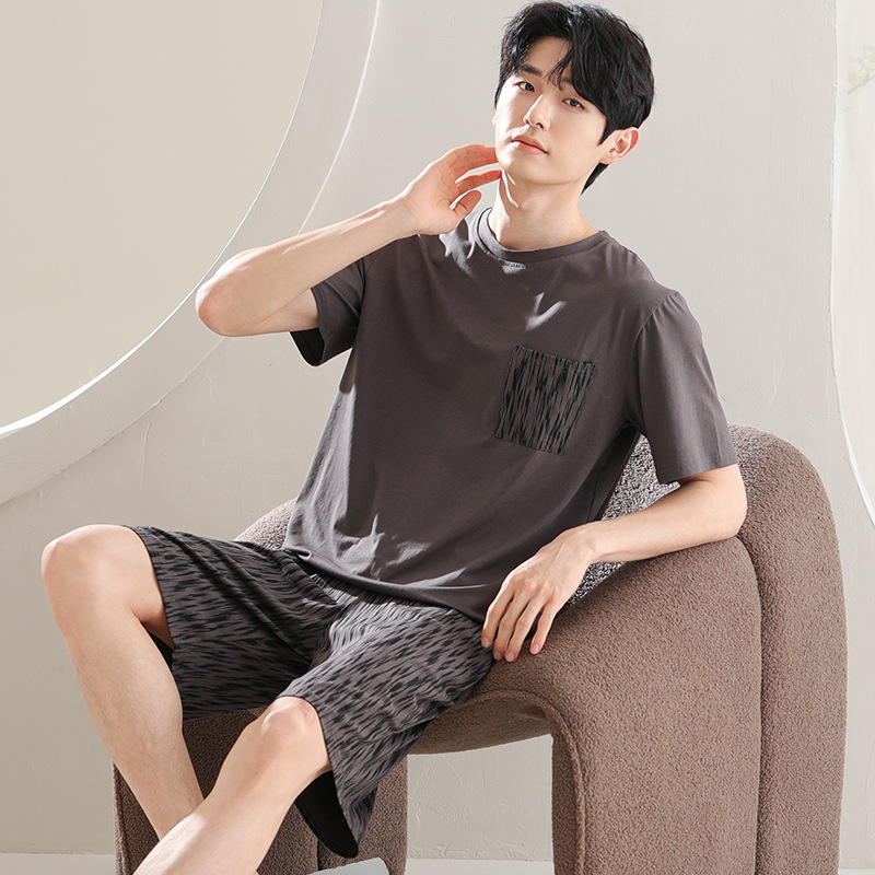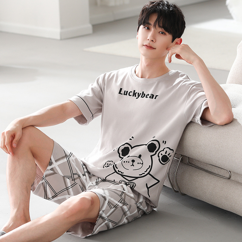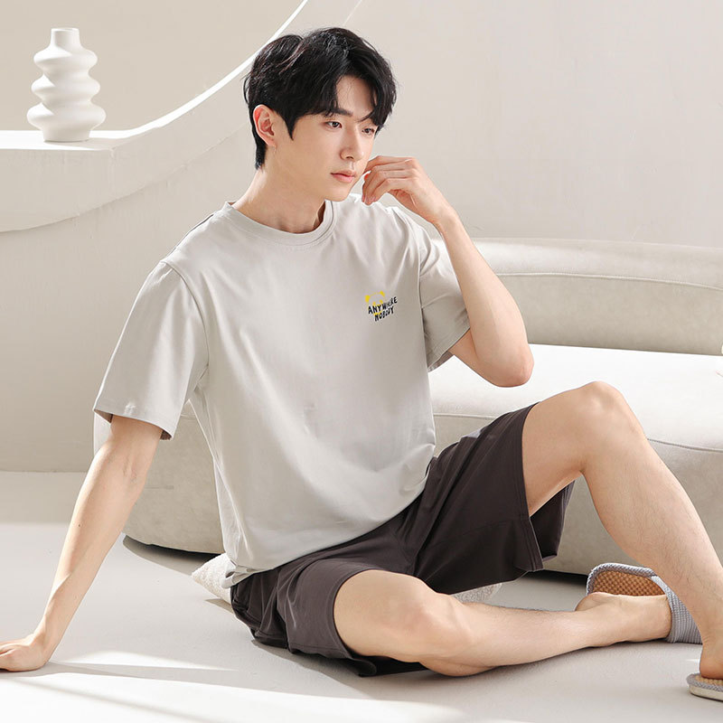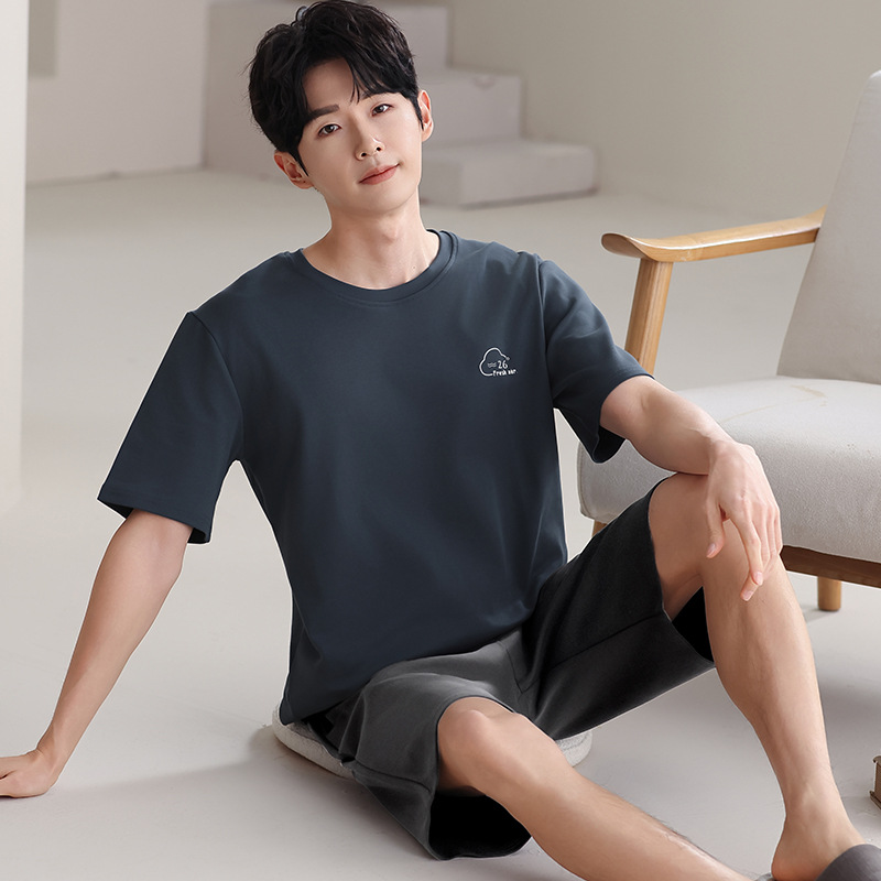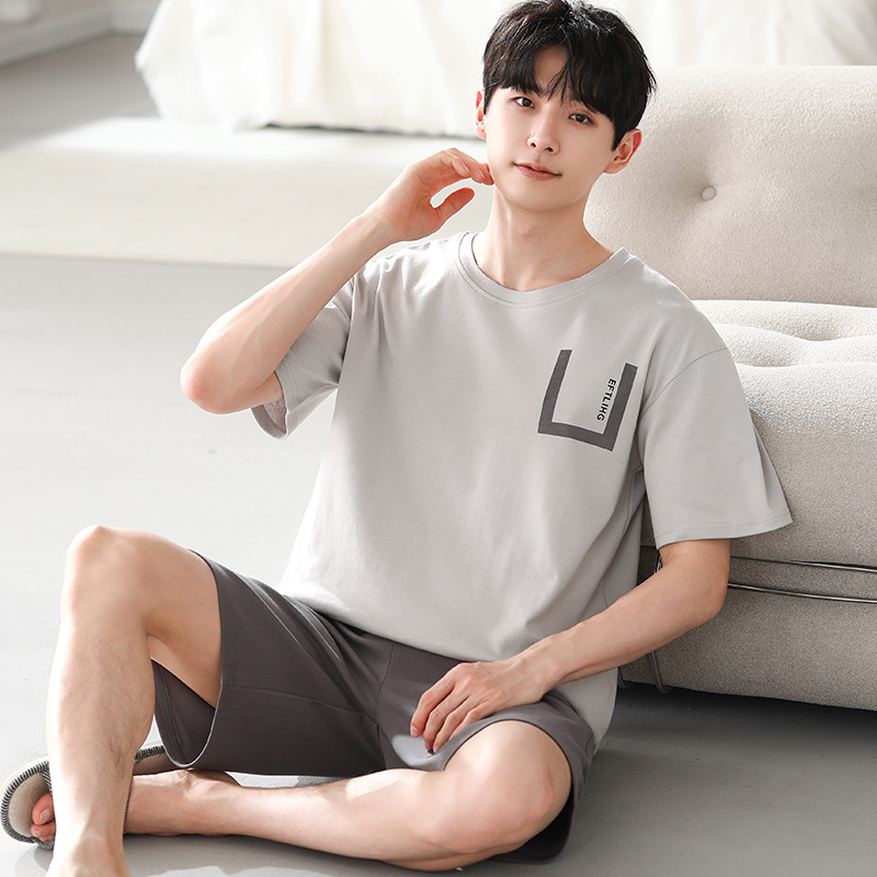 파자마 남성 모달 남성 여름 반팔 2025 새로운 청소년 대형 루즈 홈웨어 세트스토어 가기