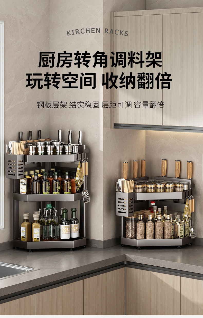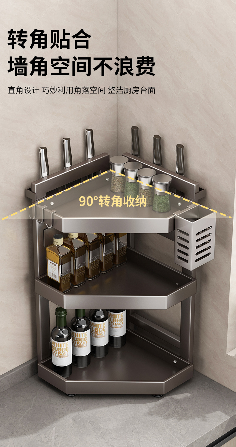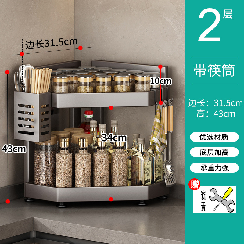 카운터탑 코너 삼각형 선반 주방 수납 선반 가정용 조미료 소금 조미료 항아리 다층 조미료 수납 선반스토어 가기