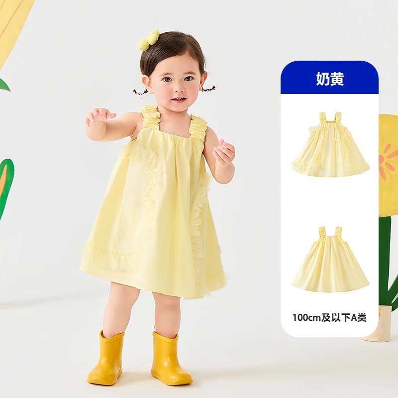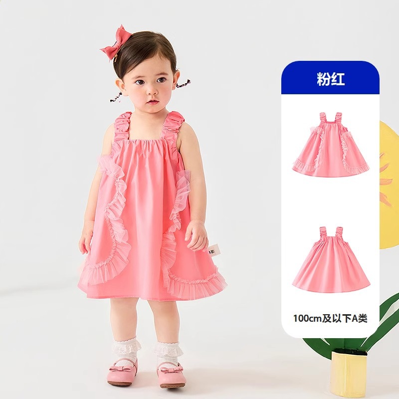 아기 여름 옷 소녀 여름 민소매 코튼 드레스 2025 어린이를위한 새로운 달콤한 레이스 조끼 드레스스토어 가기