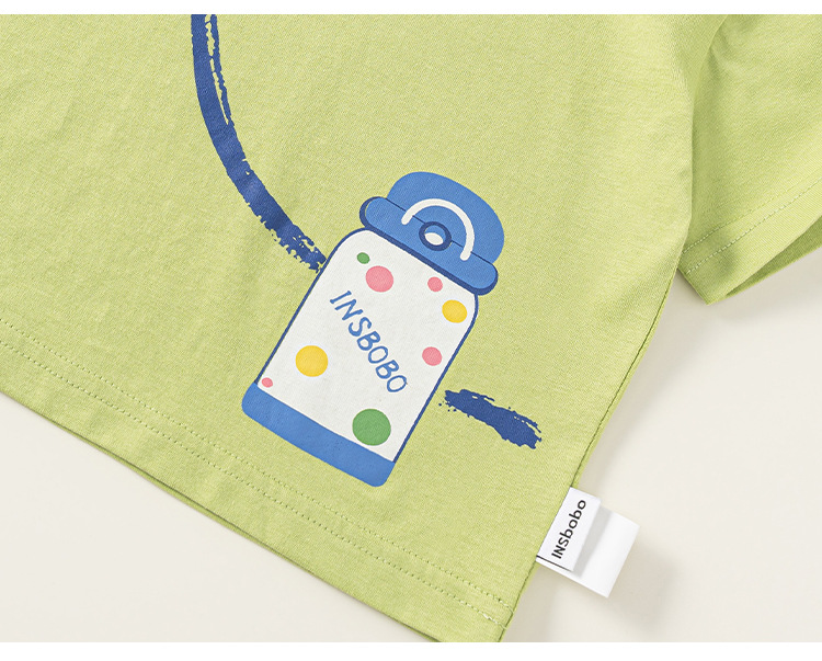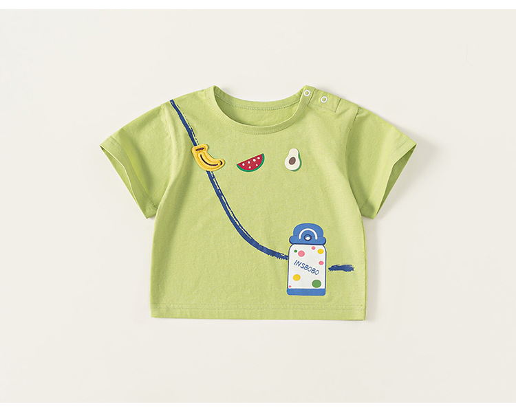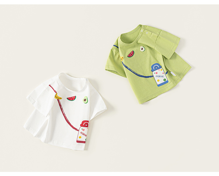 봉 선택 여름 새 아기 크루 넥 톱 소년 아기 얇은 느슨한 티셔츠 소년 만화 인쇄 짧은 소매스토어 가기