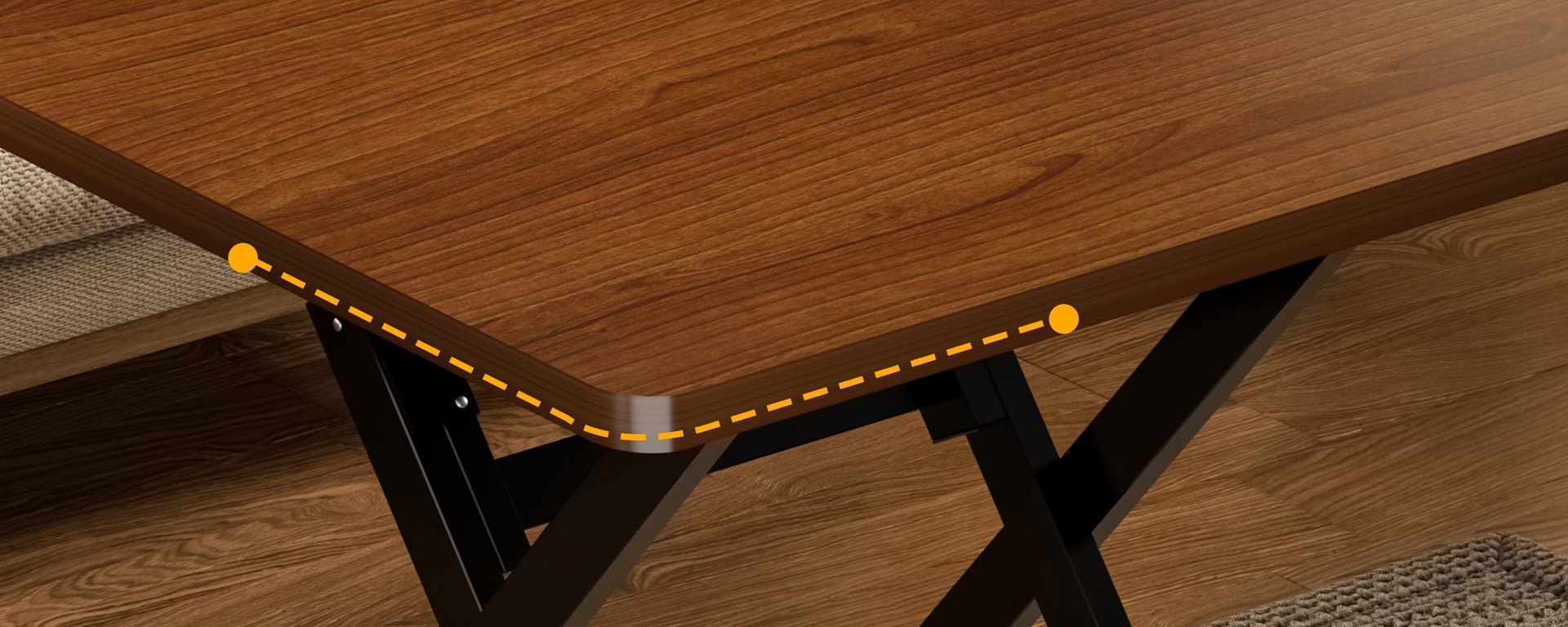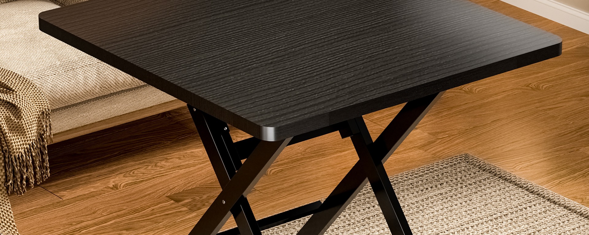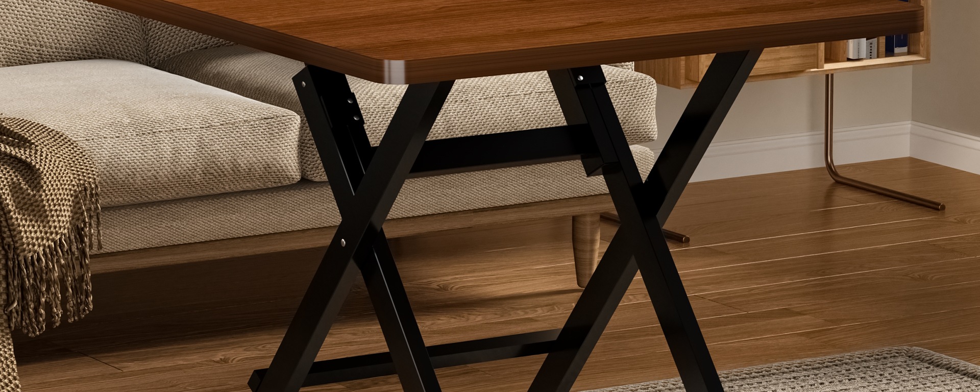 • 로그컬러 60*60*72 [두꺼운 데스크탑-블랙 페인트 다리]