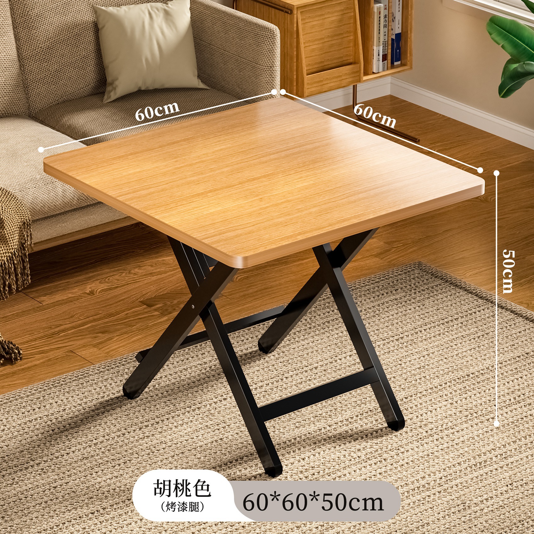 • 블랙월넛 컬러 60*60*50 [두꺼운 탁상-블랙 페인트 다리]