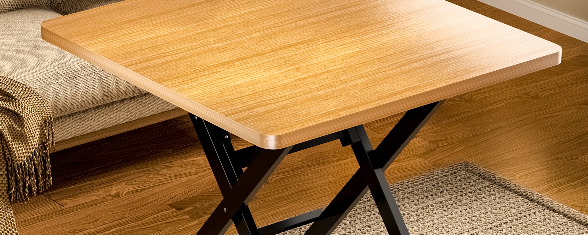 • 로그컬러 80*80*50 [두꺼운 데스크탑-블랙 페인트 다리]