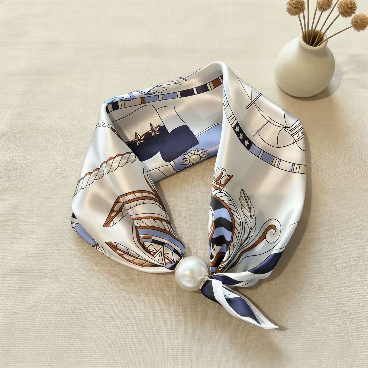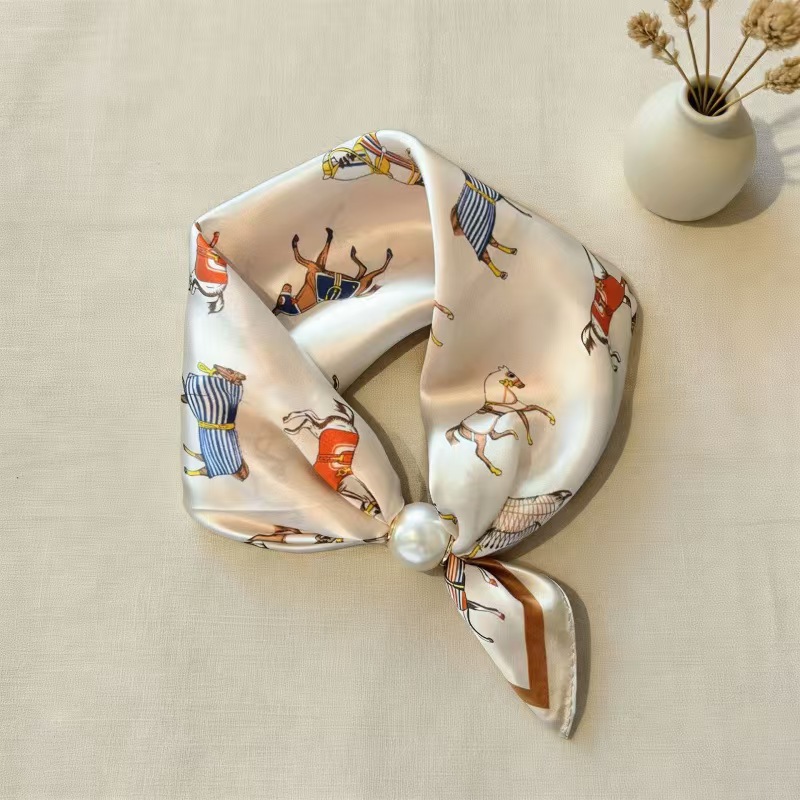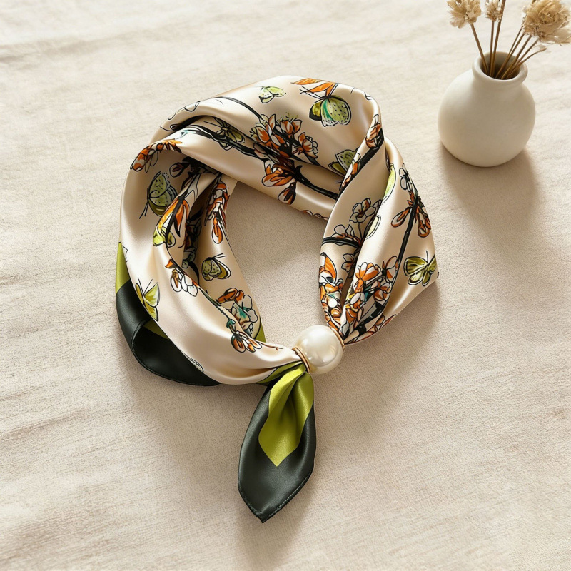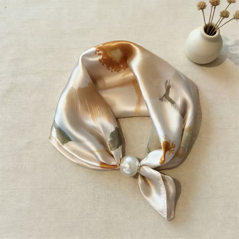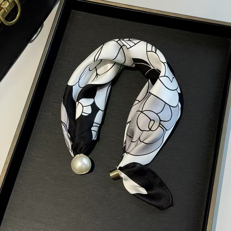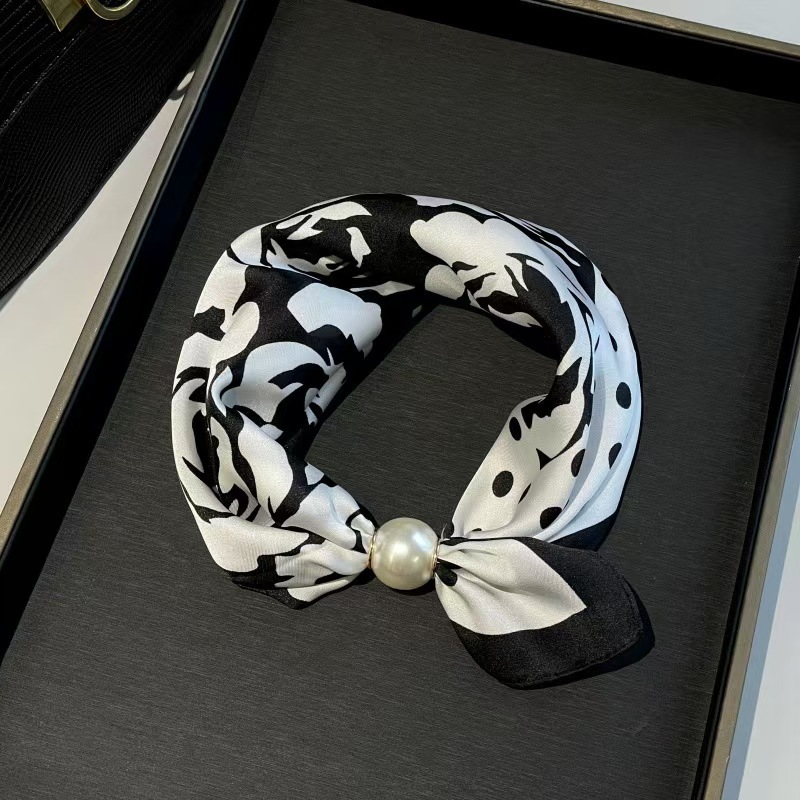 2025 새로운 봄, 여름 얇은 진주 목걸이 마그네틱 버클 게으른 실크 스카프 여성 펜던트 스카프 쇄골 체인 스카프