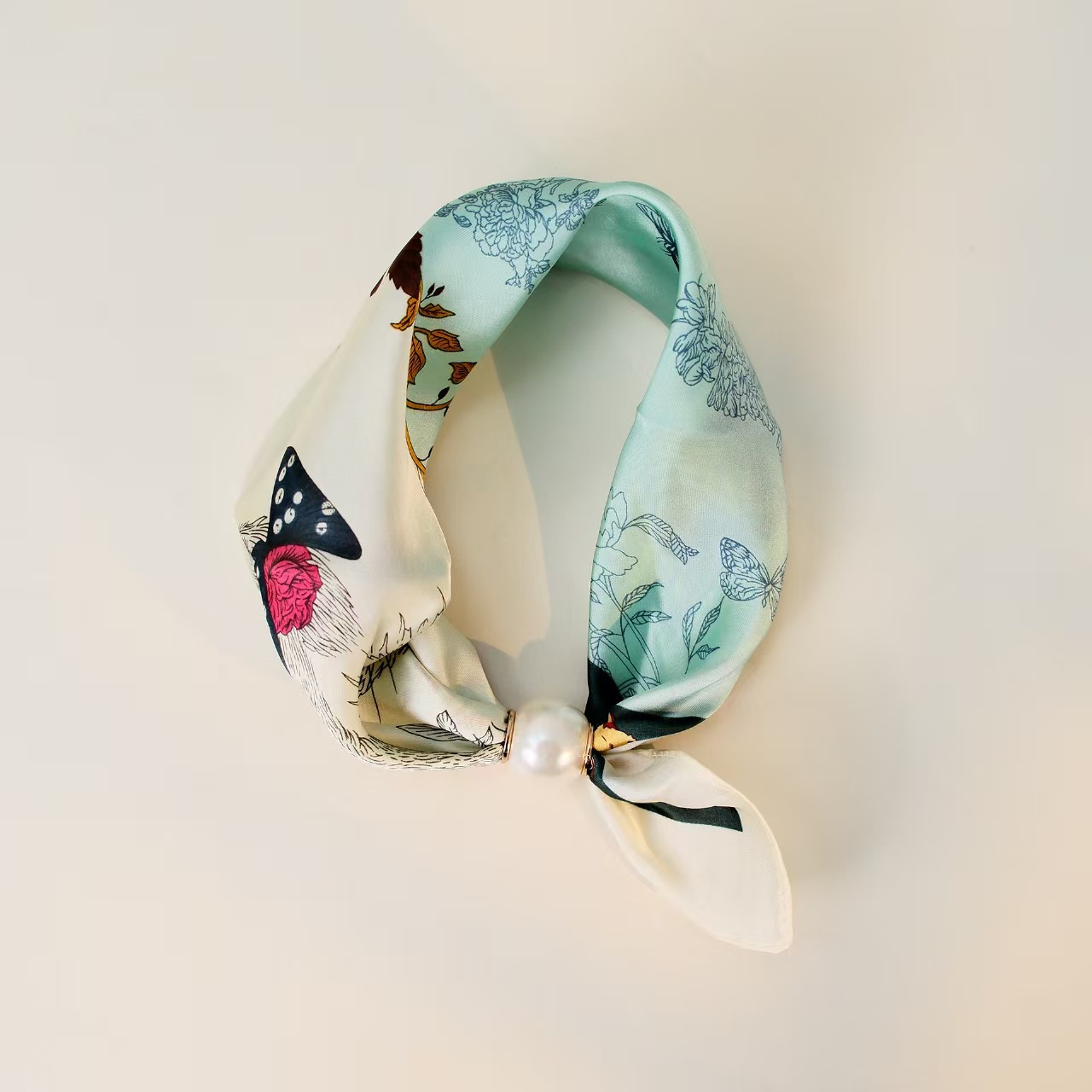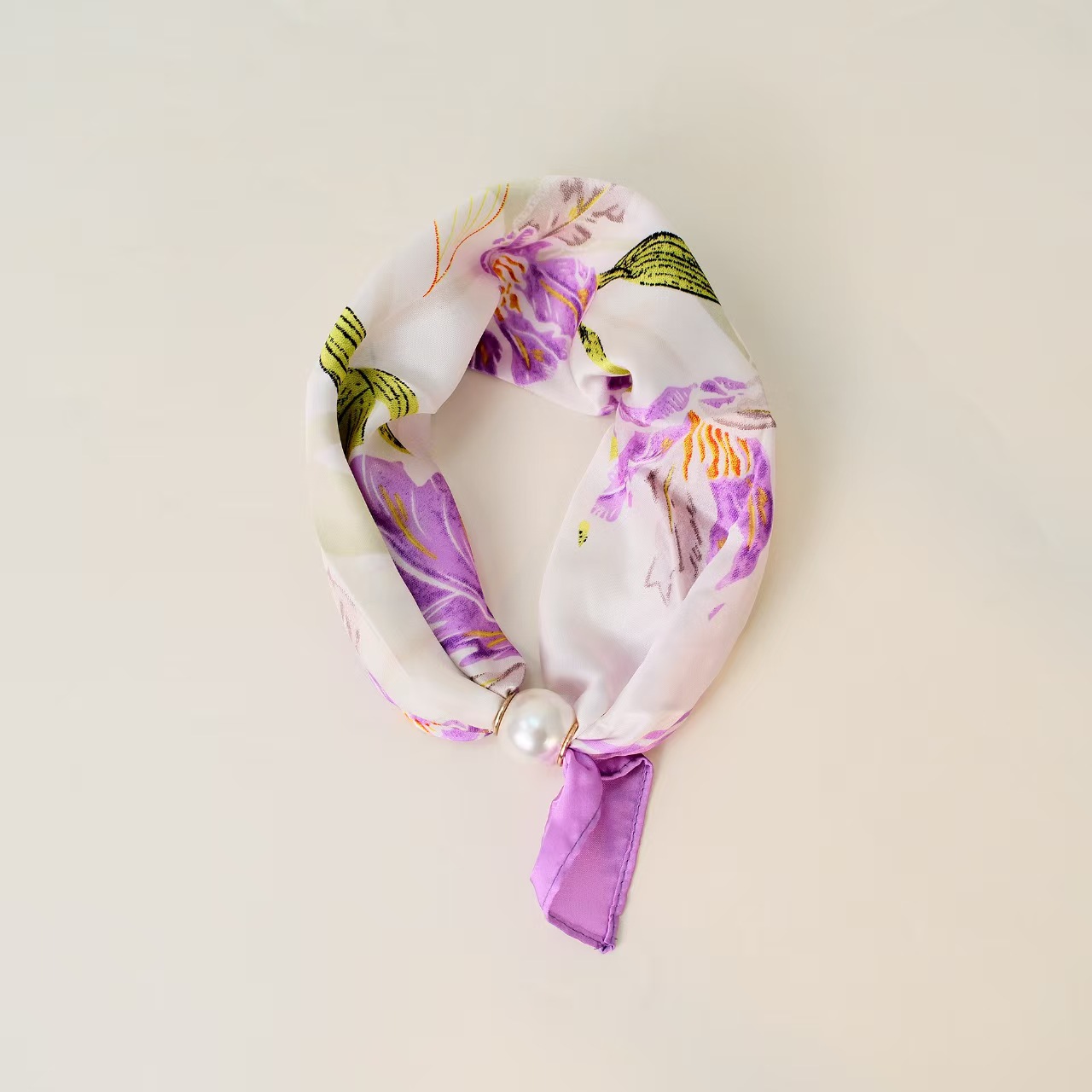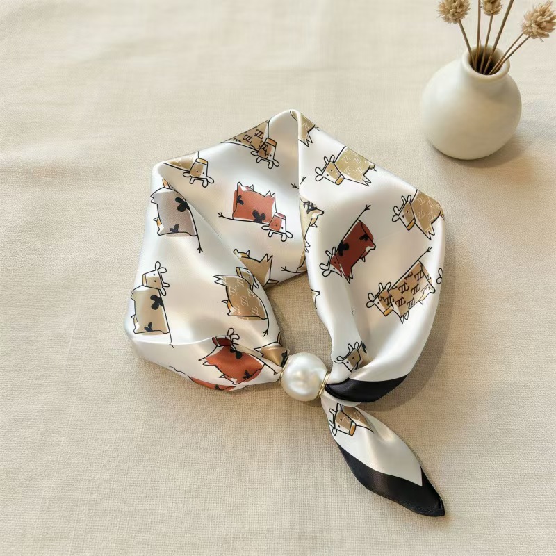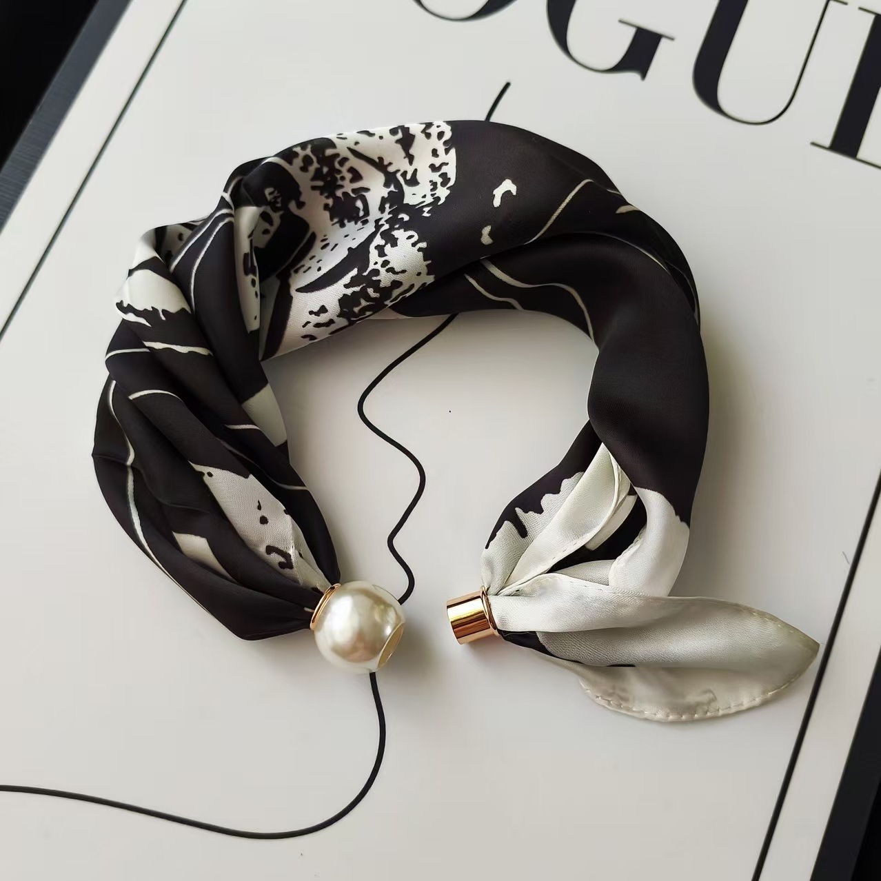 2025 새로운 봄, 여름 얇은 진주 목걸이 마그네틱 버클 게으른 실크 스카프 여성 펜던트 스카프 쇄골 체인 스카프