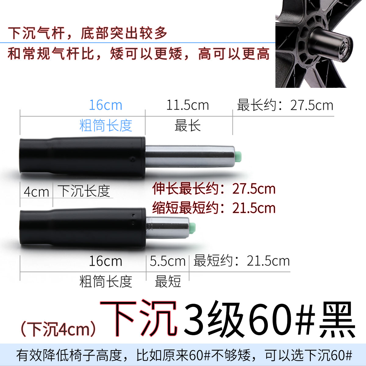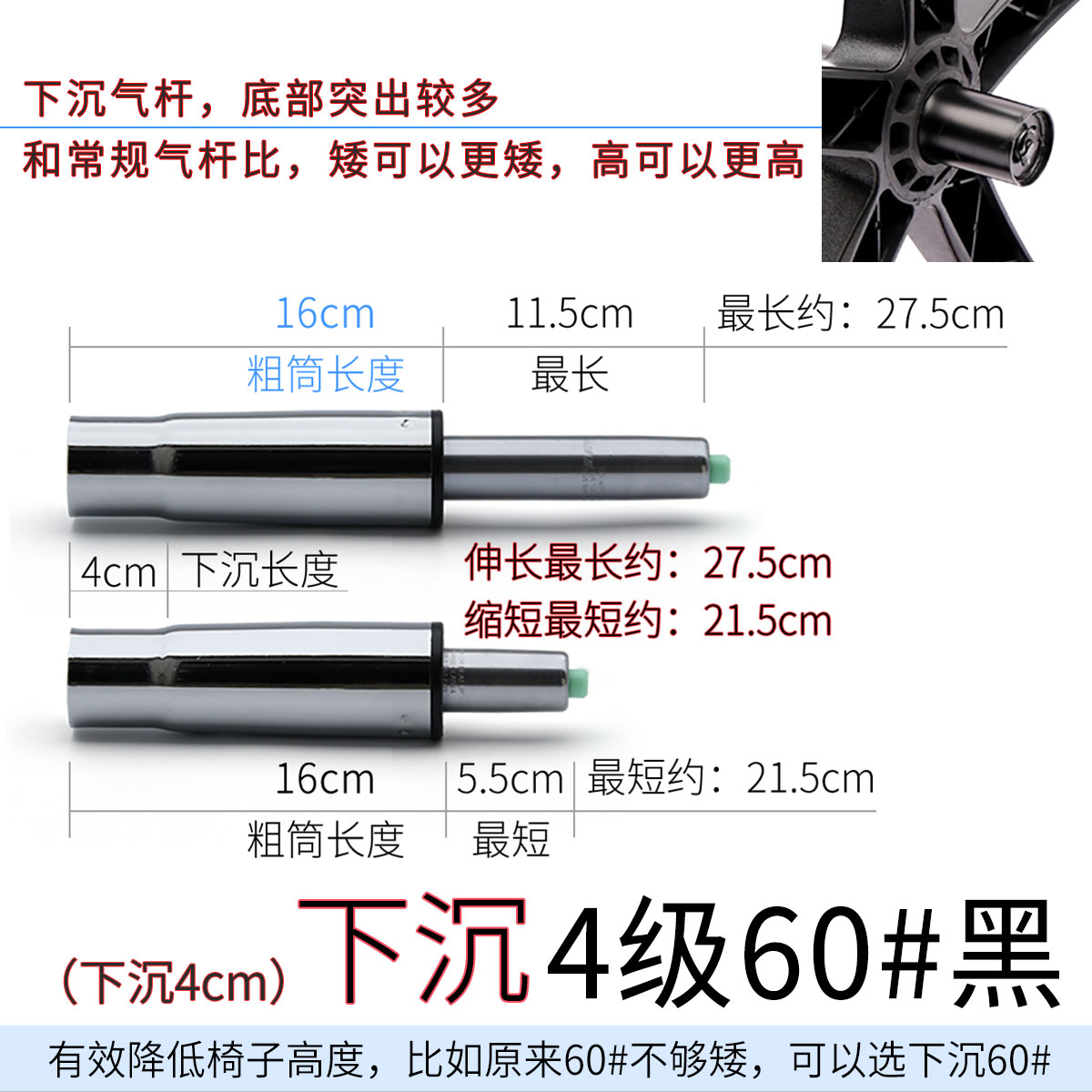 • 싱크 4레벨 60 # 검정색 [4cm 가라앉음] 두꺼운 튜브 16cm