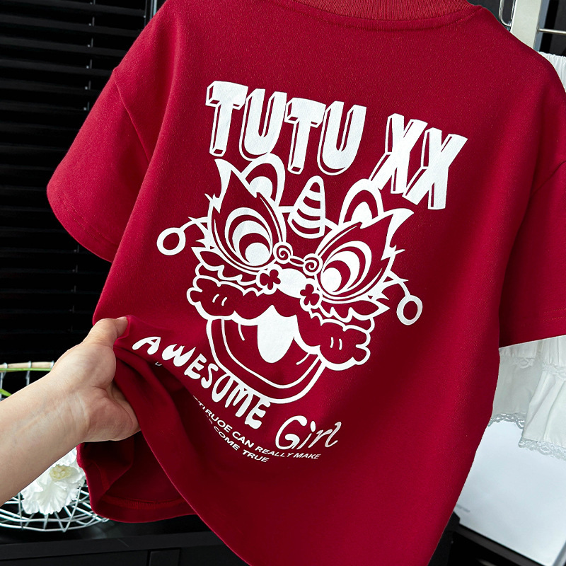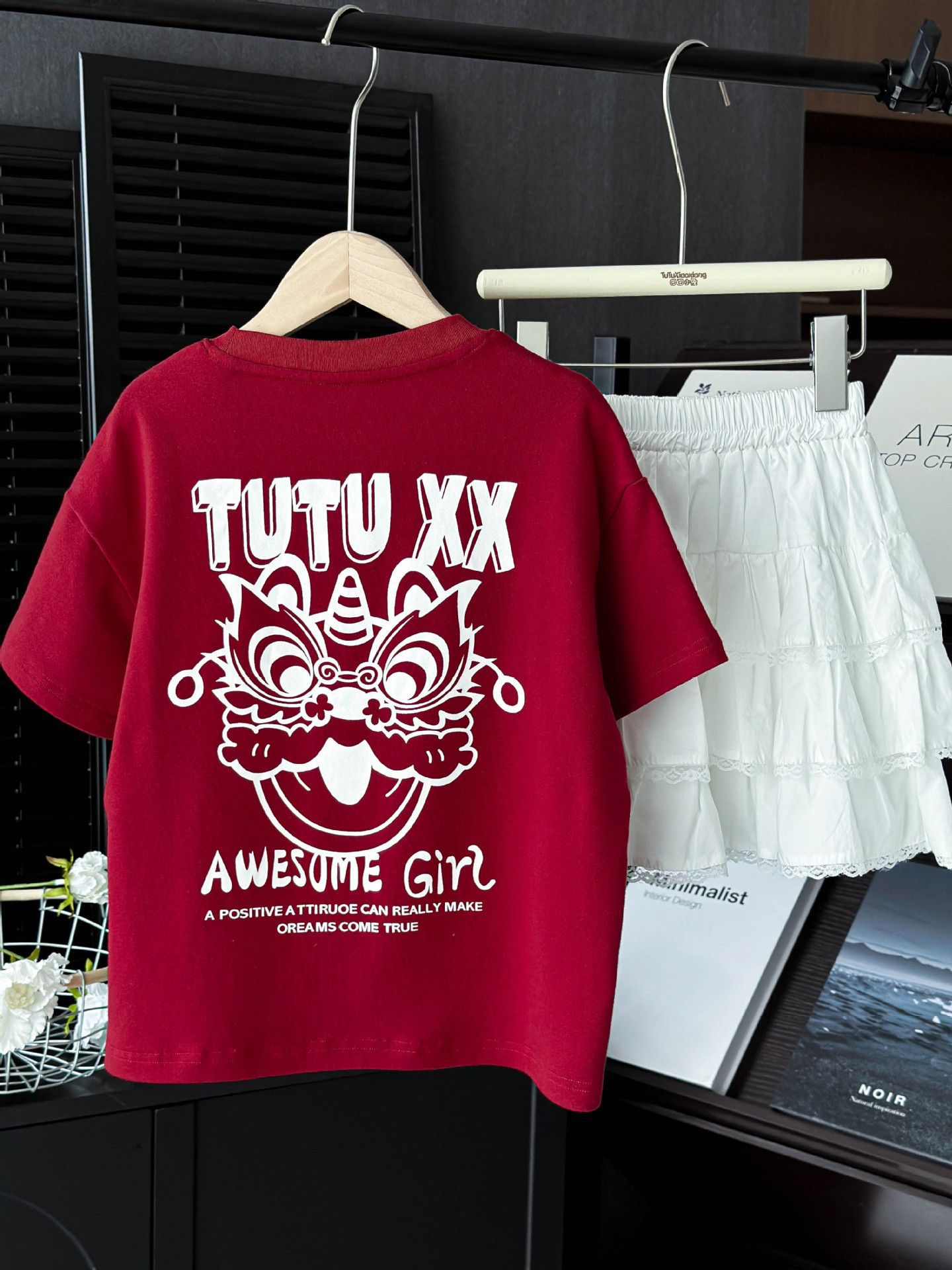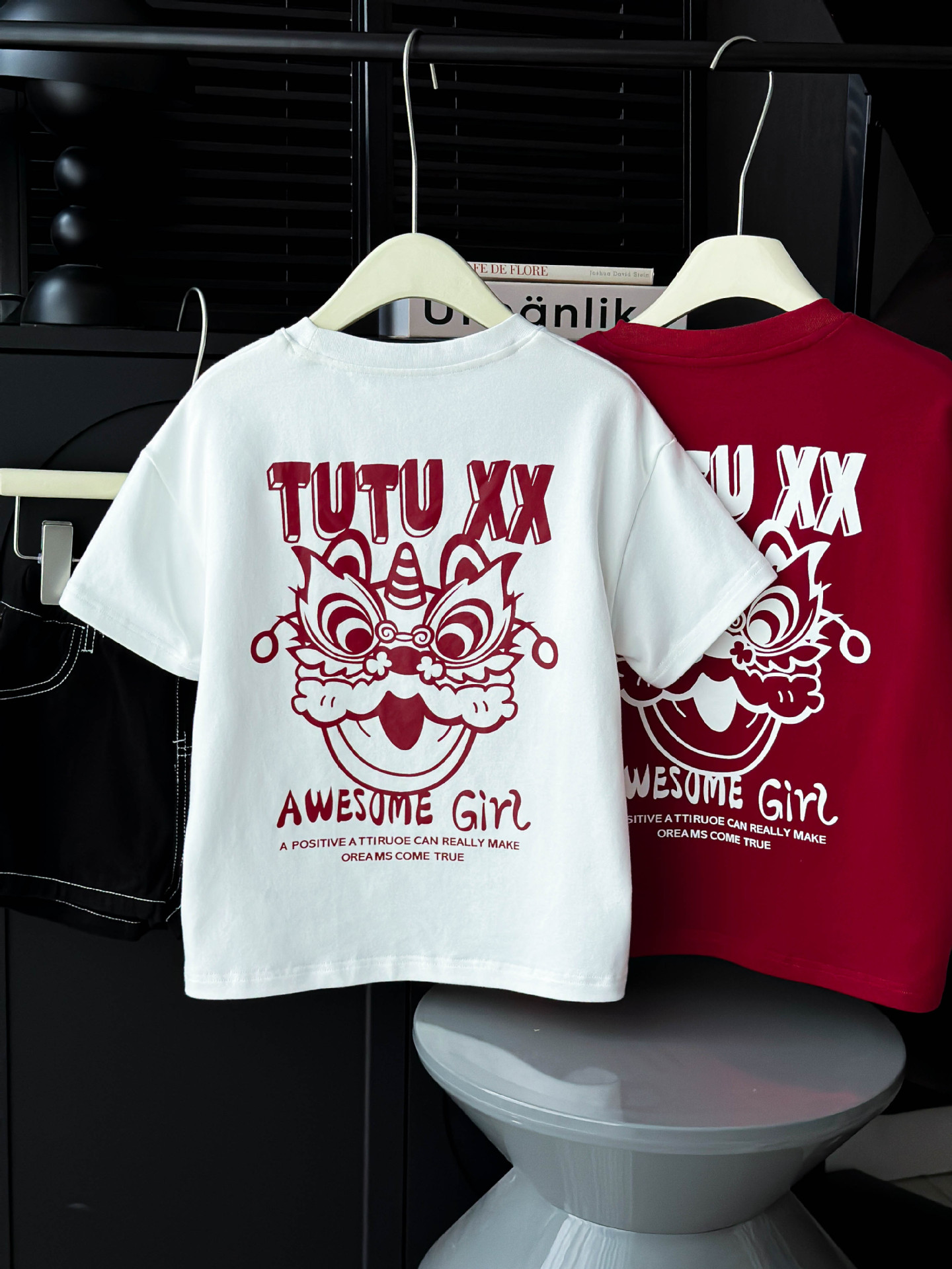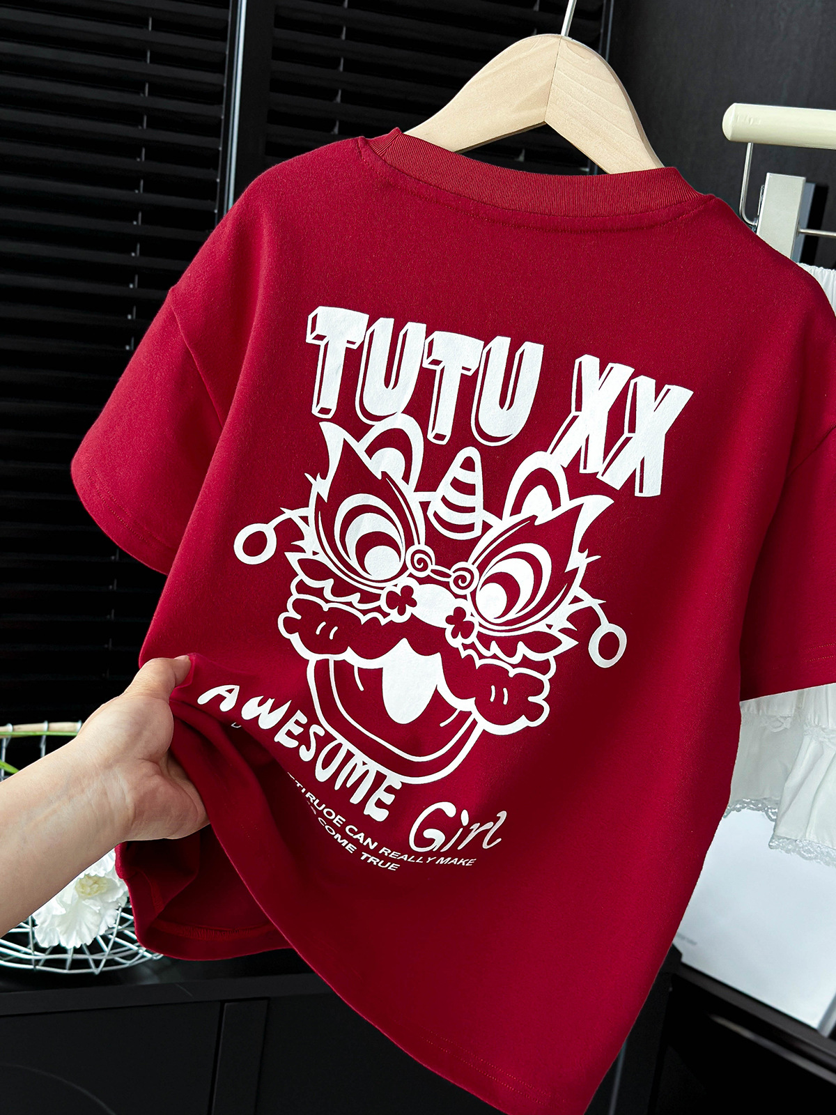 TUTU 아기 코끼리 소년 소녀 반팔 2025 여름 새 아동복 사자 티셔츠 어린이 부모-자식 편지 최고 유행