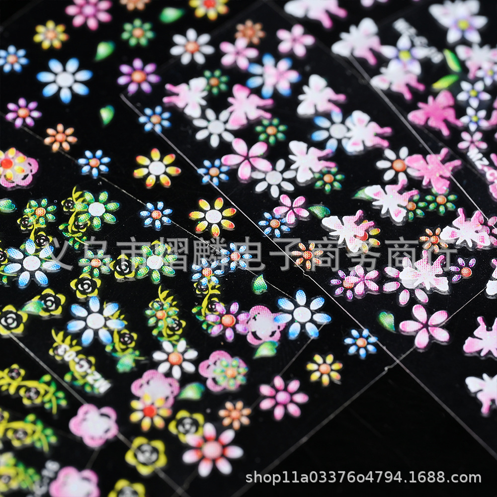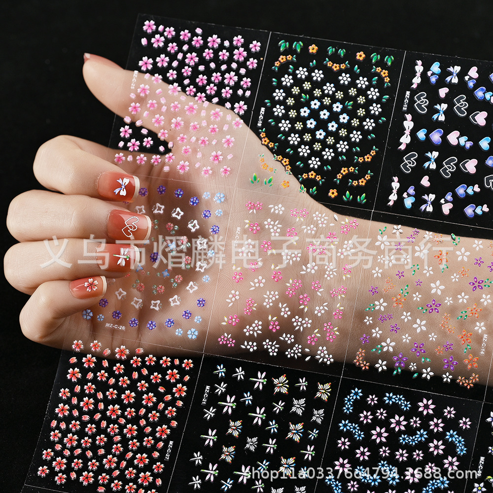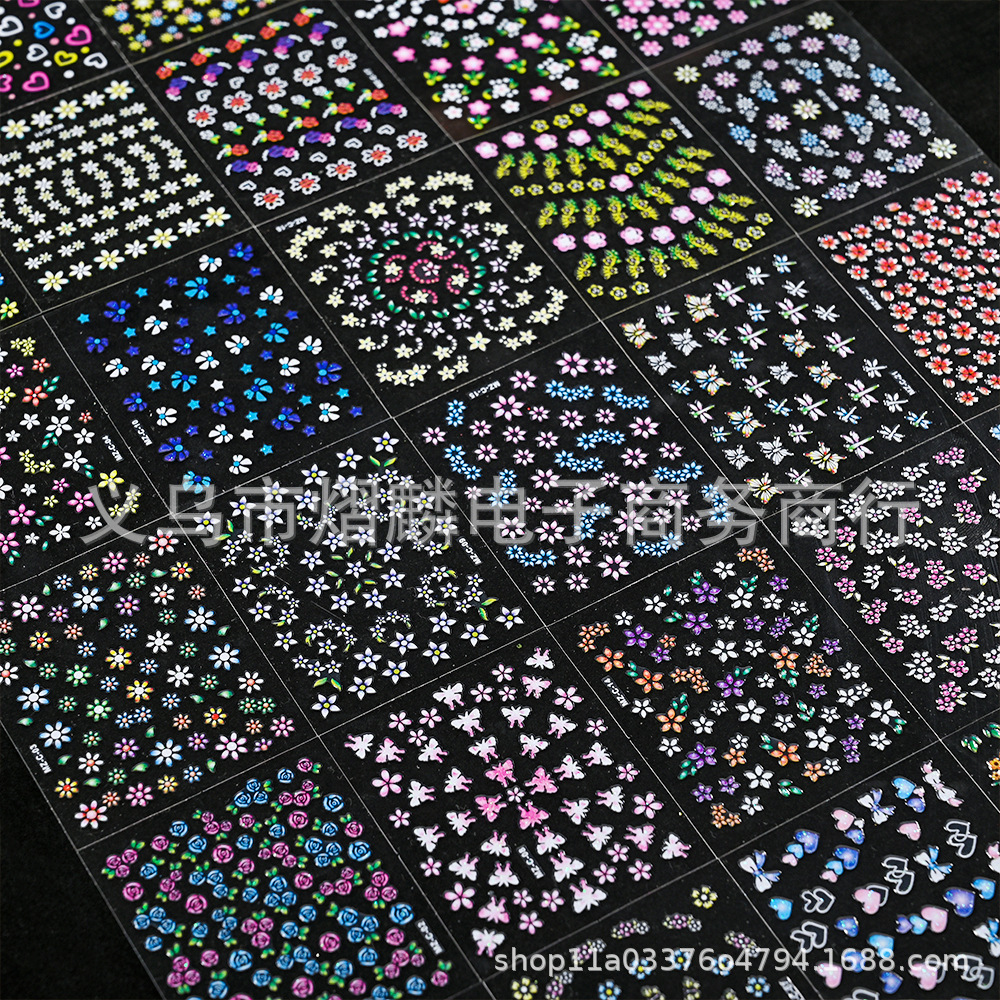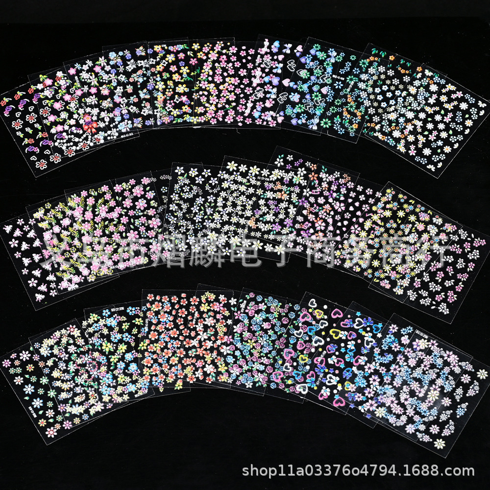 국경 간 다채로운 꽃 네일 스티커 세트 30 신선하고 귀여운 작은 크기 어린이 보상 네일 스티커스토어 가기