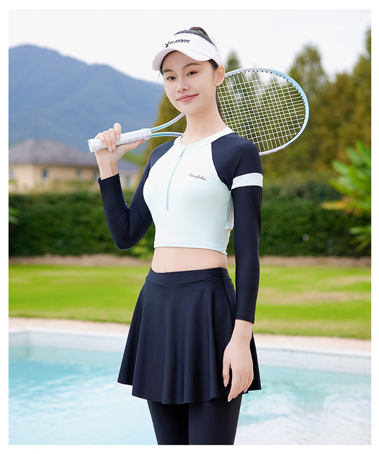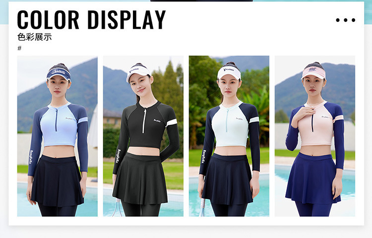 여성용 한국식 서핑 슈트, 스플릿 팬츠, 긴팔 수영복, 여성용 자외선 차단 속건 잠수복, 여성용 해파리 슈트, 스노클링 슈트스토어 가기
