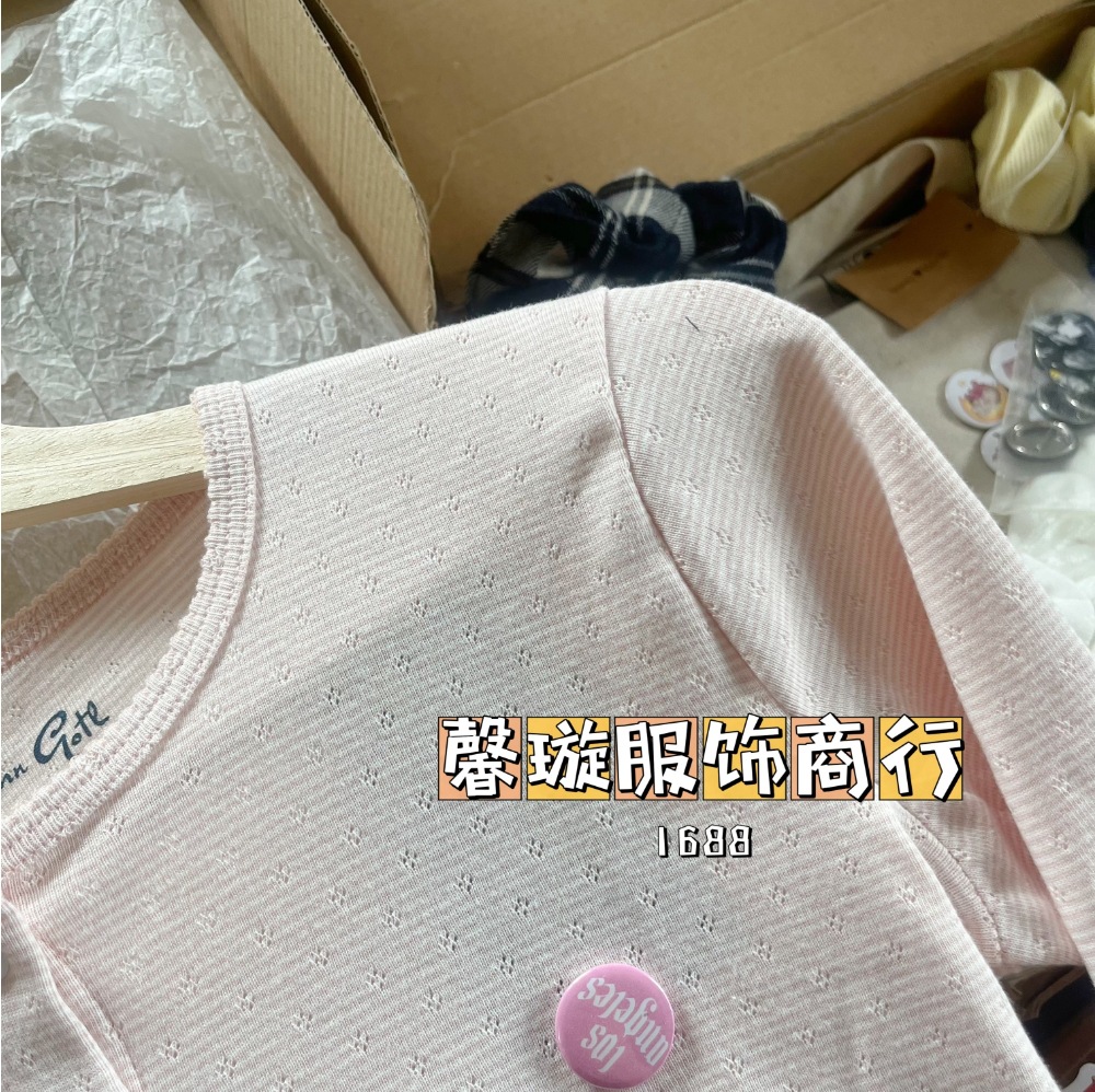 BM 스타일 싱글 브레스트 라이트 핑크 스트라이프 긴팔 카디건 bm 뉴 할로우 메쉬 레이스 슬림 탑 재킷