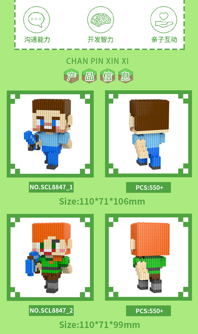 SCL8848 마인크래프트 스티브 알렉스 좀비 피그맨 장난감 선물