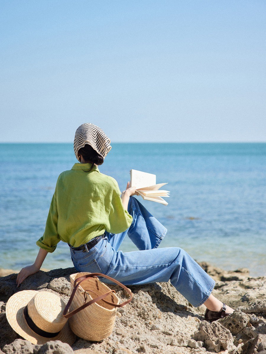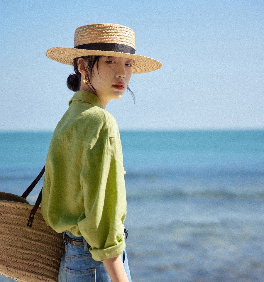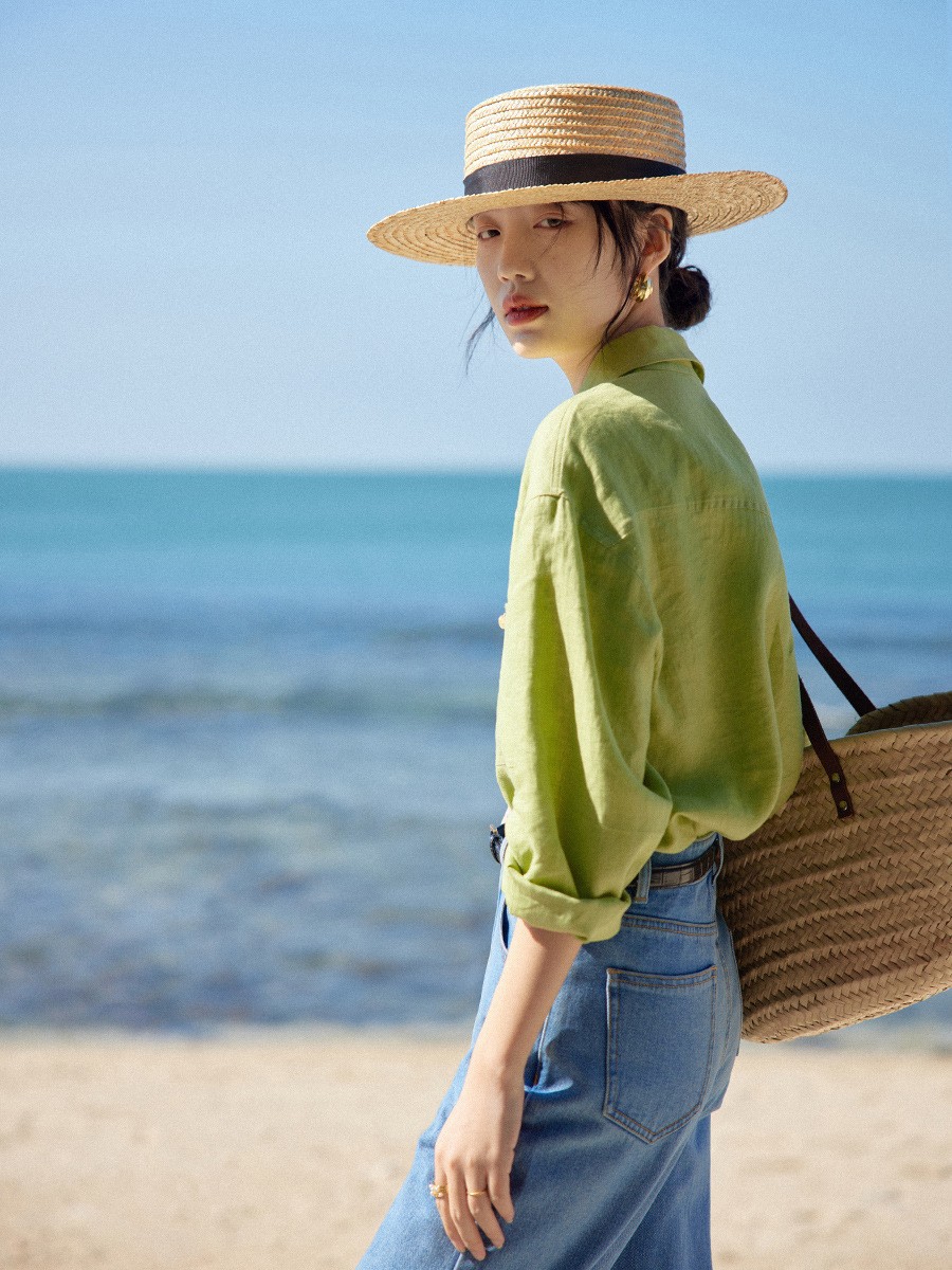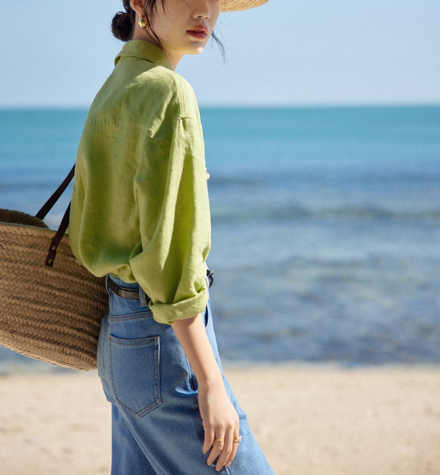 프랑스 복고풍 14 카운트 린넨 녹색 긴팔 소금 셔츠 여성 봄, 여름 새로운 캐주얼 루즈 셔츠스토어 가기