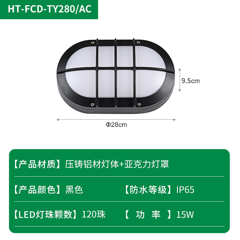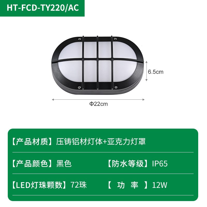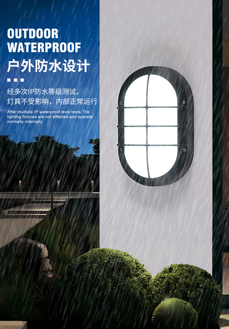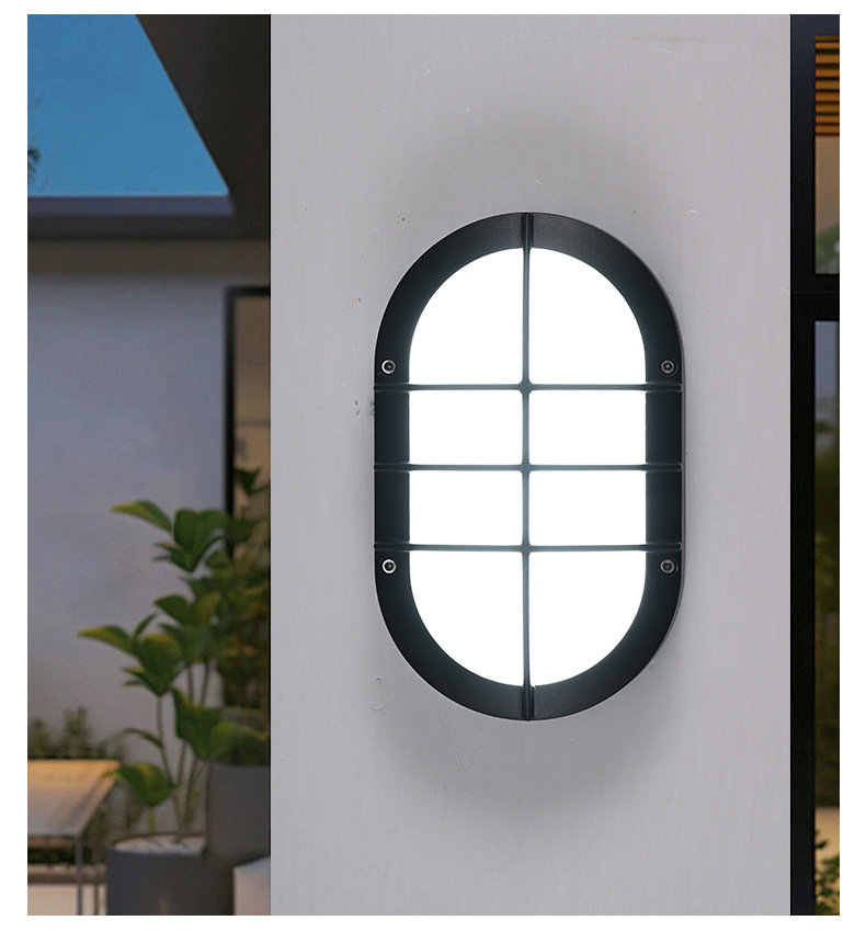 야외 타원형 LED 방습 벽 램프 발코니 조명 블랙 간단한 다이 캐스팅 알루미늄 호텔 간단한 정원 조명