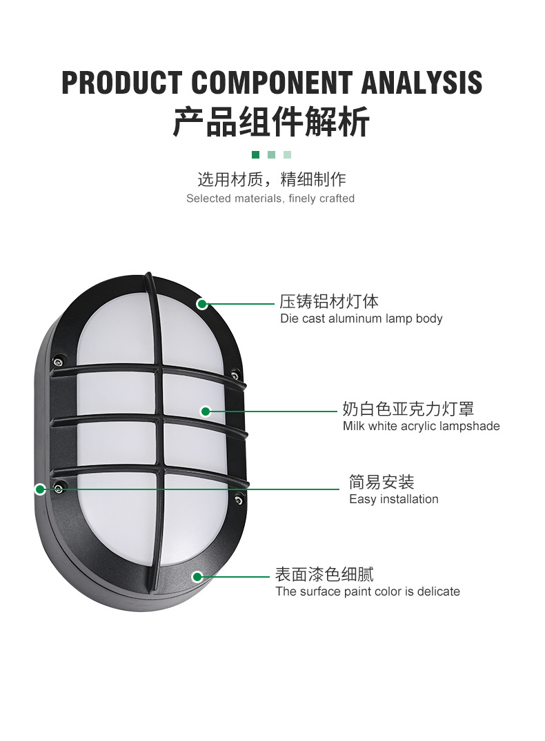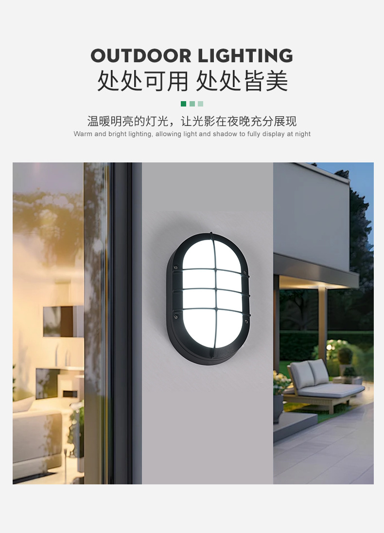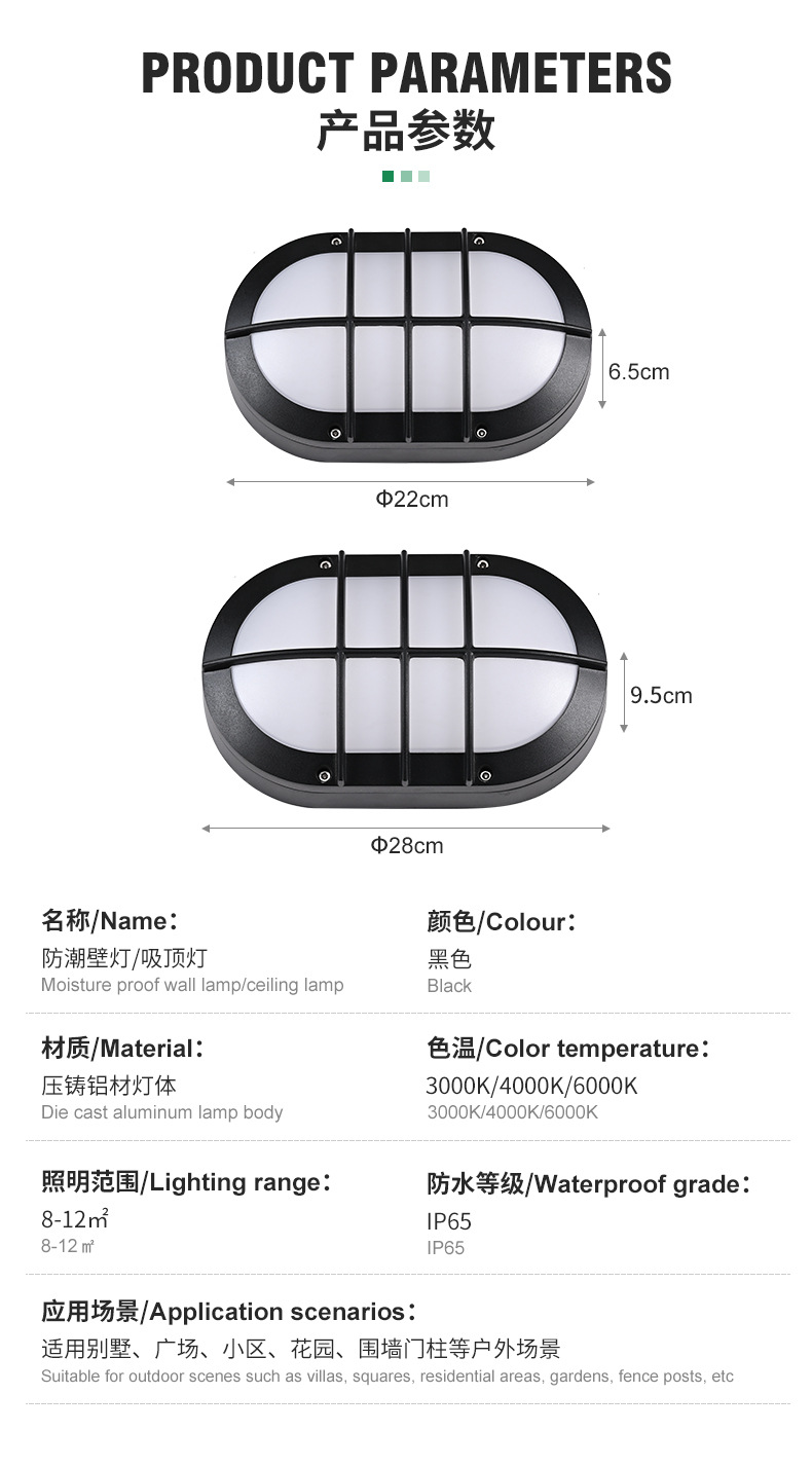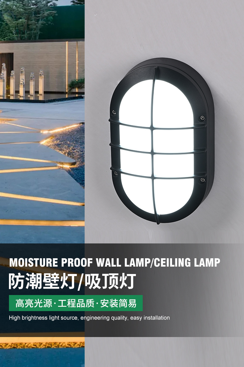 야외 타원형 LED 방습 벽 램프 발코니 조명 블랙 간단한 다이 캐스팅 알루미늄 호텔 간단한 정원 조명