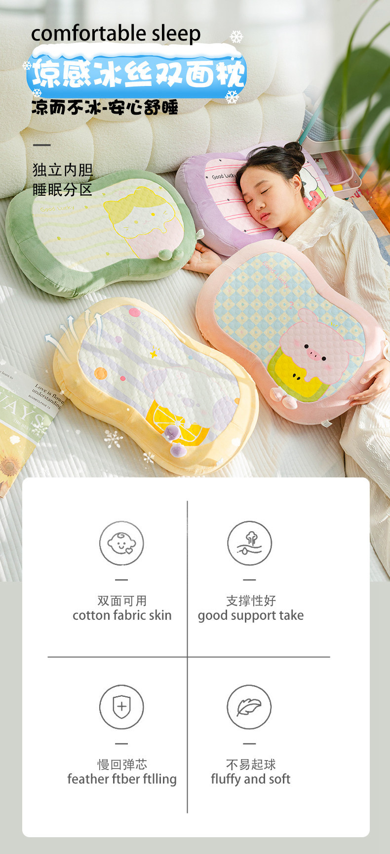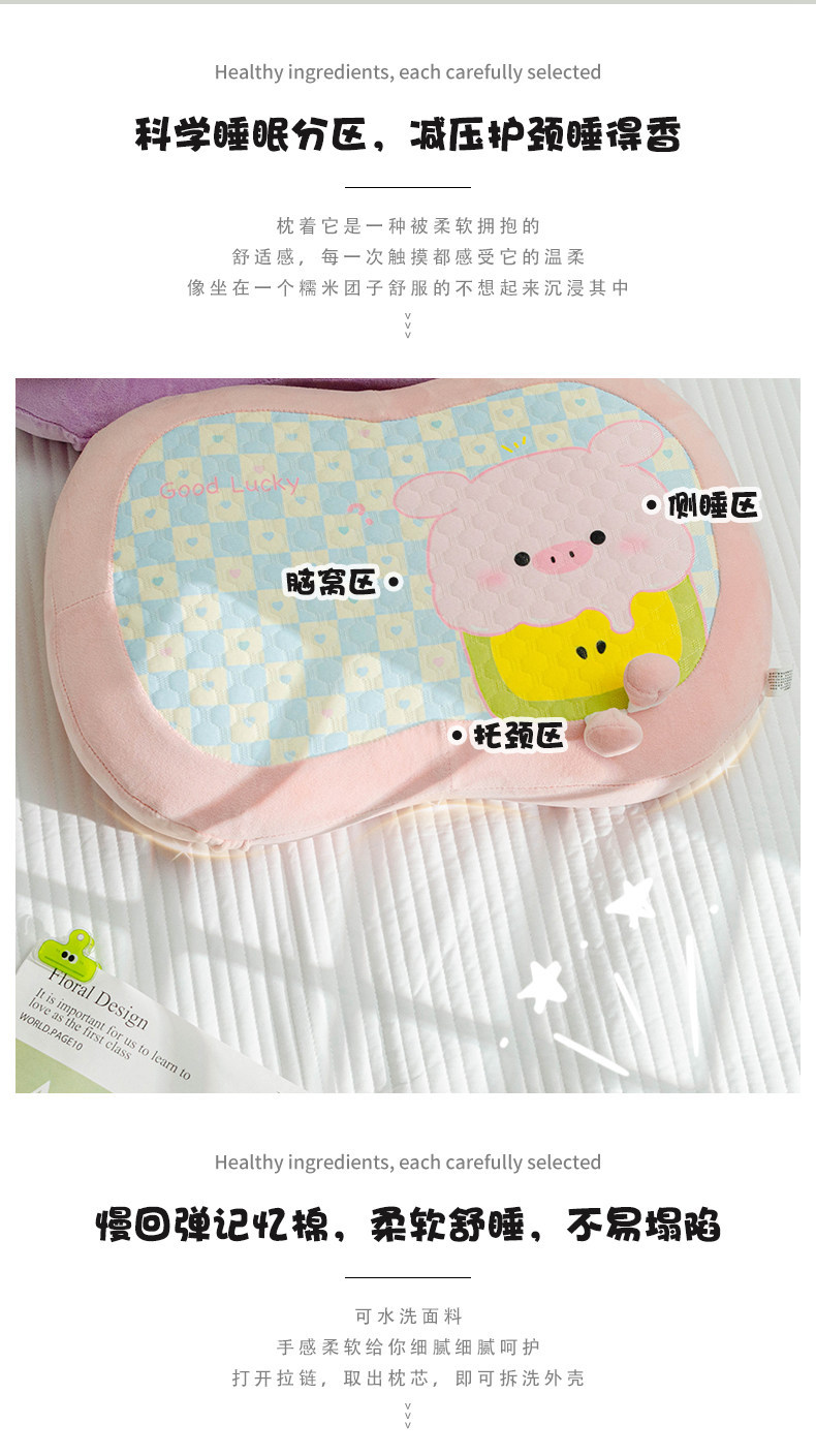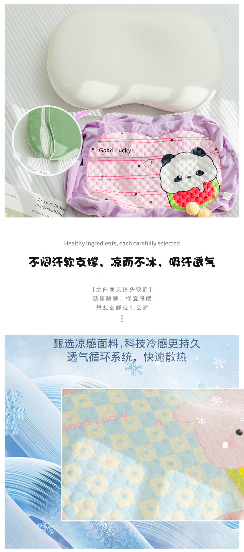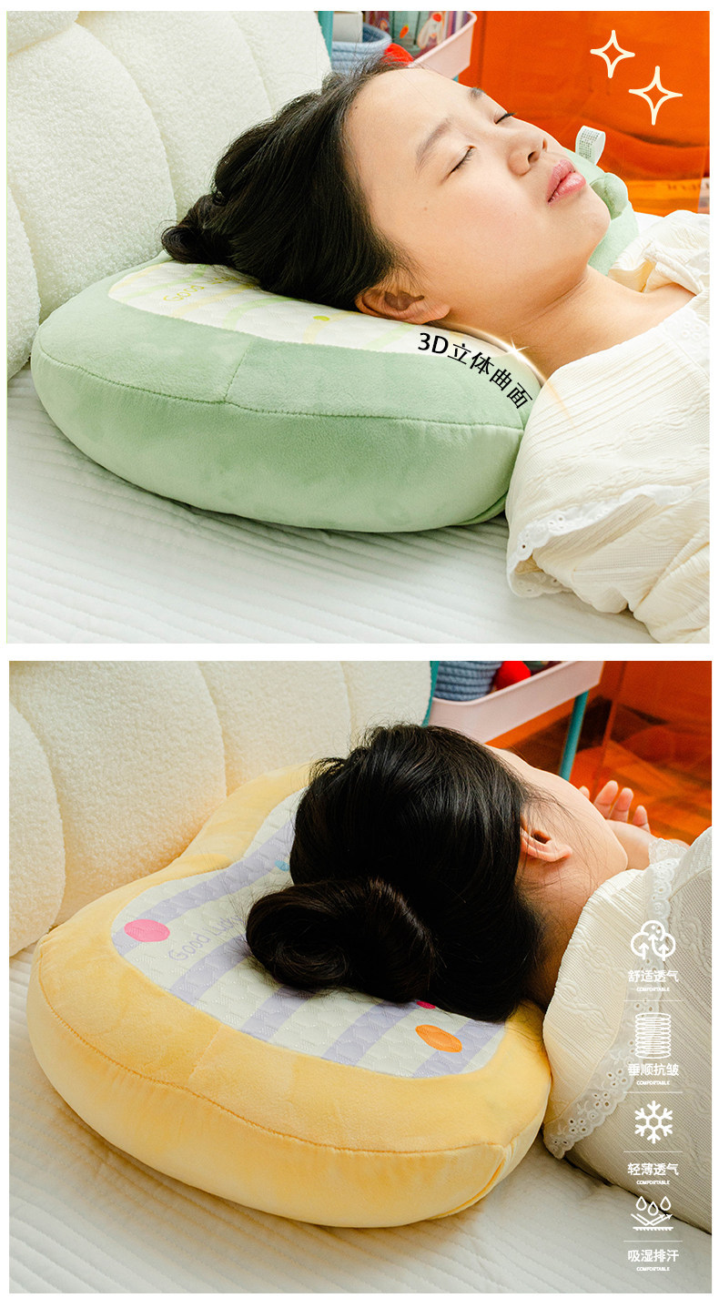 만화 쿨 아이스 콩 메모리 폼 베개 경추 보호 학생 기숙사 싱글 베개 낮잠 베개 어린이 잠자는 여름