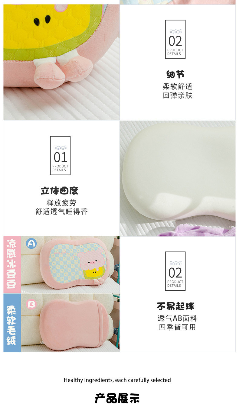 만화 쿨 아이스 콩 메모리 폼 베개 경추 보호 학생 기숙사 싱글 베개 낮잠 베개 어린이 잠자는 여름스토어 가기