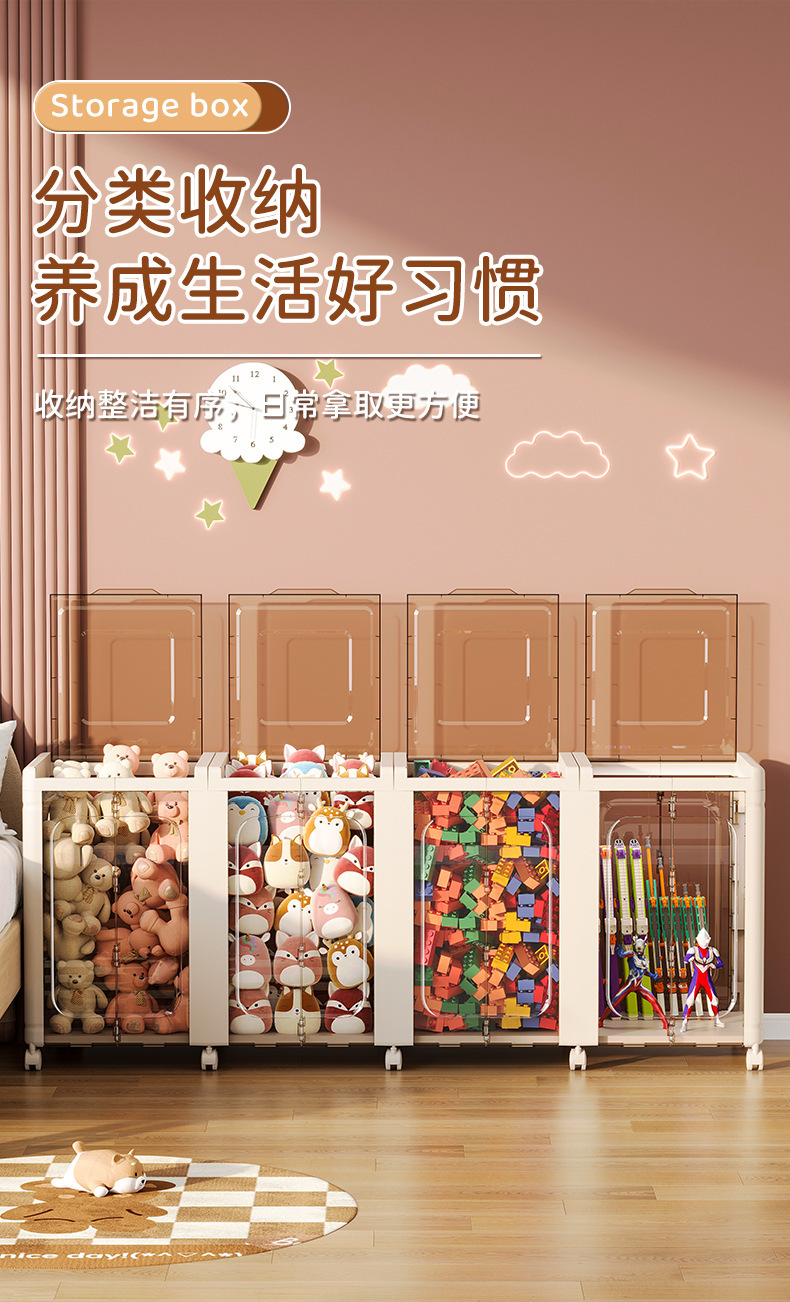 어린이 장난감 플립 수납 상자 데스크탑 잡화 수납 캐비닛 대용량 플라스틱 가정용 수납 바구니 수납 유물