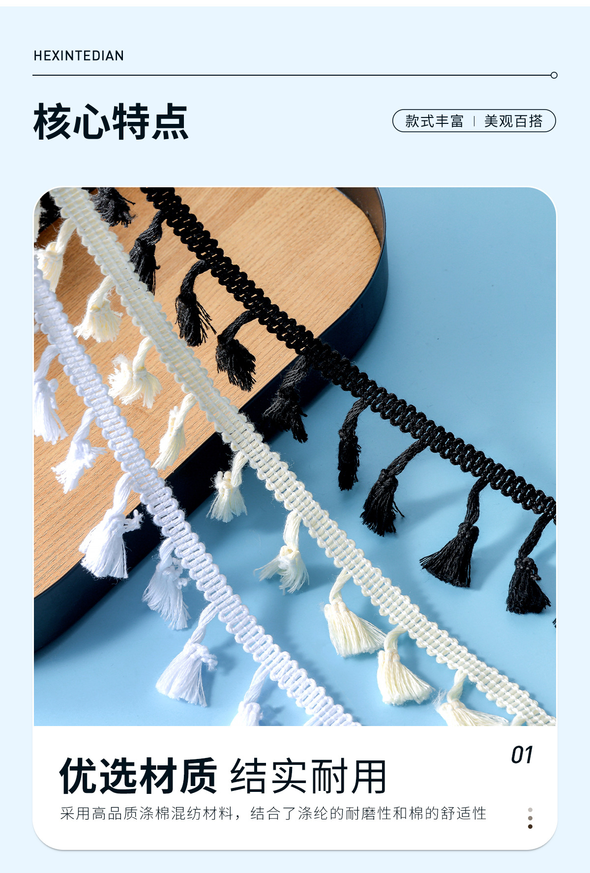 태슬 레이스 암호화된 작은 빗자루 수염 레이스 액세서리 흰색 면사 의류 커튼 식탁보 액세서리 레이스