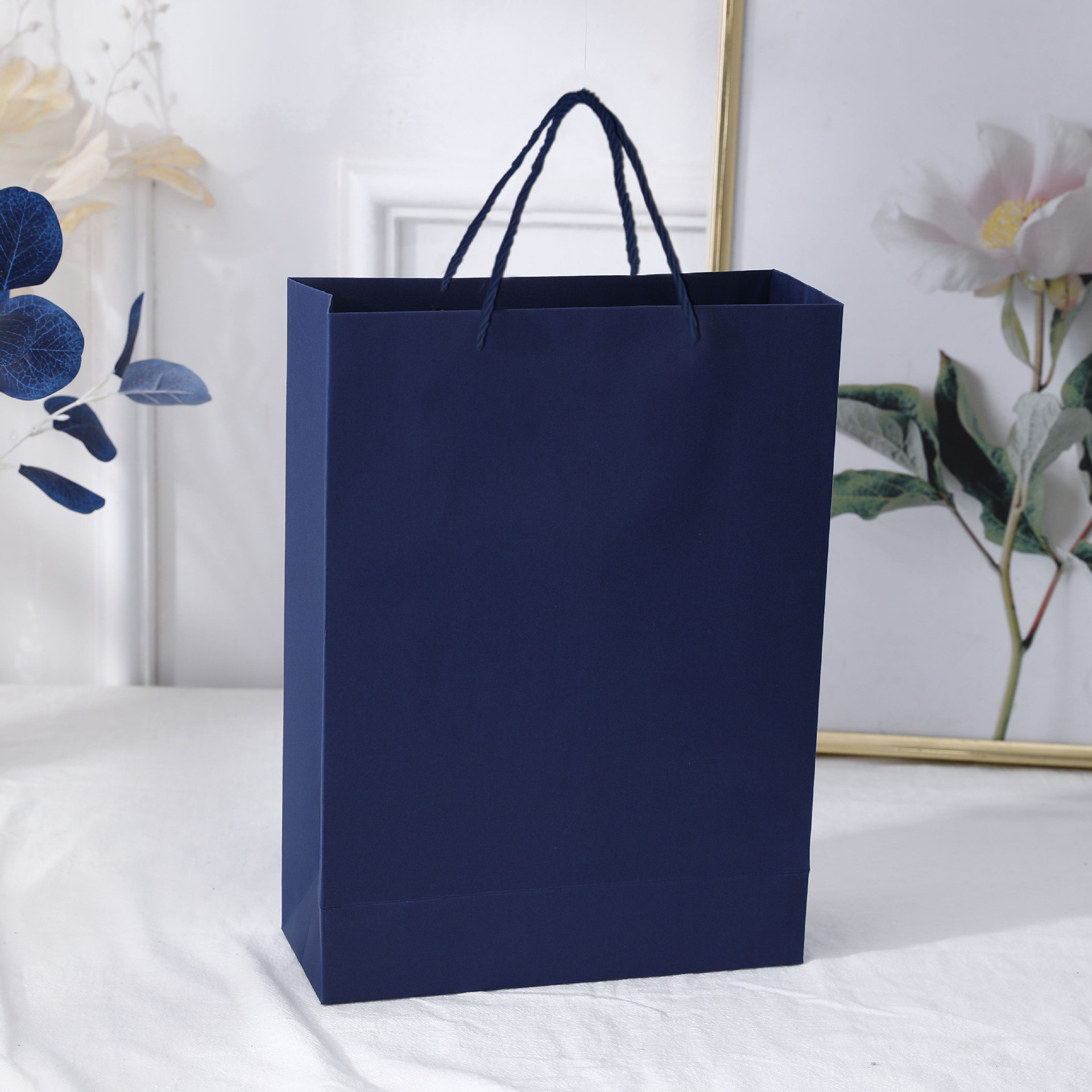 진한 파란색 핸드백 대형 네이비 블루 판지 가방 인쇄 크래프트 종이 핸드백 선물 가방 쇼핑백 재고 있음