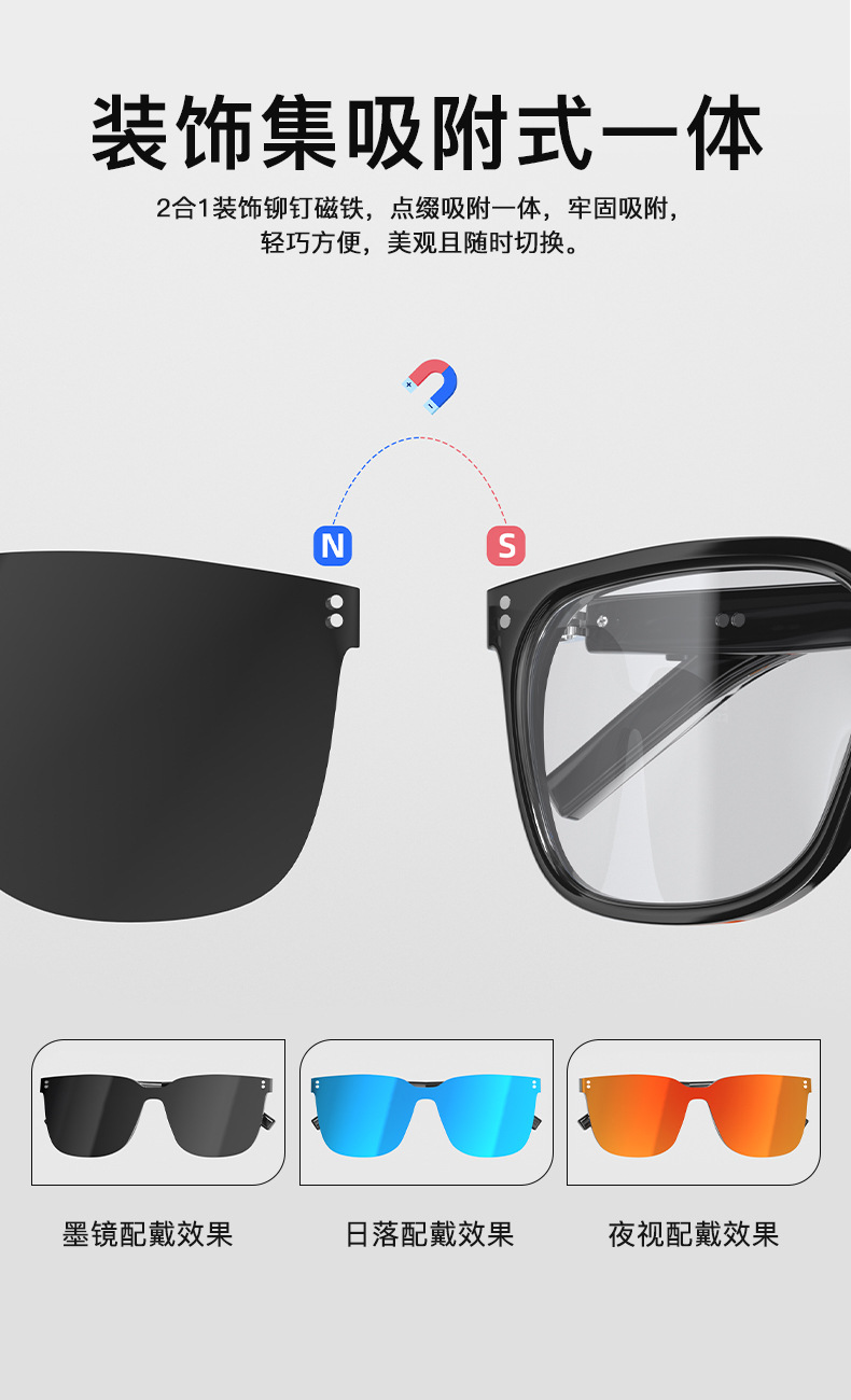 크로스보더 스마트 안경 M10 Pro A 블루투스 교체 가능 렌즈 자석식 선글라스 블루라이트 차단 자외선 차단 무선스토어 가기