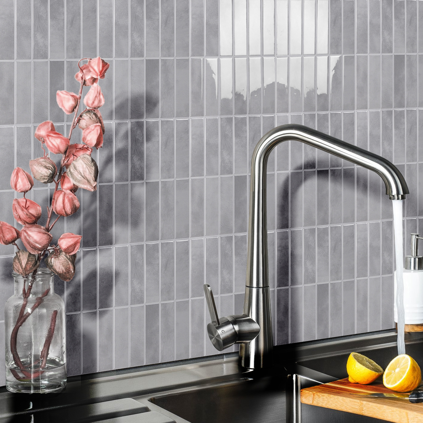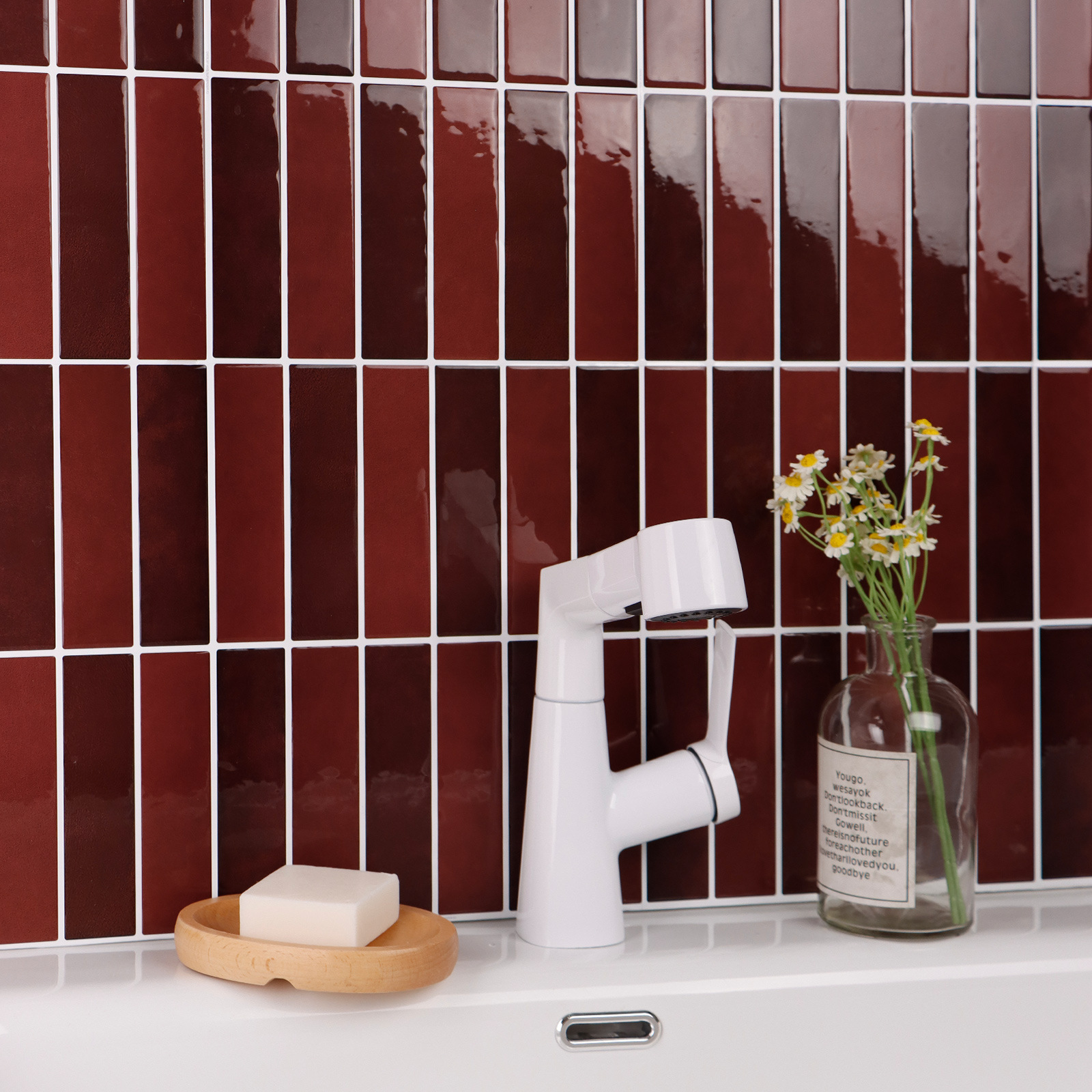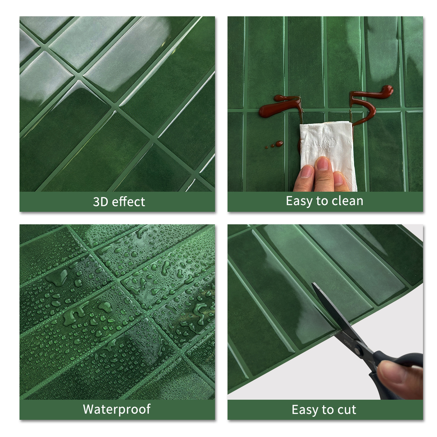 새로운 도착 모조 타일 3D 접착제 벽 스티커 간단한 스타일 장식 방수 및 내유성 혁신 주방 벽지 자체 접착