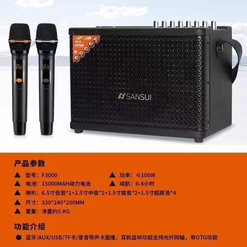 F3000 블루투스 스피커, 고출력, 라이브 방송, 스퀘어 댄스, 모바일 홈 KTV, 노래방 스피커 세트, 야외용, 휴대용