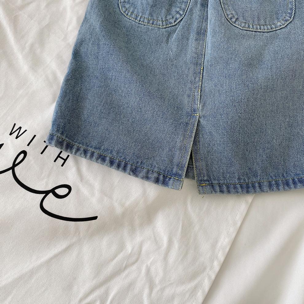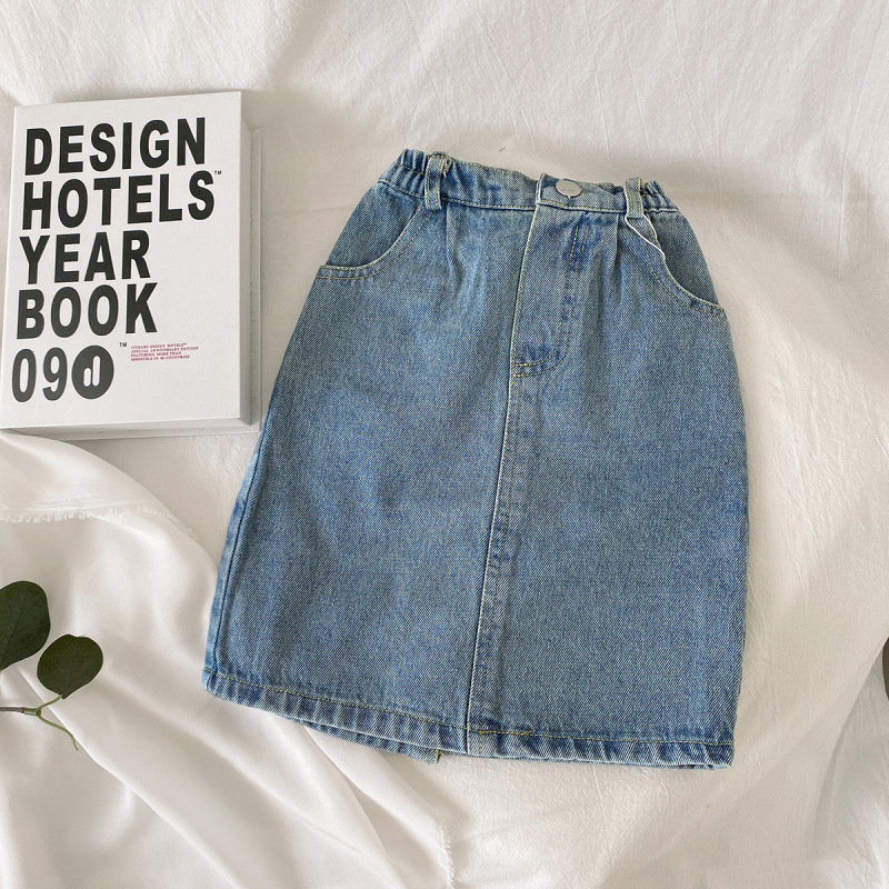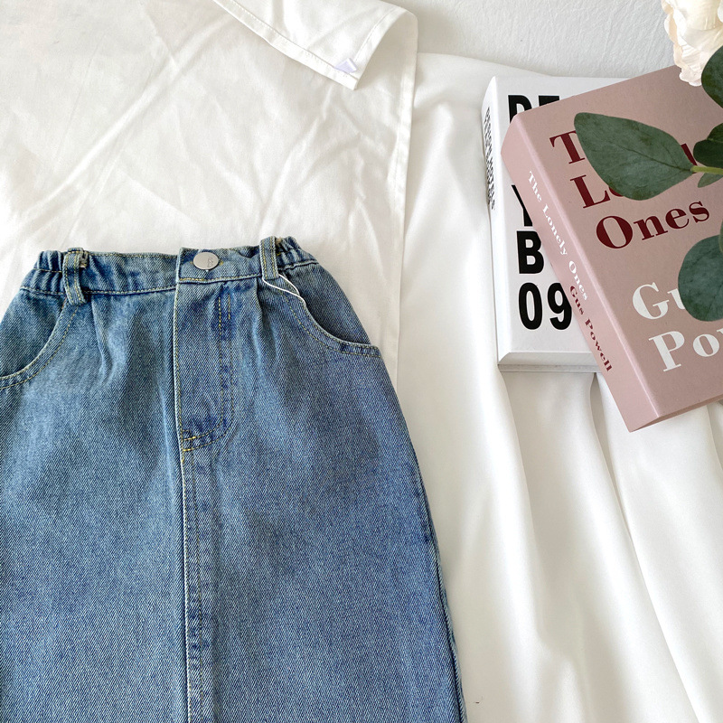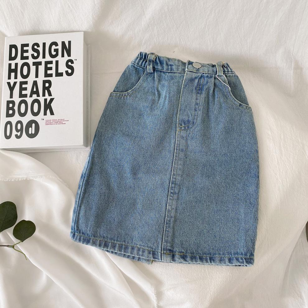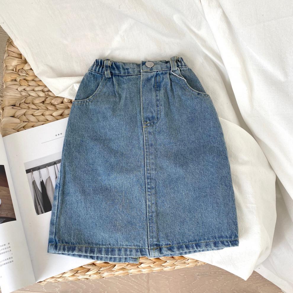 한국 어린이 복고풍 슬릿 데님 스커트 2025 봄, 가을 새로운 스타일 소녀의 느슨한 데님 원스텝 스커트 스커트스토어 가기