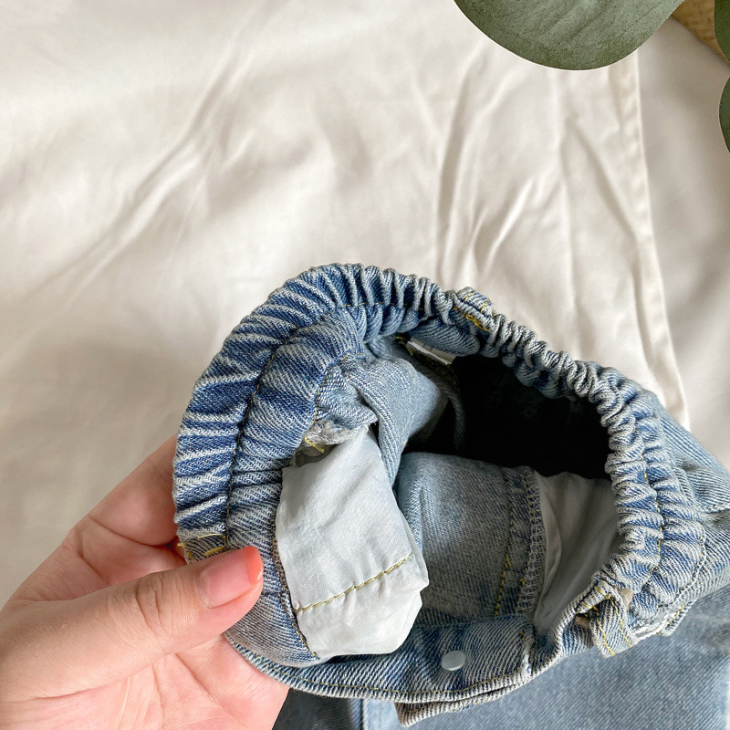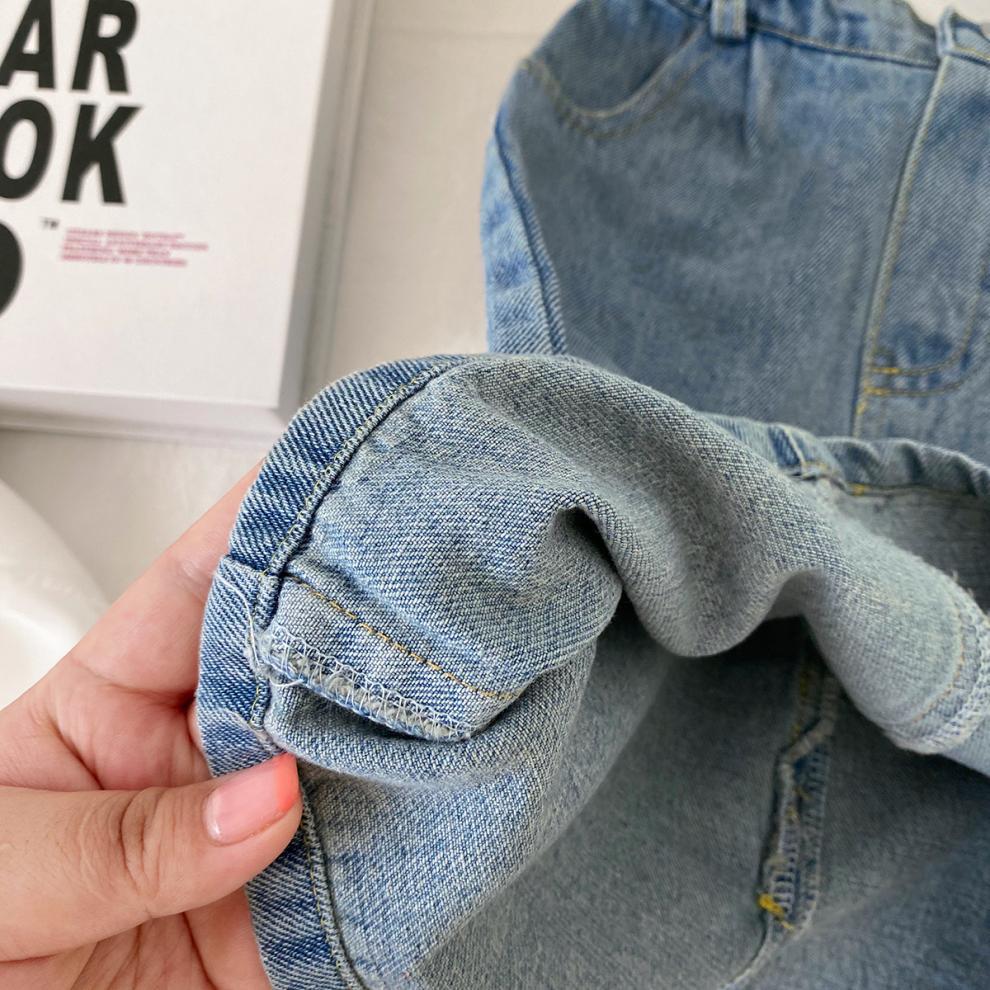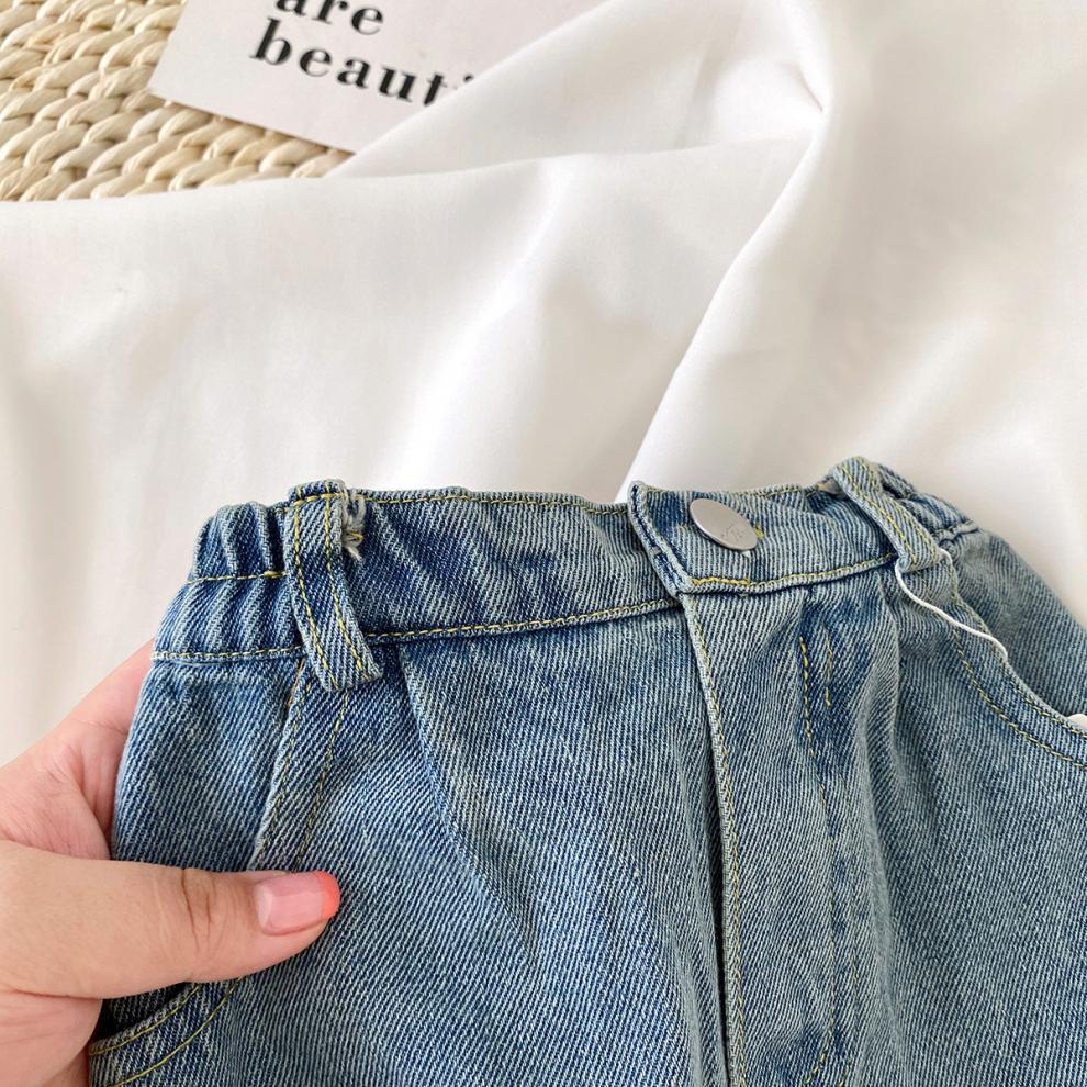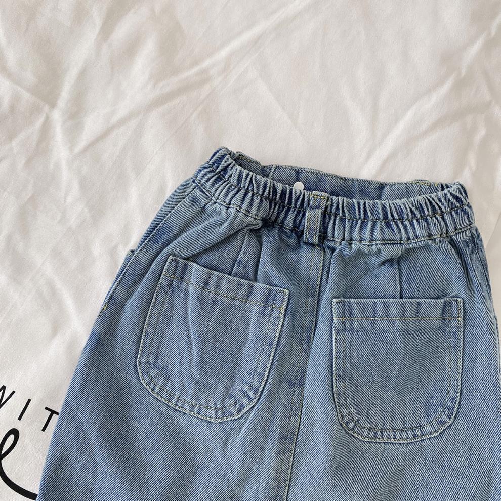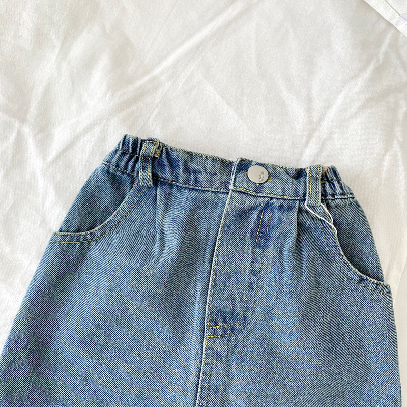 한국 어린이 복고풍 슬릿 데님 스커트 2025 봄, 가을 새로운 스타일 소녀의 느슨한 데님 원스텝 스커트 스커트