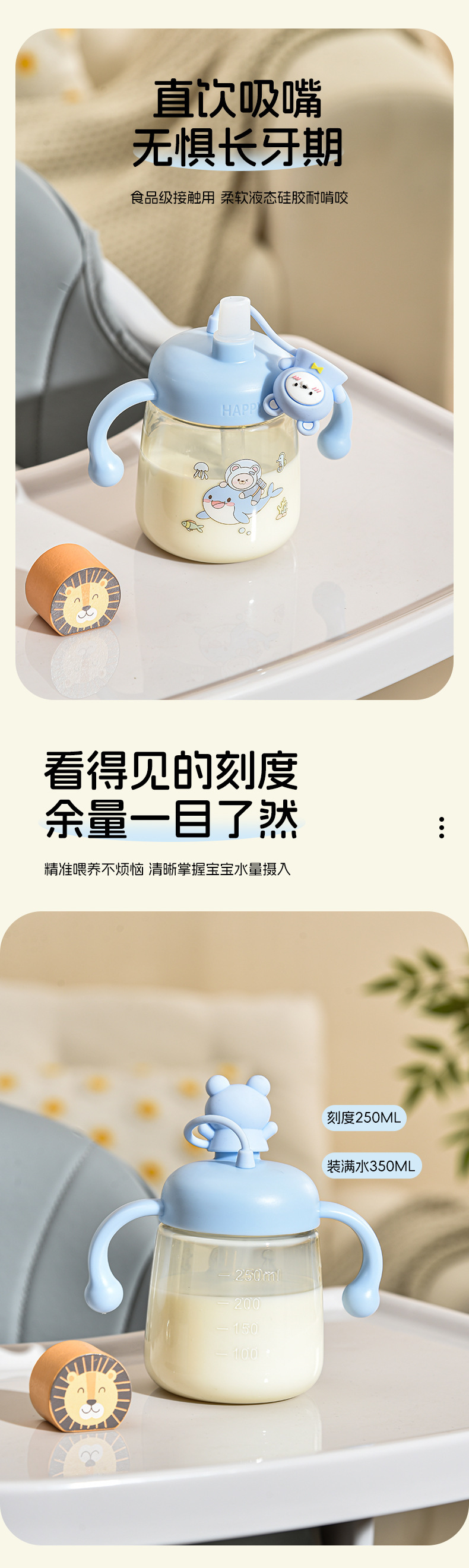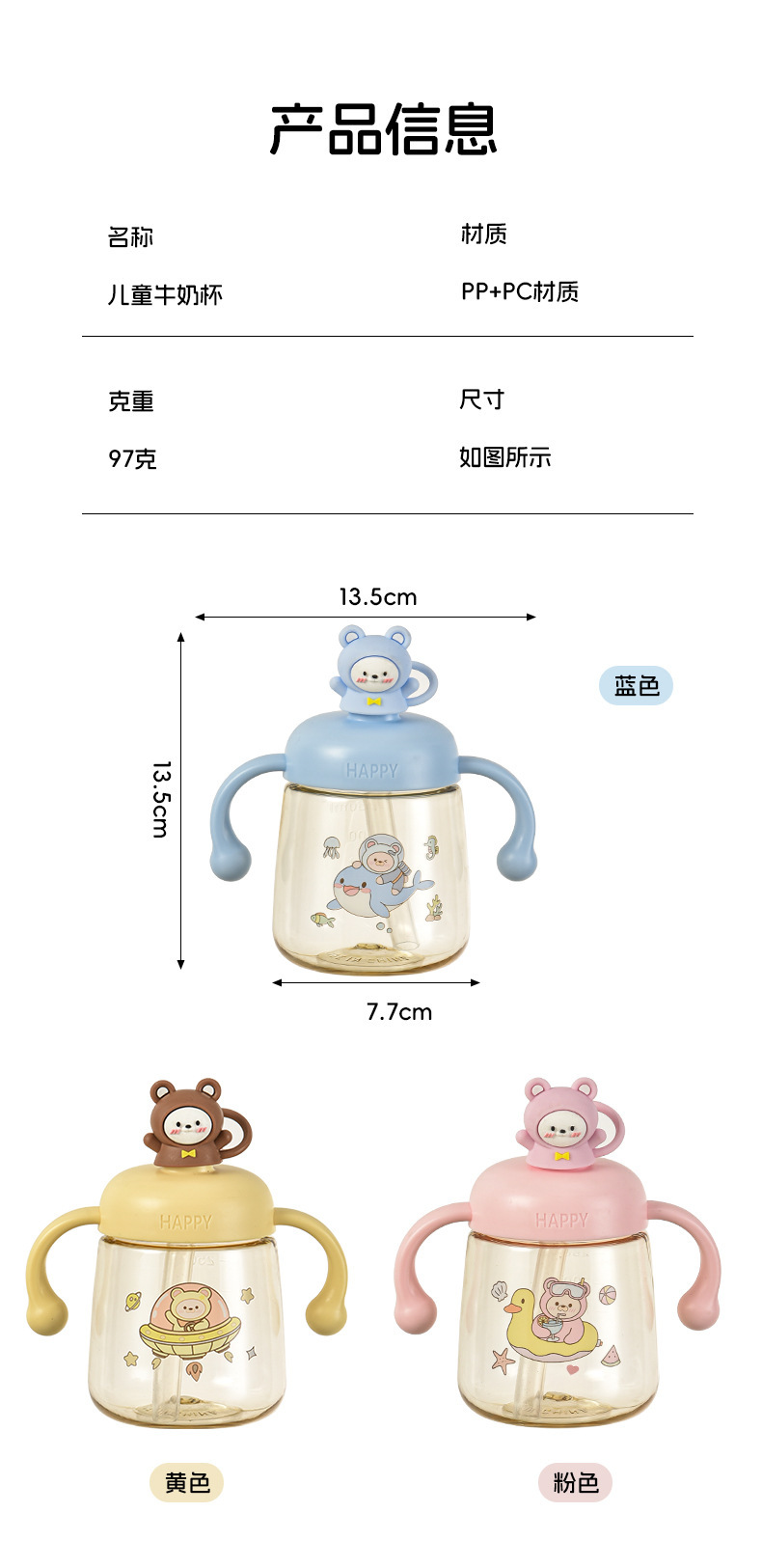 25년 새로운 어린이 우유 컵, 스케일이 있는 우유병, 직접 마시는 빨대 컵, 아기 낙하 방지, 고가치 만화스토어 가기