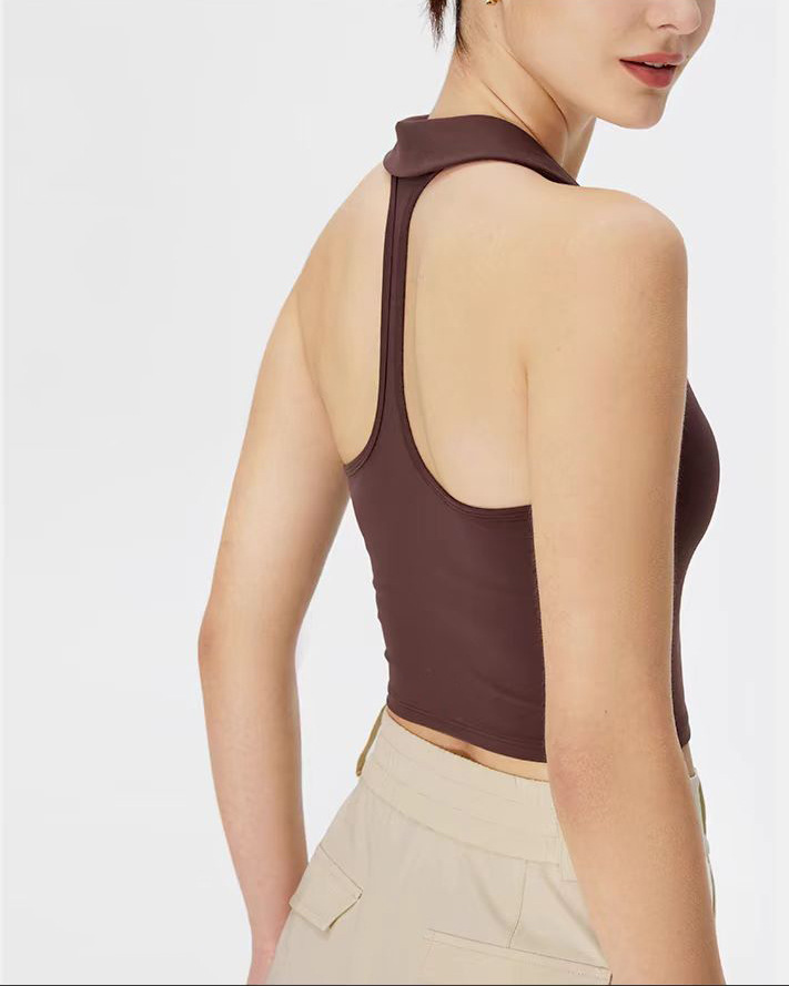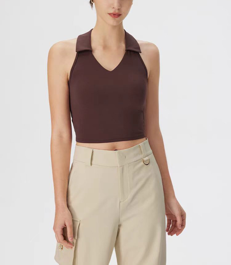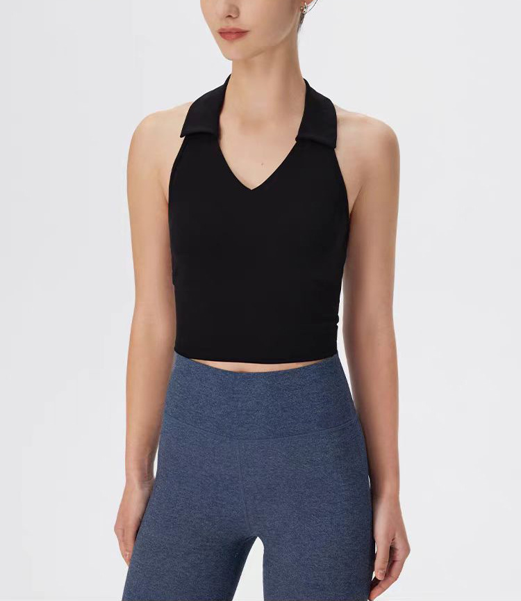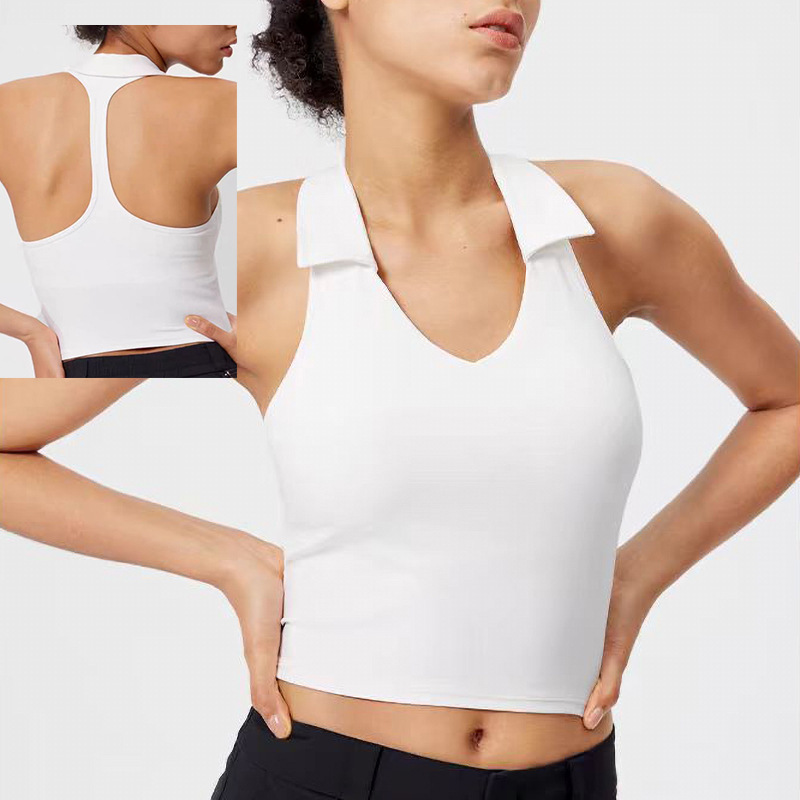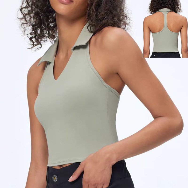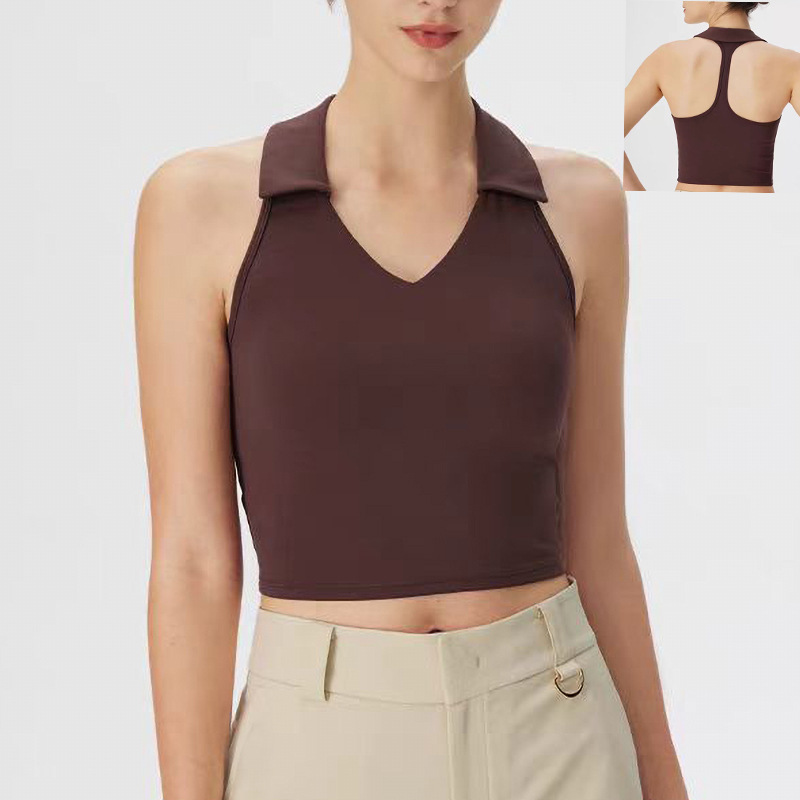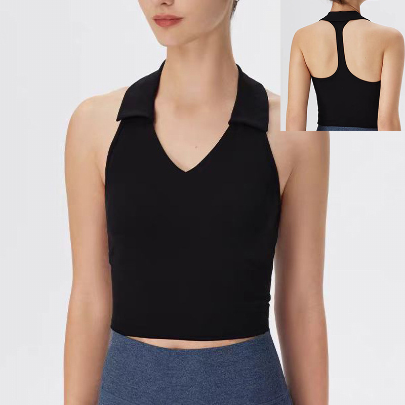 여성을위한 새로운 요가 조끼 POLO 딥 V 라펠 누드 푸시 업 가슴 패드 러닝 피트니스웨어 스포츠 속옷 여성용스토어 가기