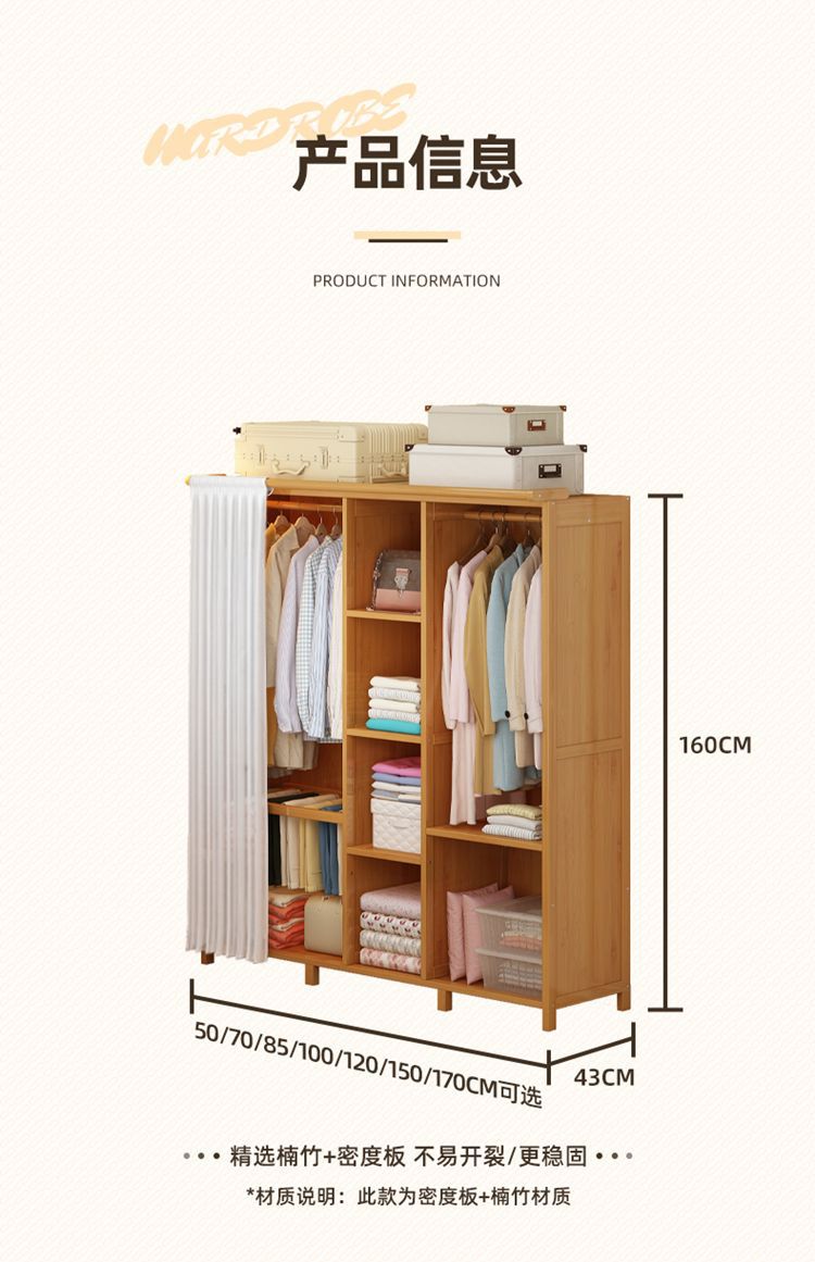 특별 정리 오픈형 경제적인 원목 옷장 간단하고 저렴하며 튼튼하고 내구성이 뛰어나며 대용량 임대용