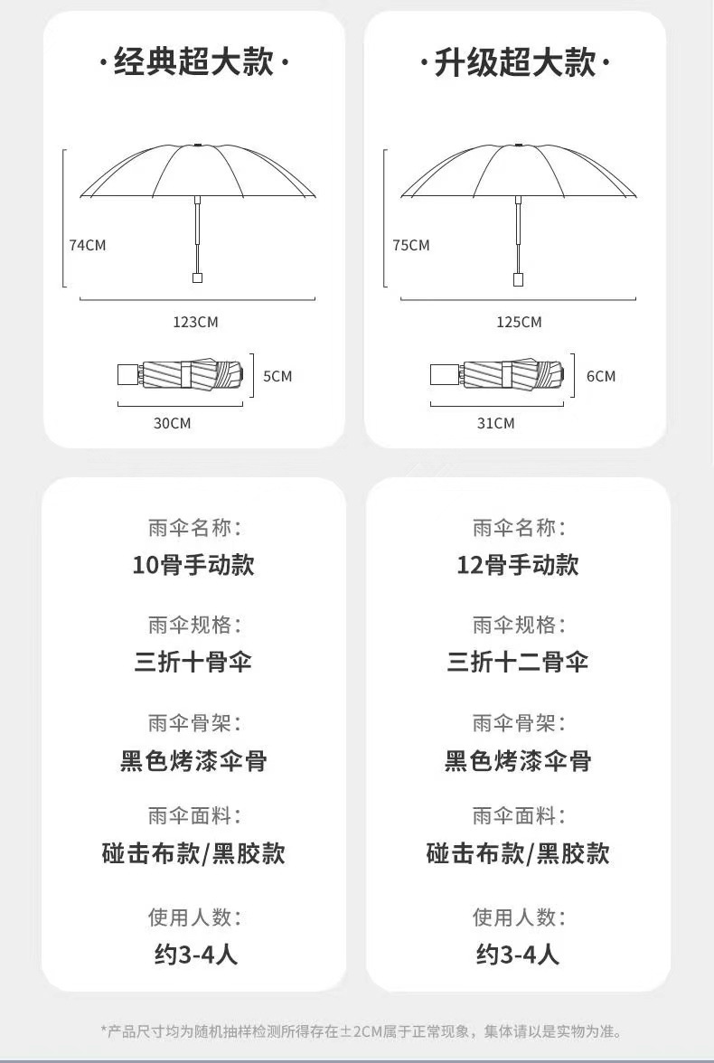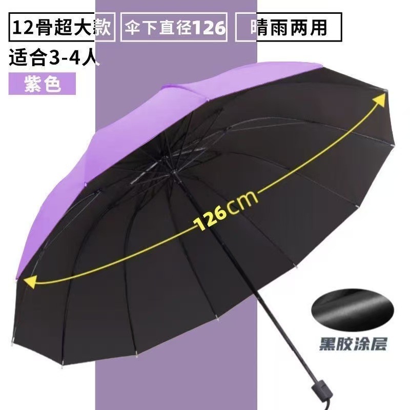수동 초대형 12본 우산, 비 또는 빛 우산, 이중 접이식 우산, 태양 우산, 태양 보호 우산, 광고 우산 도매