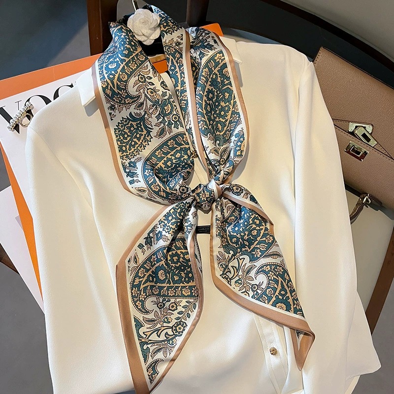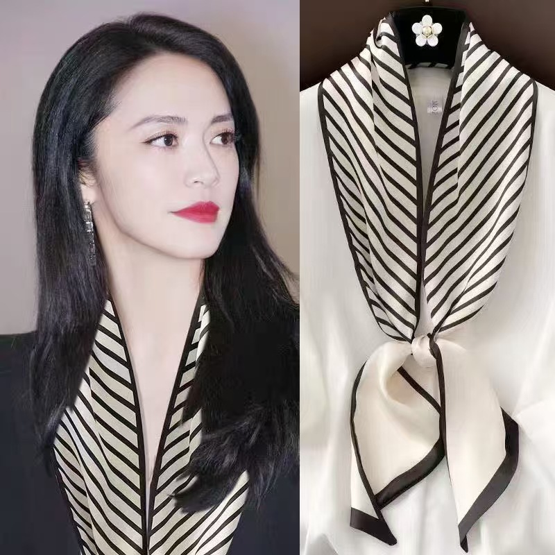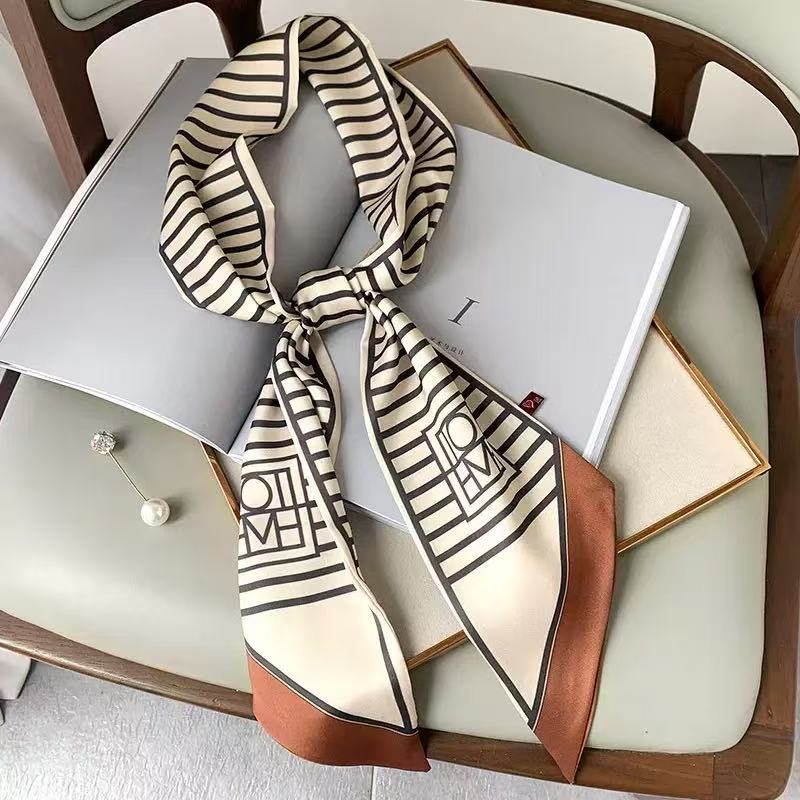 2025 새로운 긴 실크 스카프 한국어 버전 인쇄 기질 스카프 여름 패션 장식 대각선 스카프 공장 도매스토어 가기