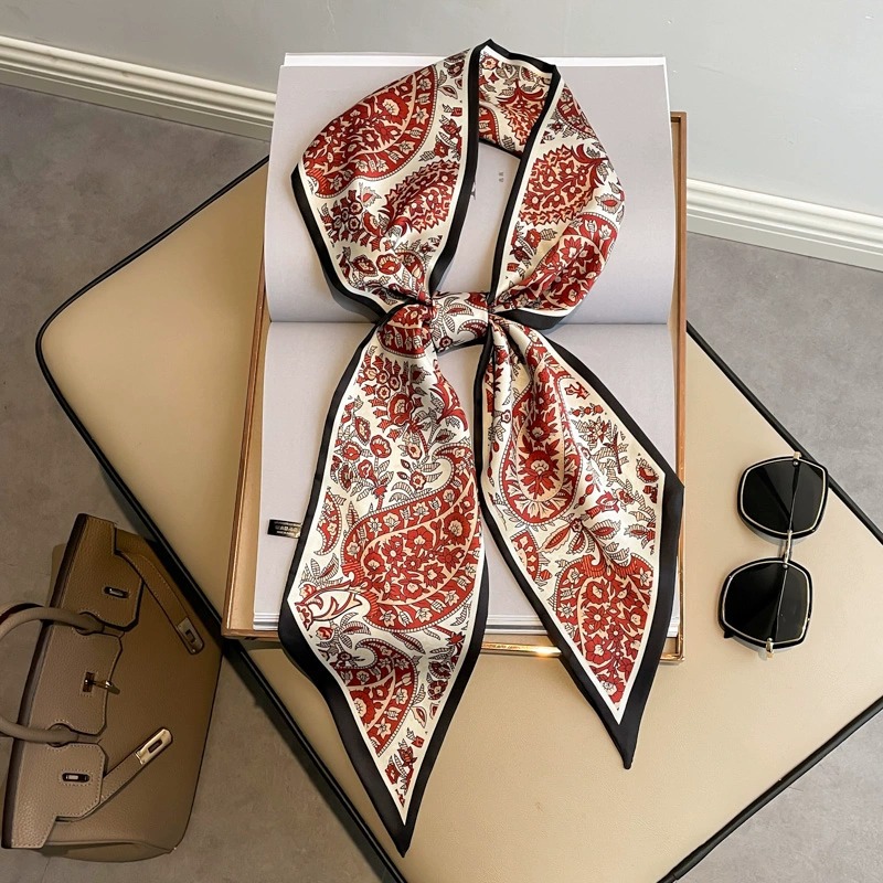2025 새로운 긴 실크 스카프 한국어 버전 인쇄 기질 스카프 여름 패션 장식 대각선 스카프 공장 도매
