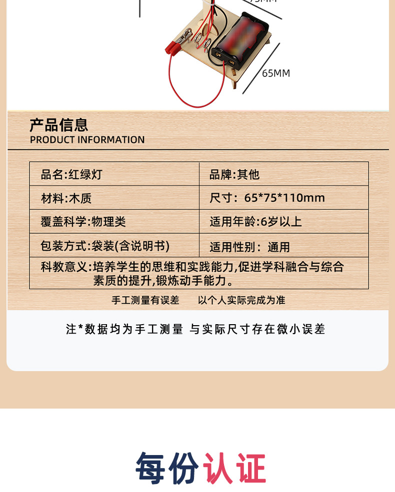 신호등 기술 소규모 생산 어린이 과학 실험 교육 보조 모델 초등학생 수제 DIY 재료 패키지스토어 가기