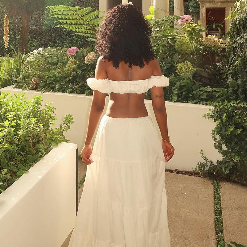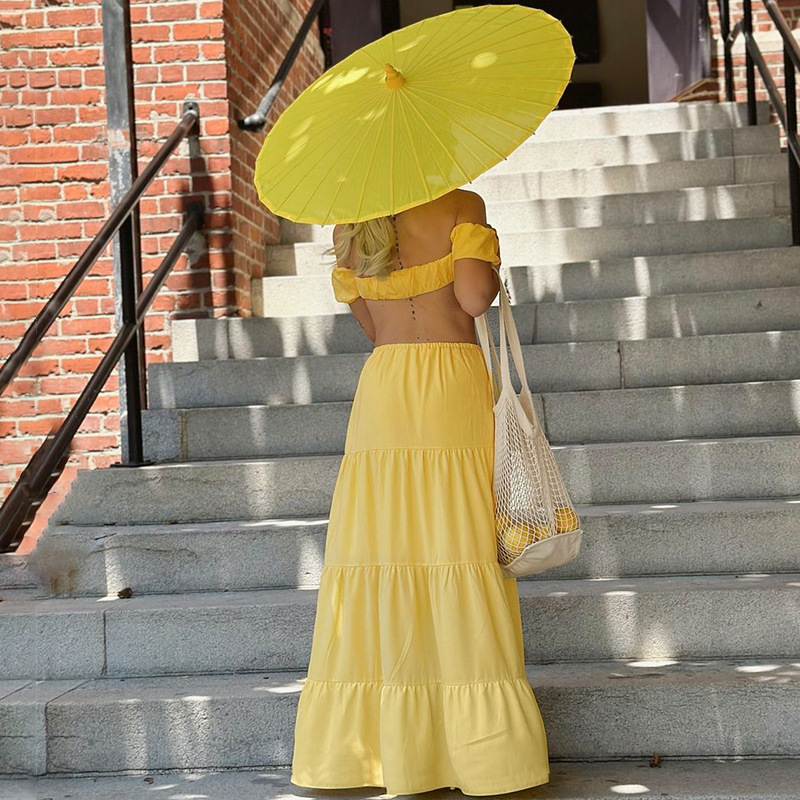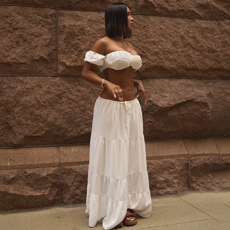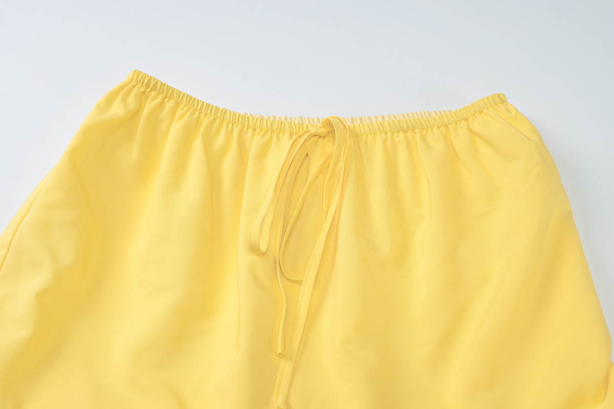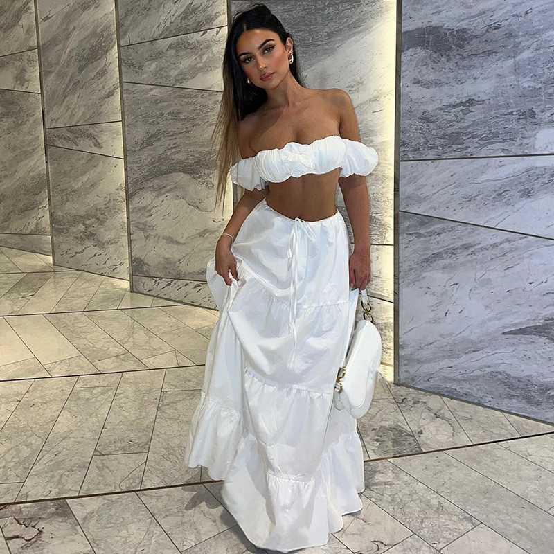 유럽과 미국 스타일의 국경 여성 의류 2025 여름 새로운 단색 섹시한 짧은 소매 랩 가슴 레이스 업 주름 케이크 스커트 세트스토어 가기