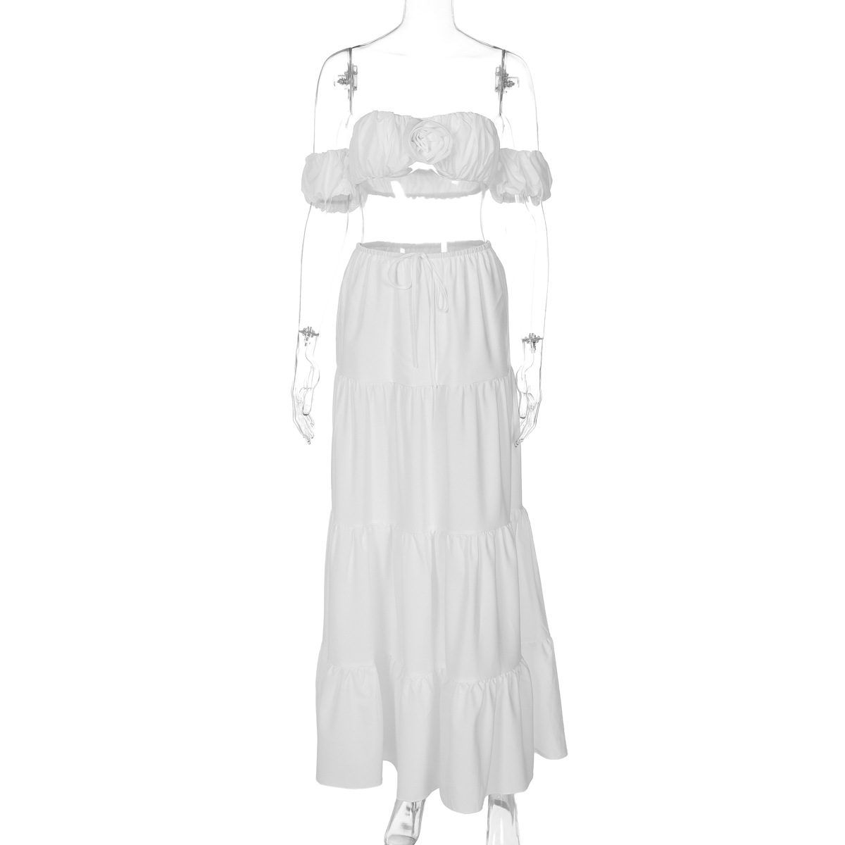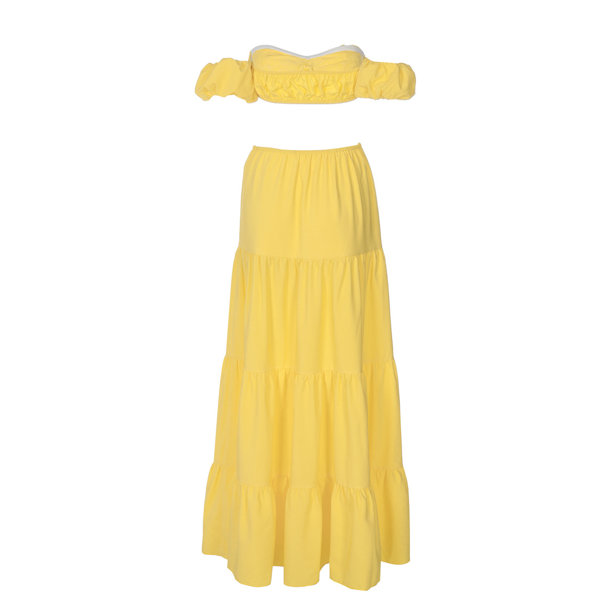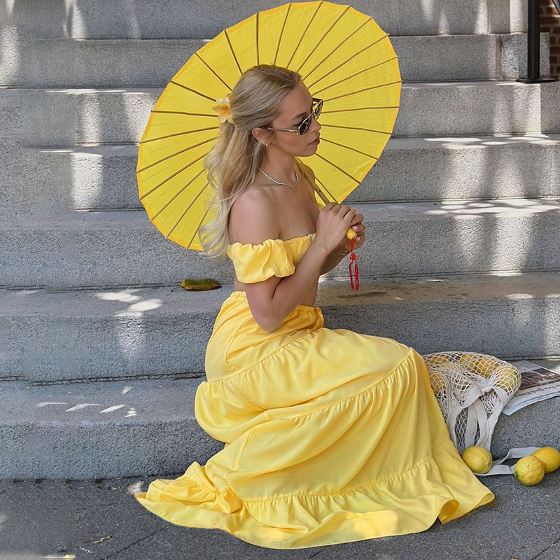 유럽과 미국 스타일의 국경 여성 의류 2025 여름 새로운 단색 섹시한 짧은 소매 랩 가슴 레이스 업 주름 케이크 스커트 세트스토어 가기