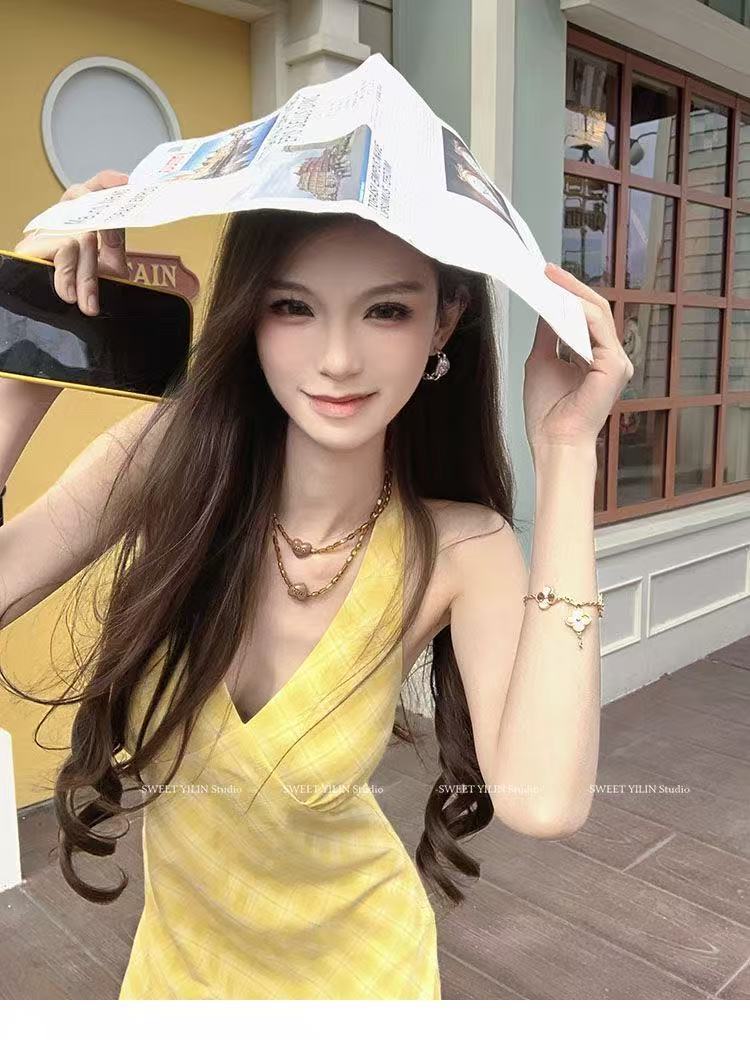 로맨틱 프랑스 스타일 V 넥 원피스 여성 2025 여름 새로운 디자인 틈새 부드러운 휴일 스타일 긴 원피스