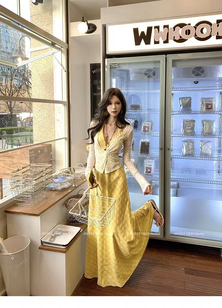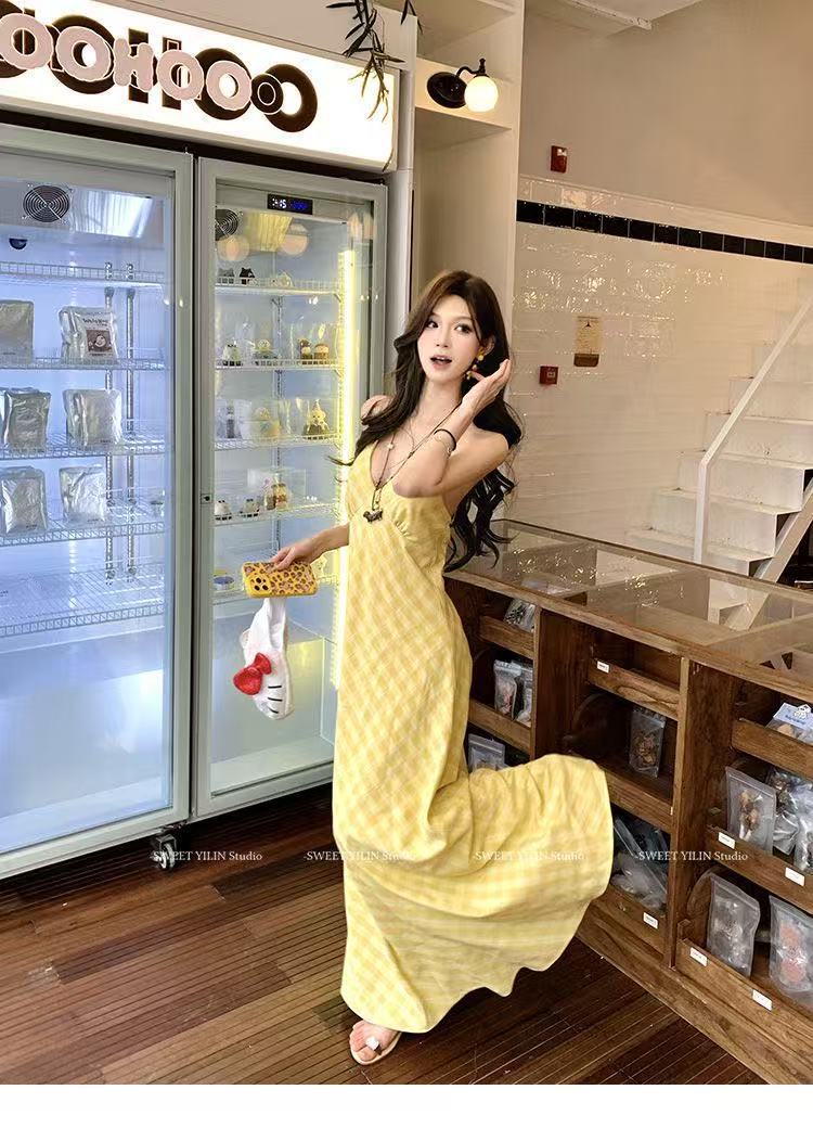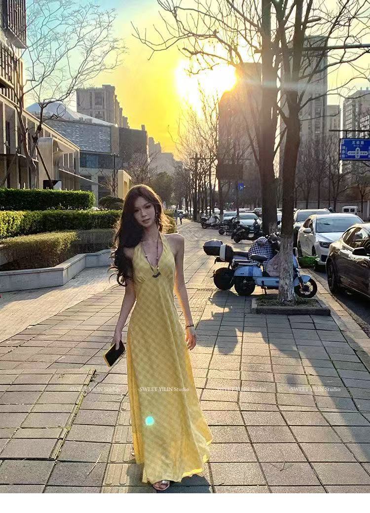 로맨틱 프랑스 스타일 V 넥 원피스 여성 2025 여름 새로운 디자인 틈새 부드러운 휴일 스타일 긴 원피스스토어 가기