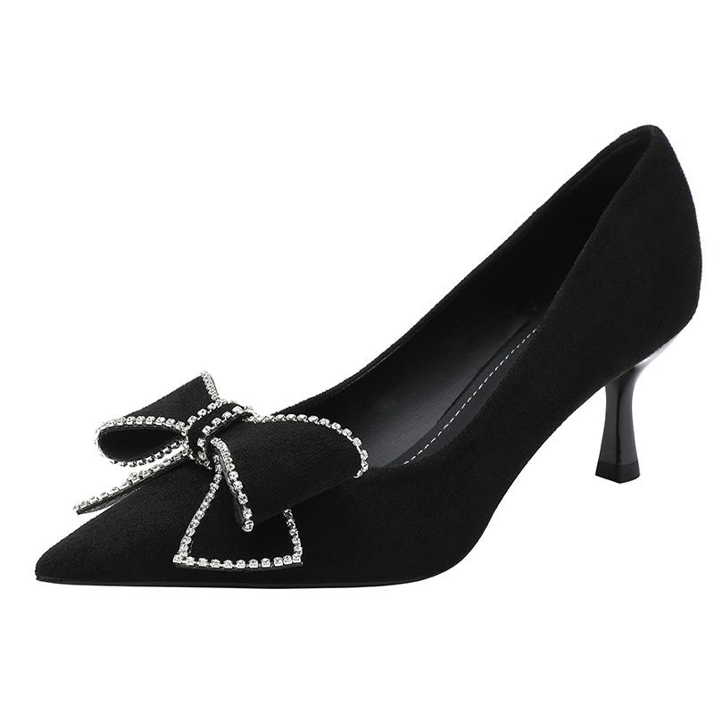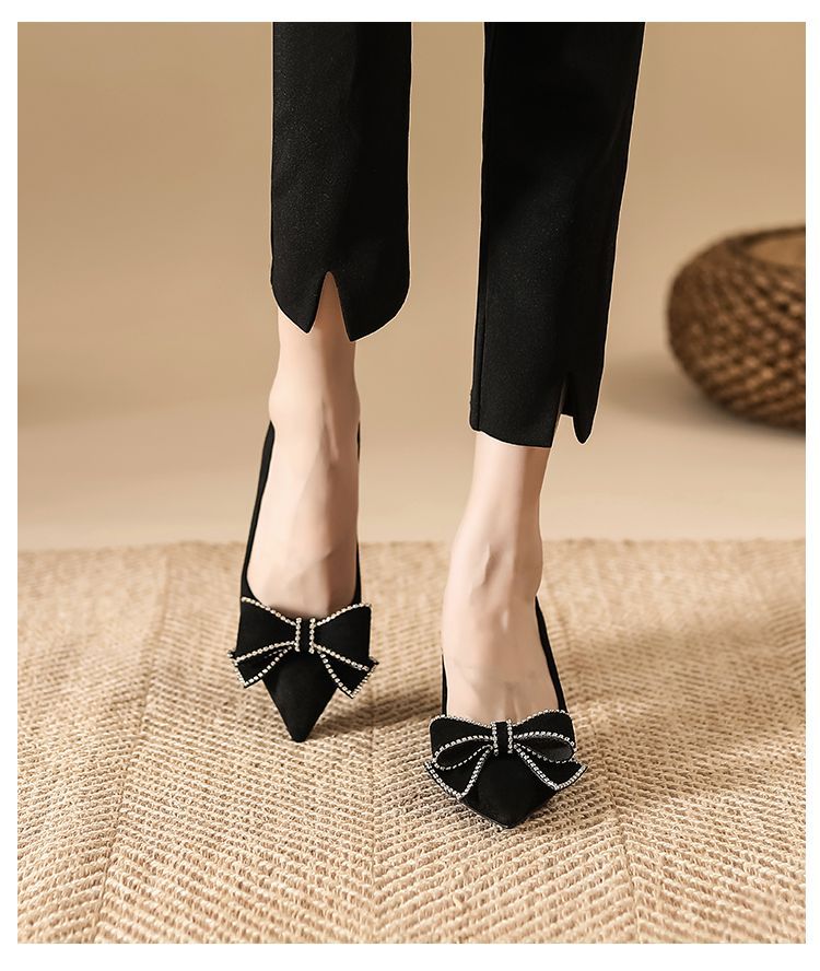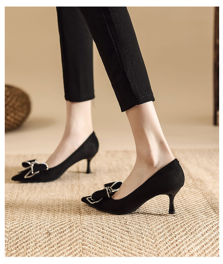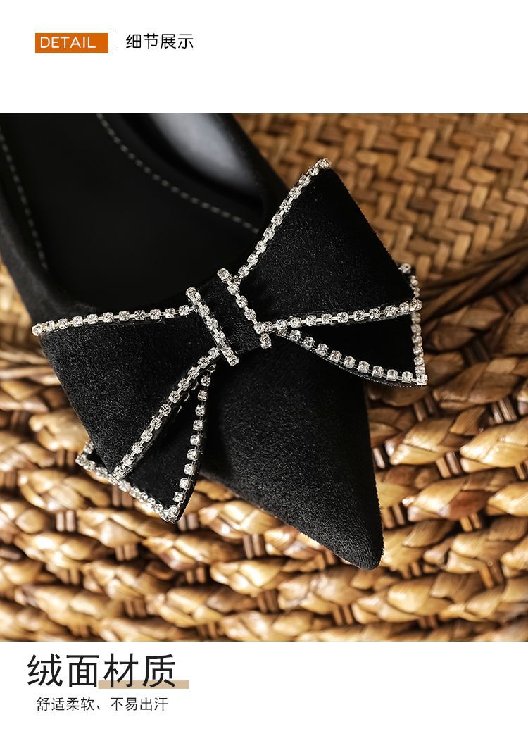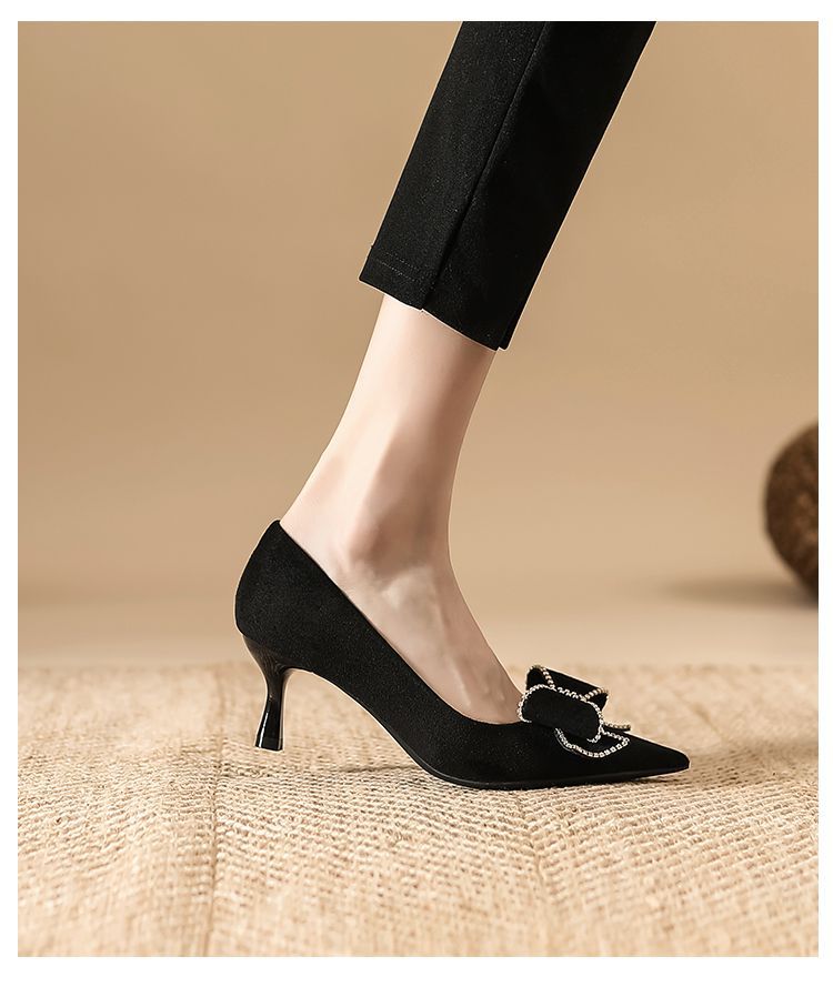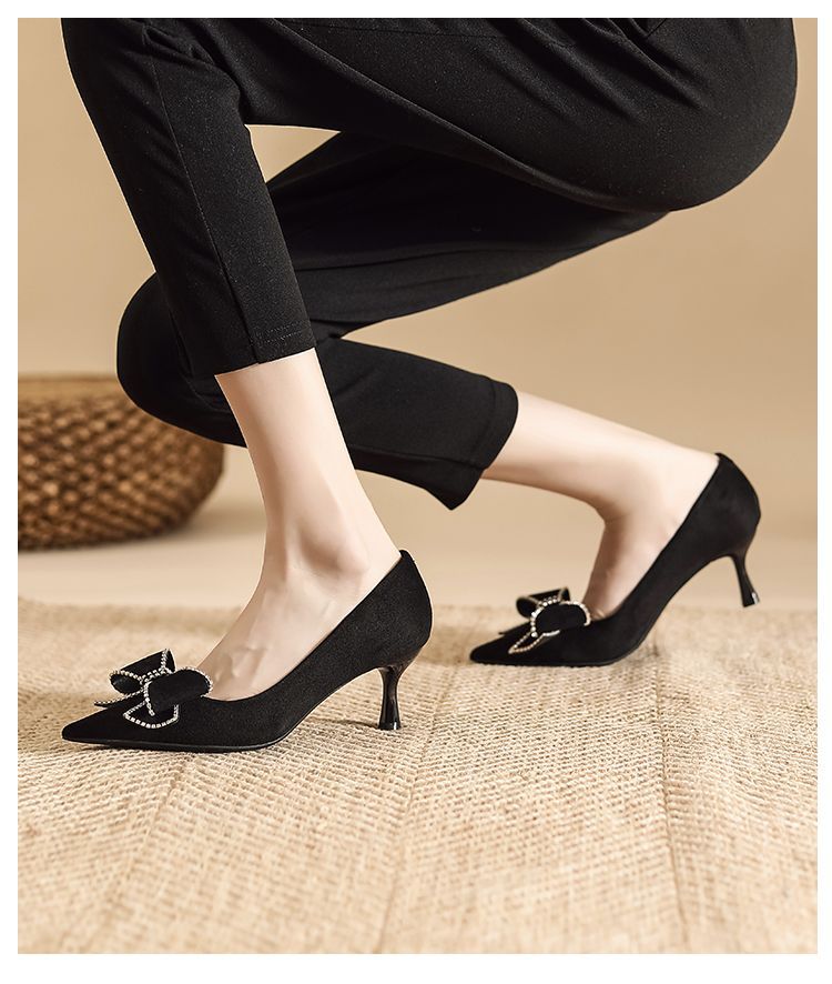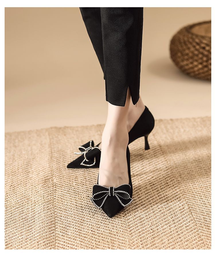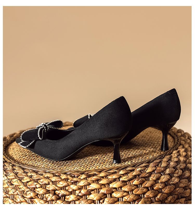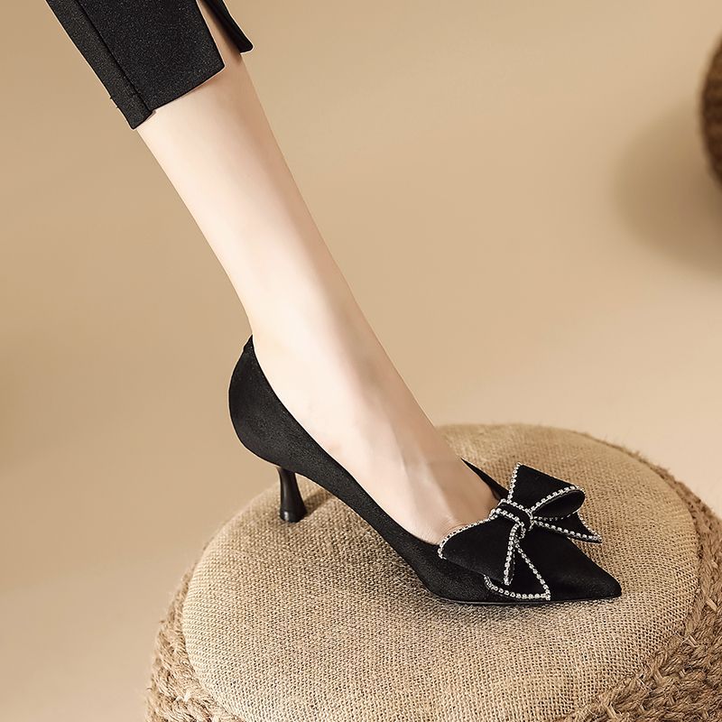 리본 블랙 하이힐 여성용 얇은 굽 2026 봄 가을 신상 우아한 뾰족코 섹시한 얕은 굽 드레스 슈즈 여성용스토어 가기